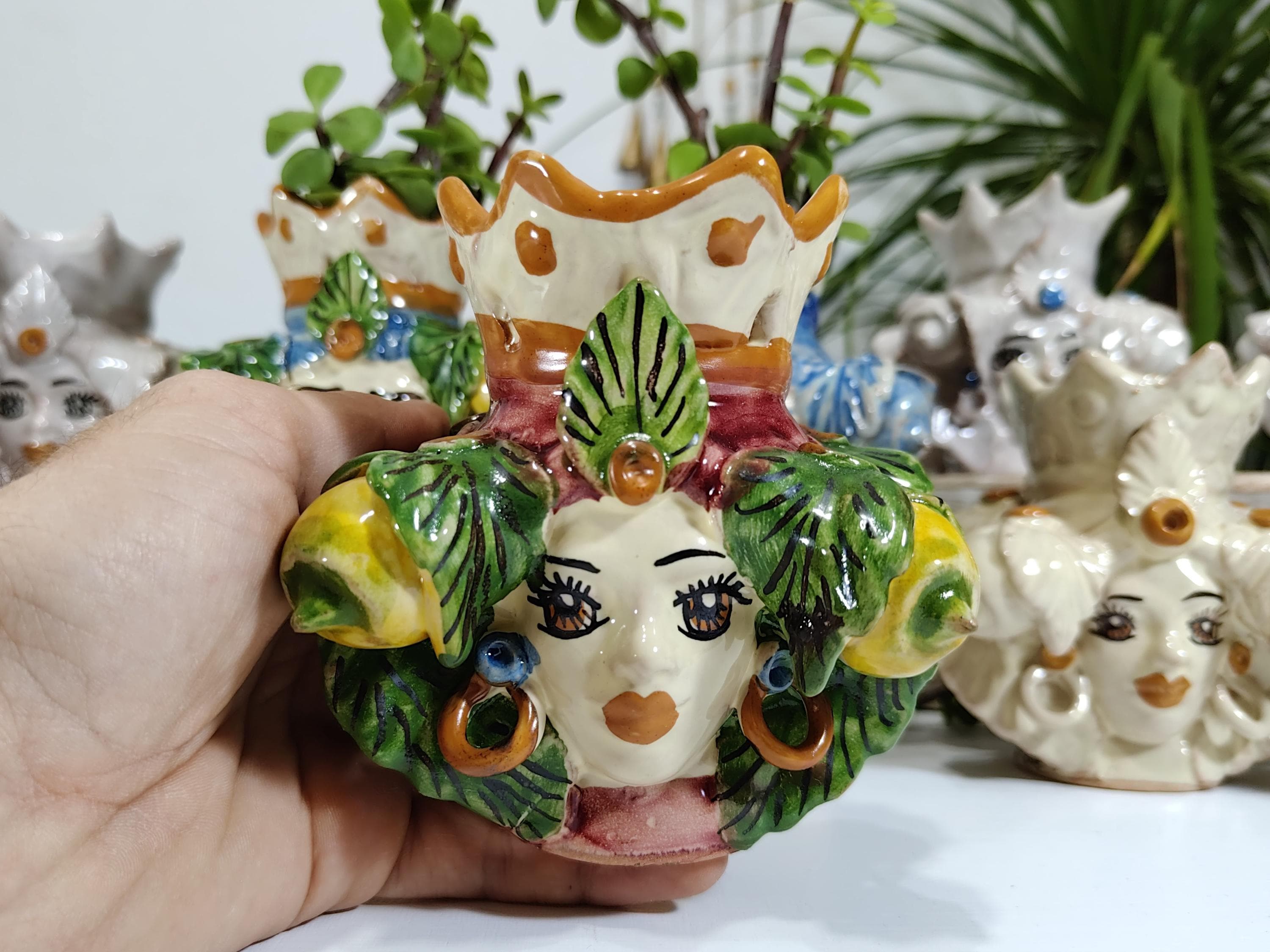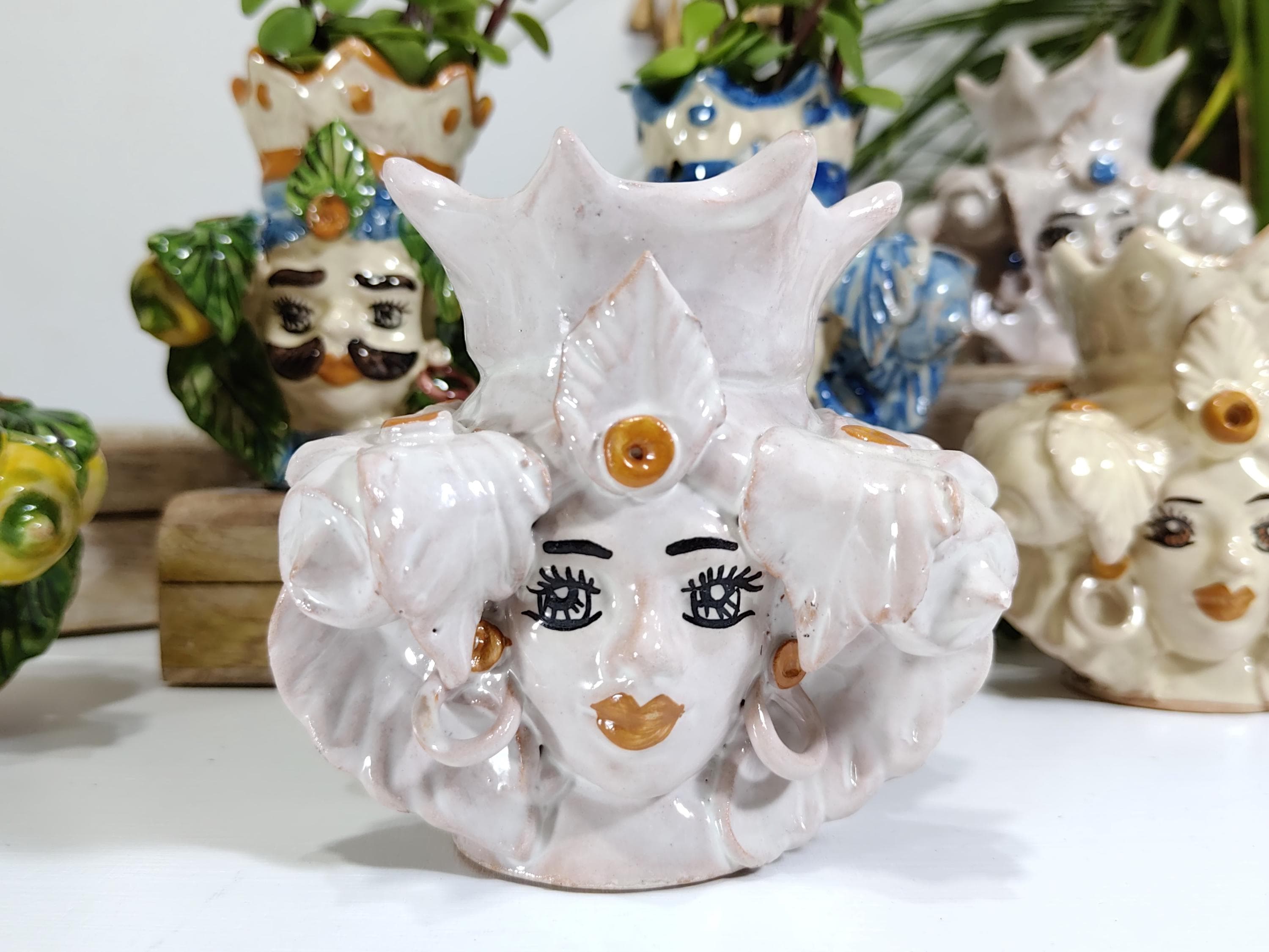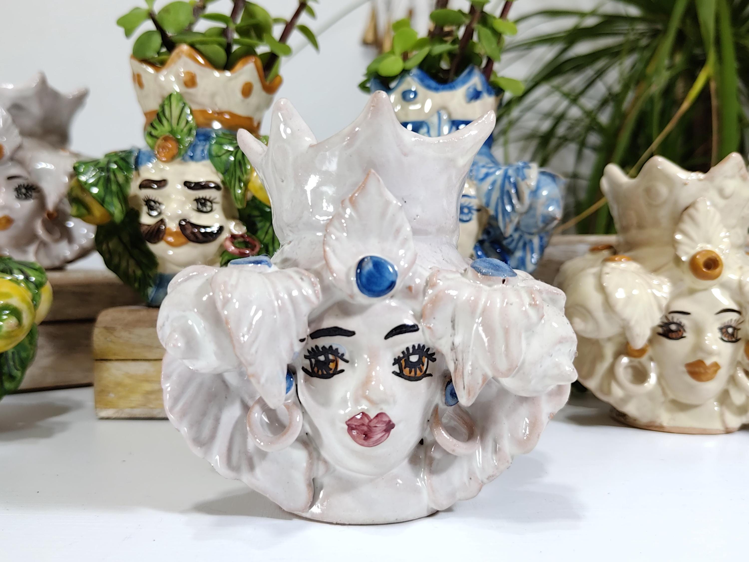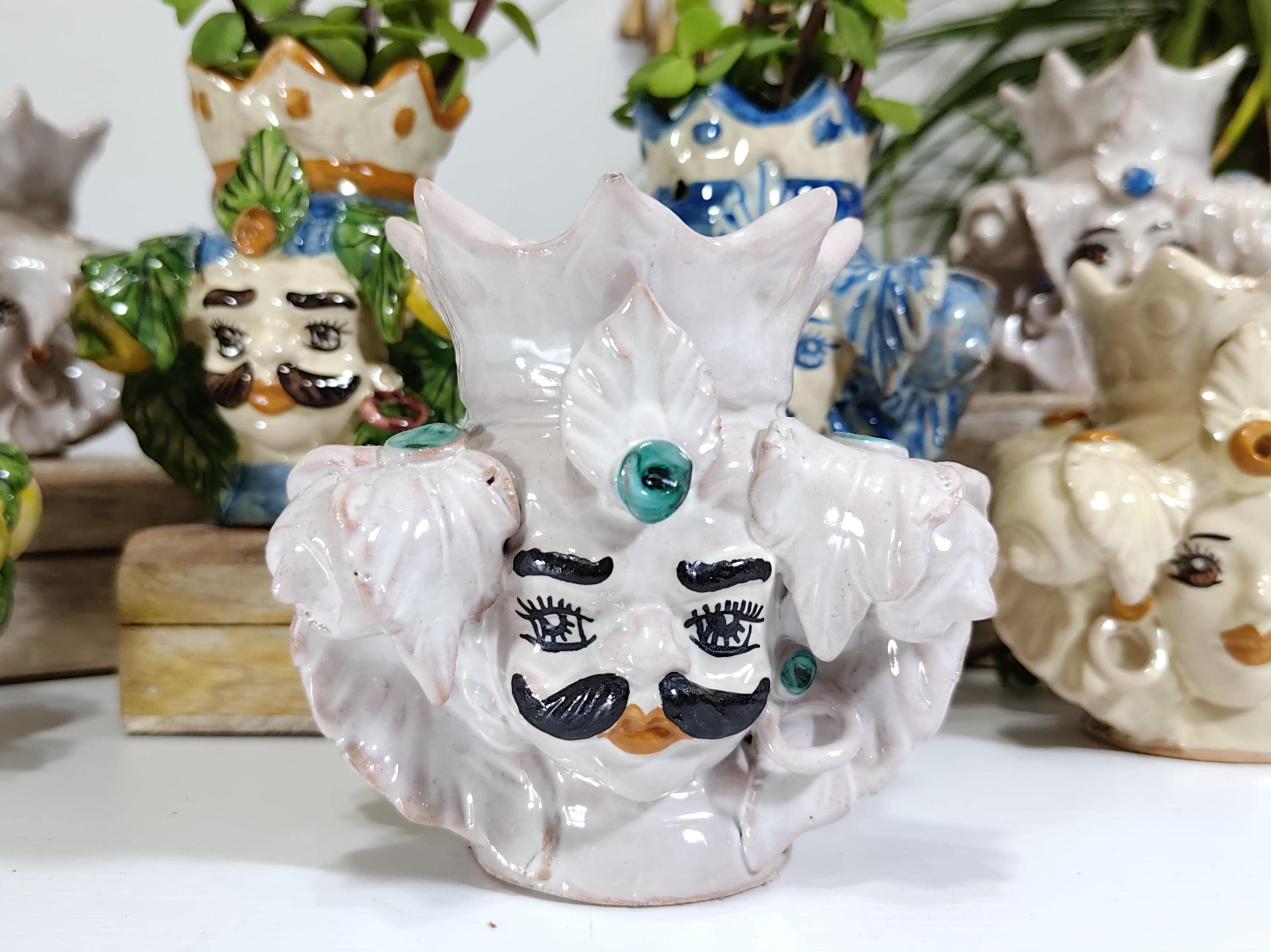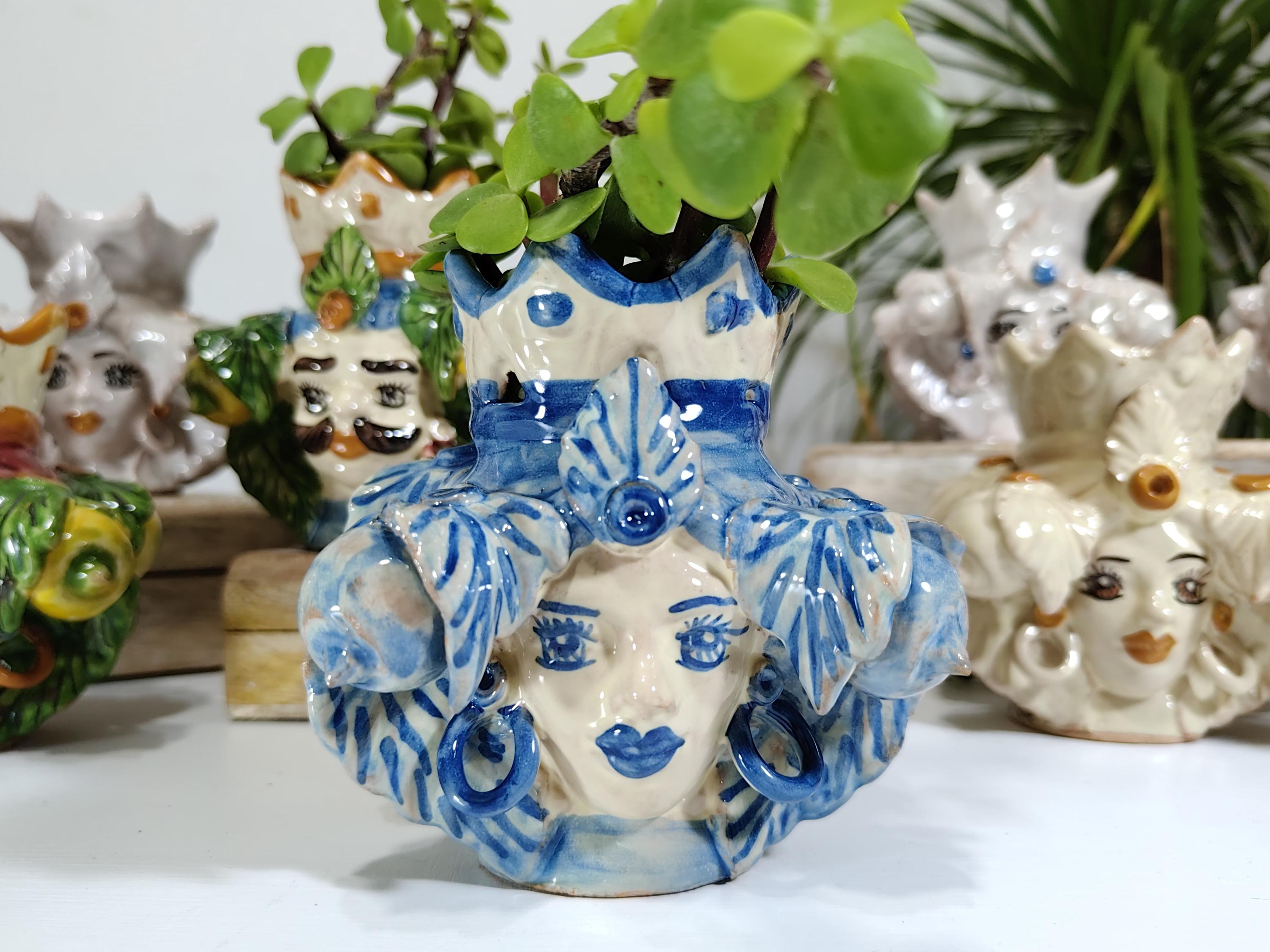 Sicilian Moorish heads in Caltagirone ceramic, entirely handcrafted in shape and decoration.