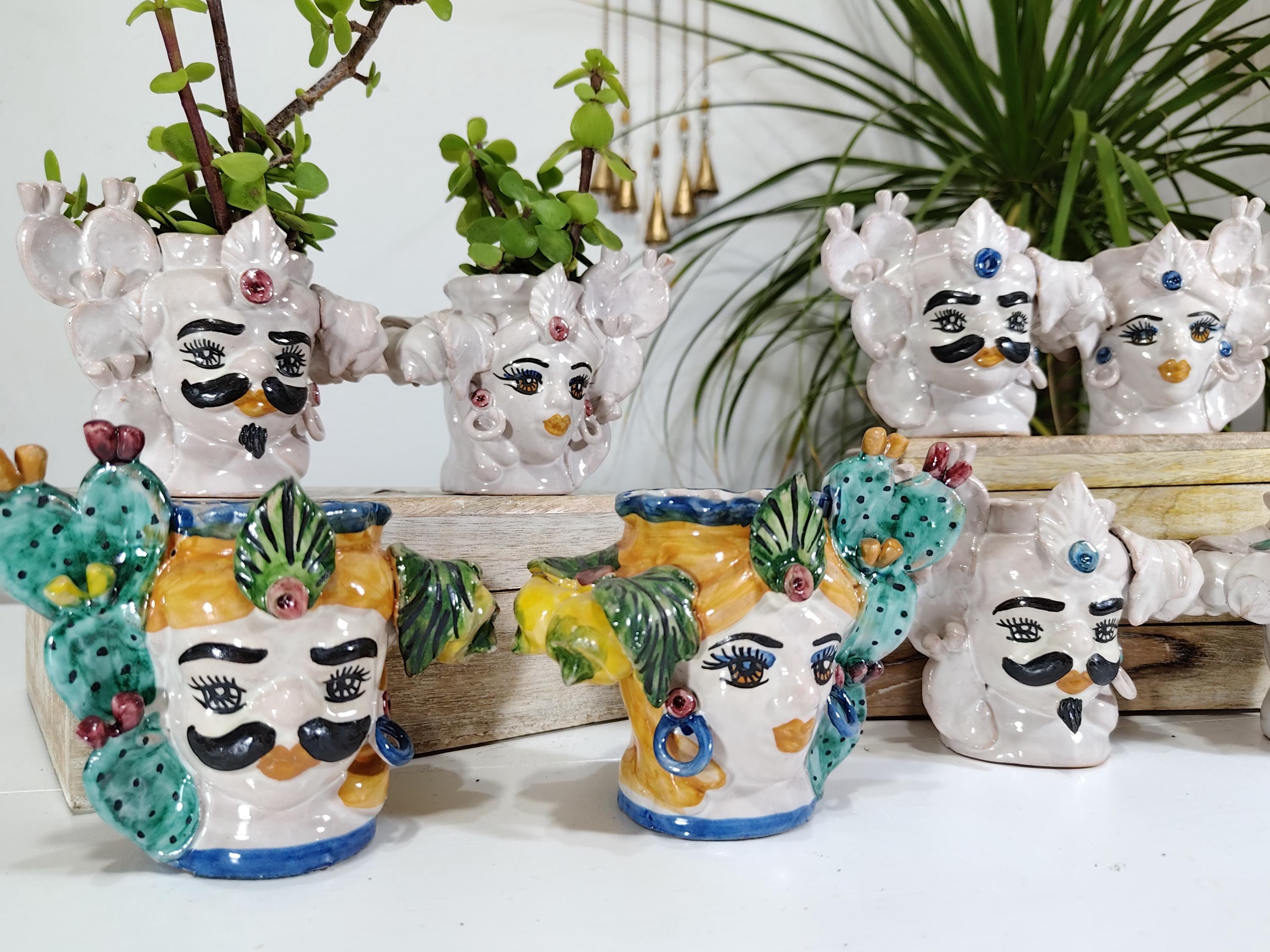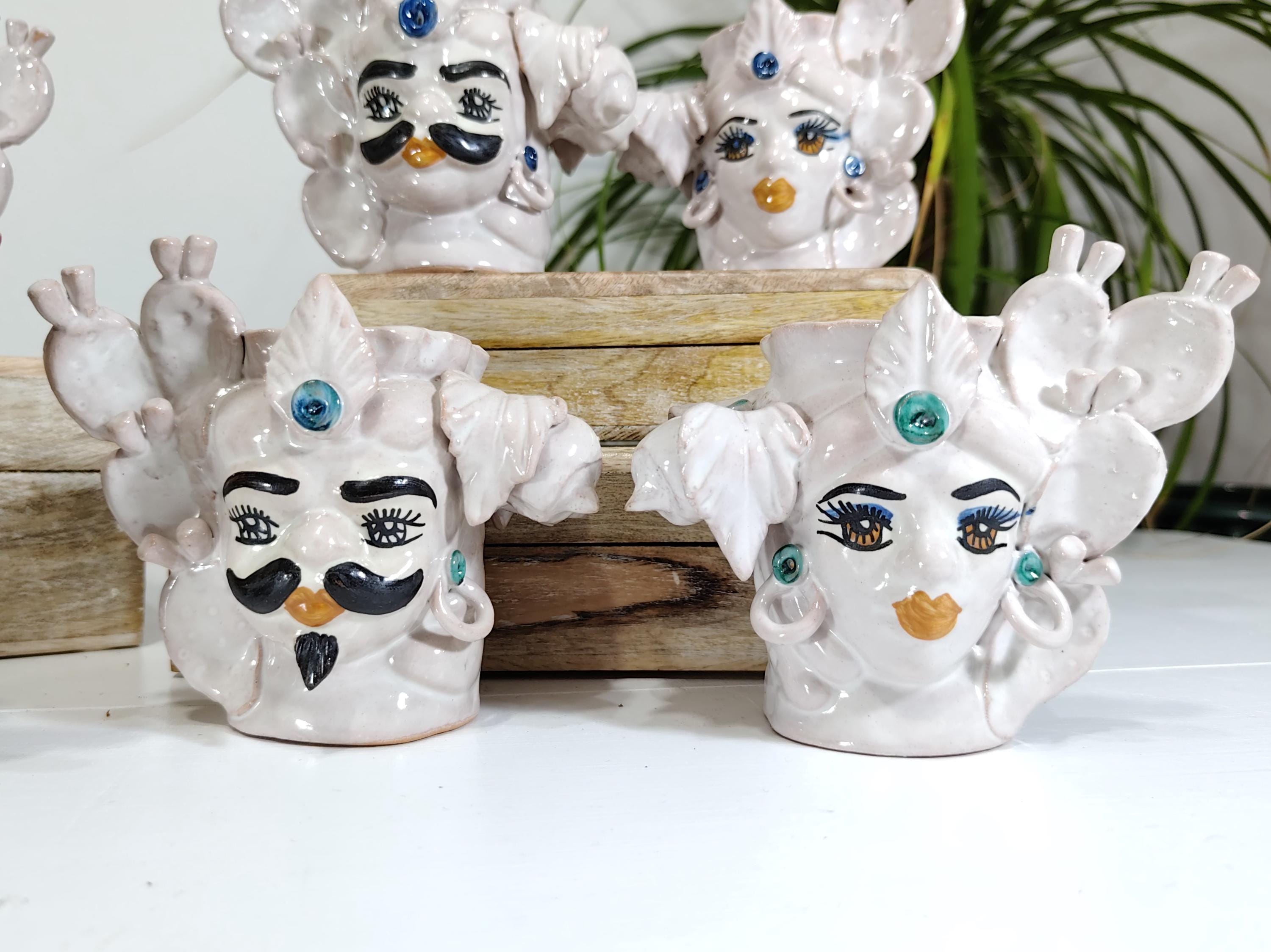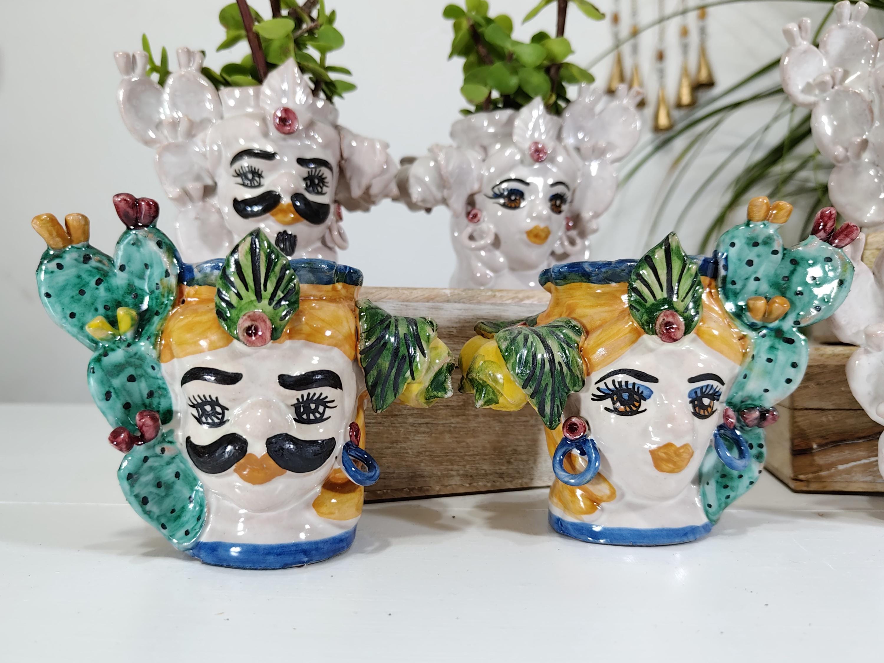 Sicilian Moorish heads in Caltagirone ceramic, entirely hand-made in shape and decoration, small but always well-finished and beautiful H11 L11