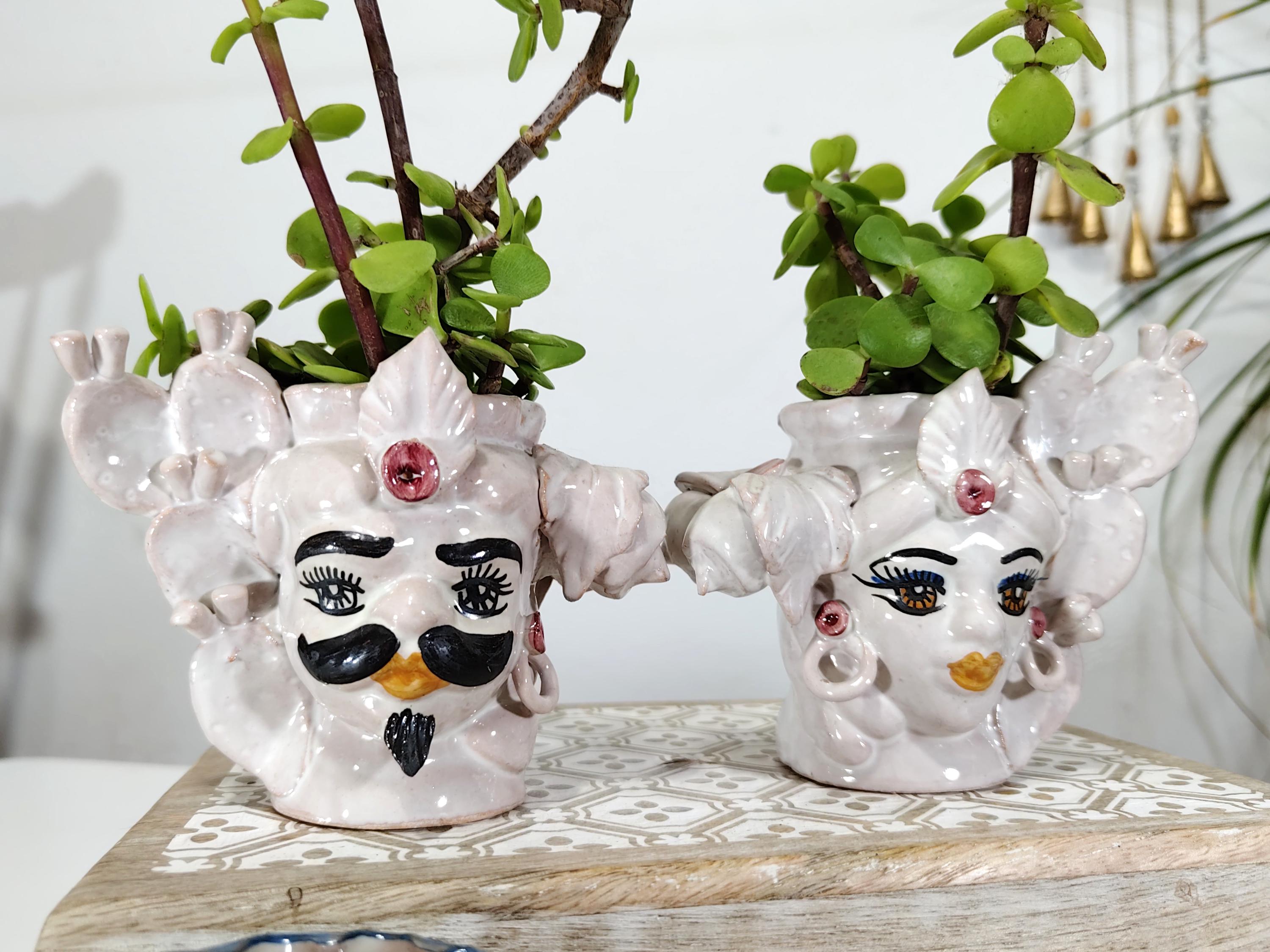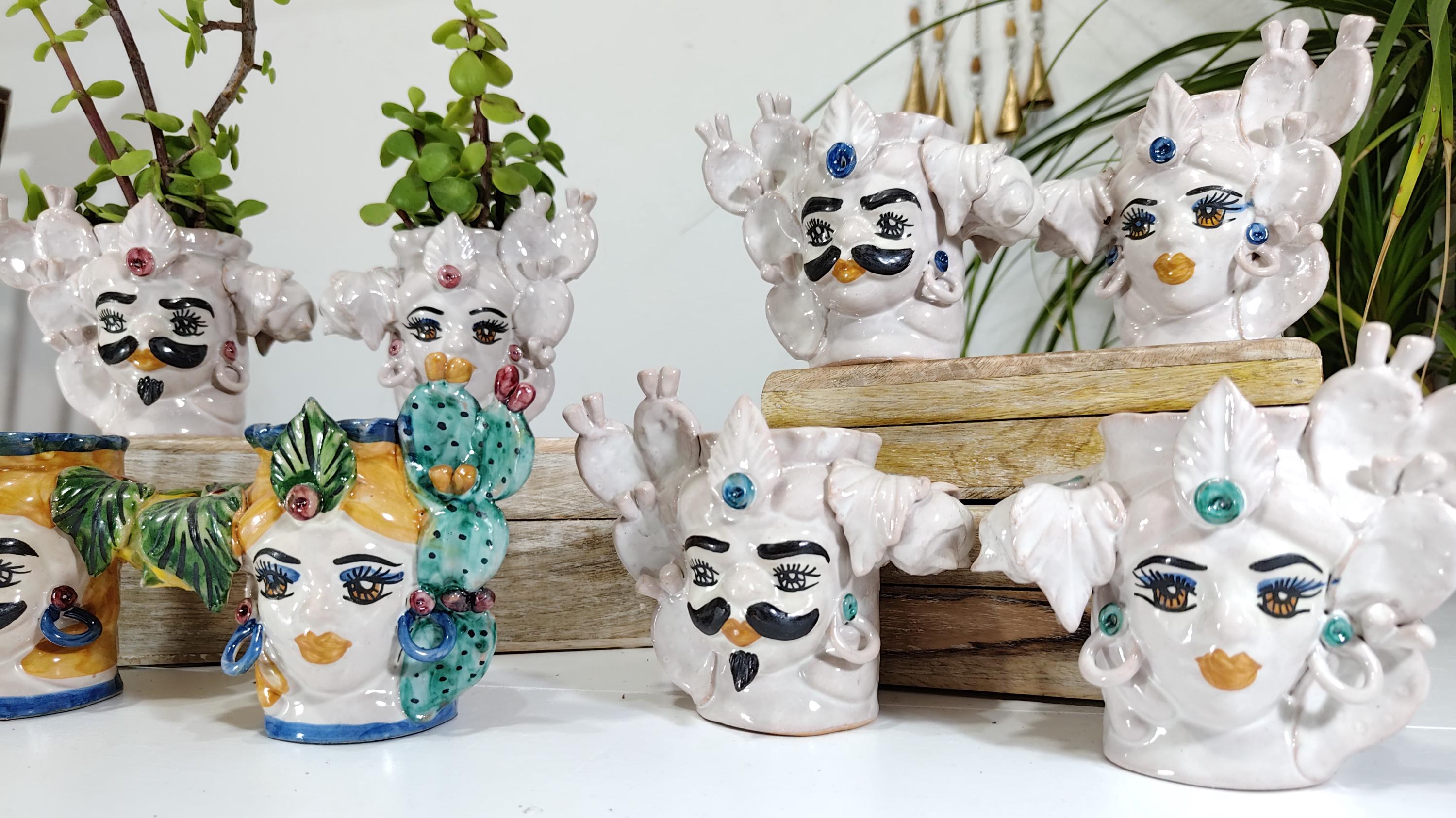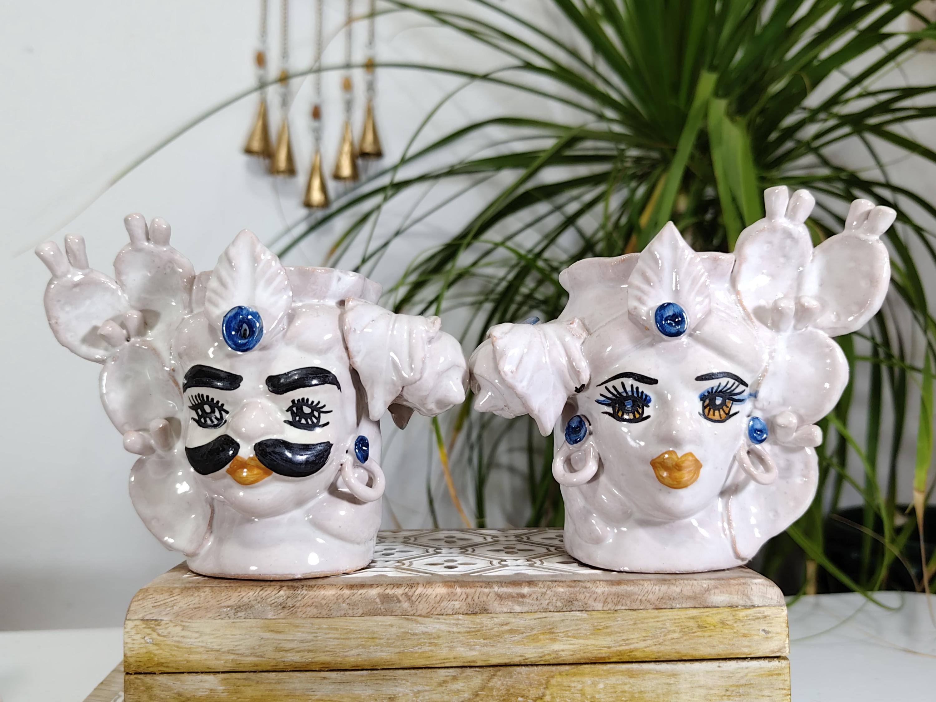 Sicilian Moorish heads in Caltagirone ceramic, entirely hand-made in shape and decoration, small but always well-finished and beautiful H11 L11