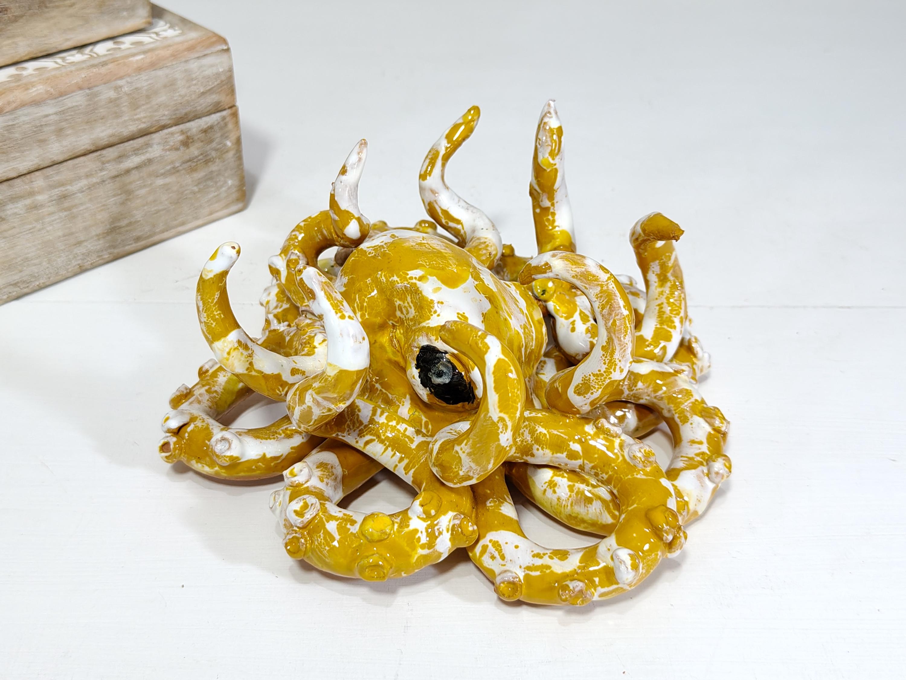 The predominant color is a bright yellow ochre/mustard shaded with overlapping jets of white.