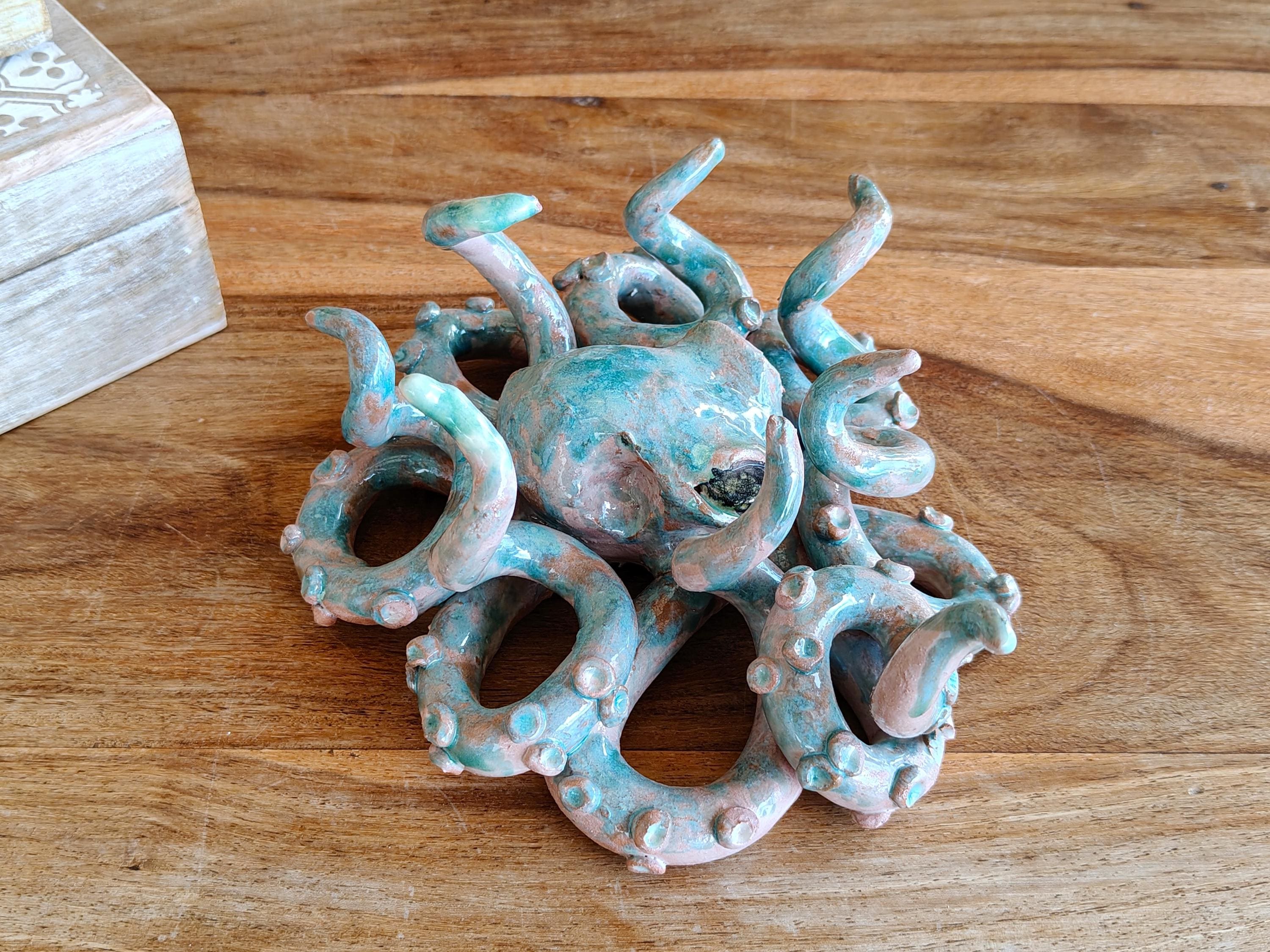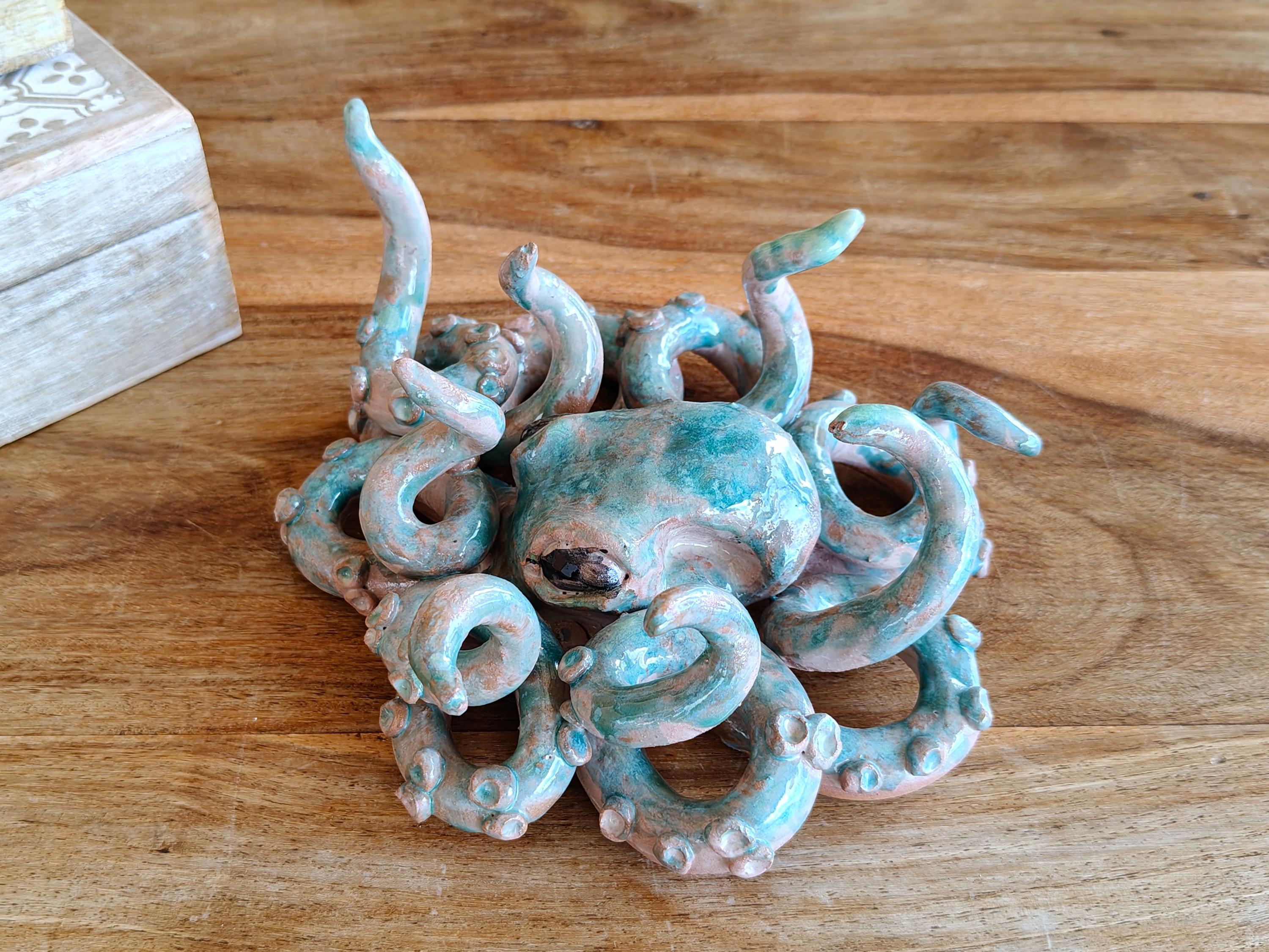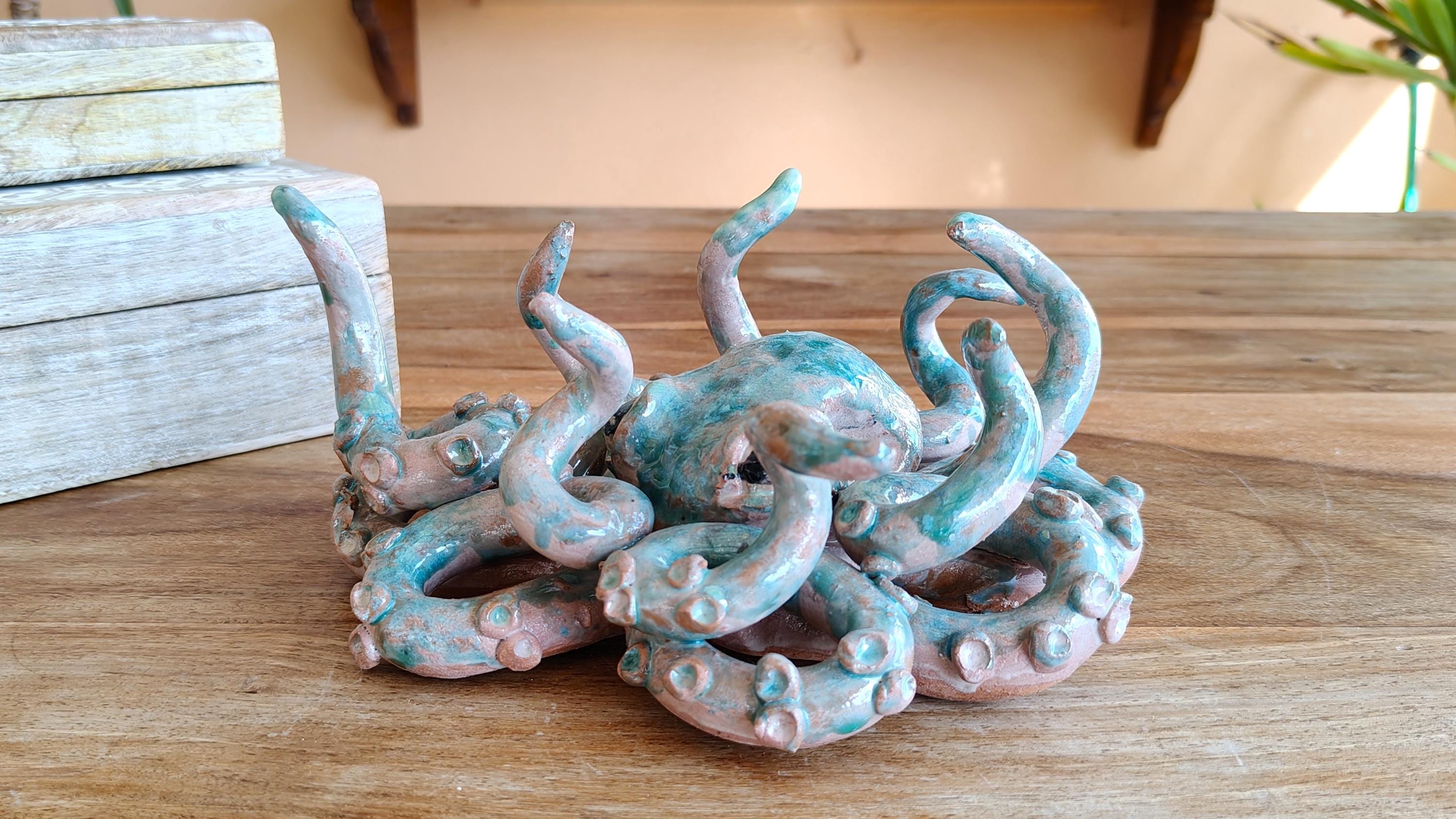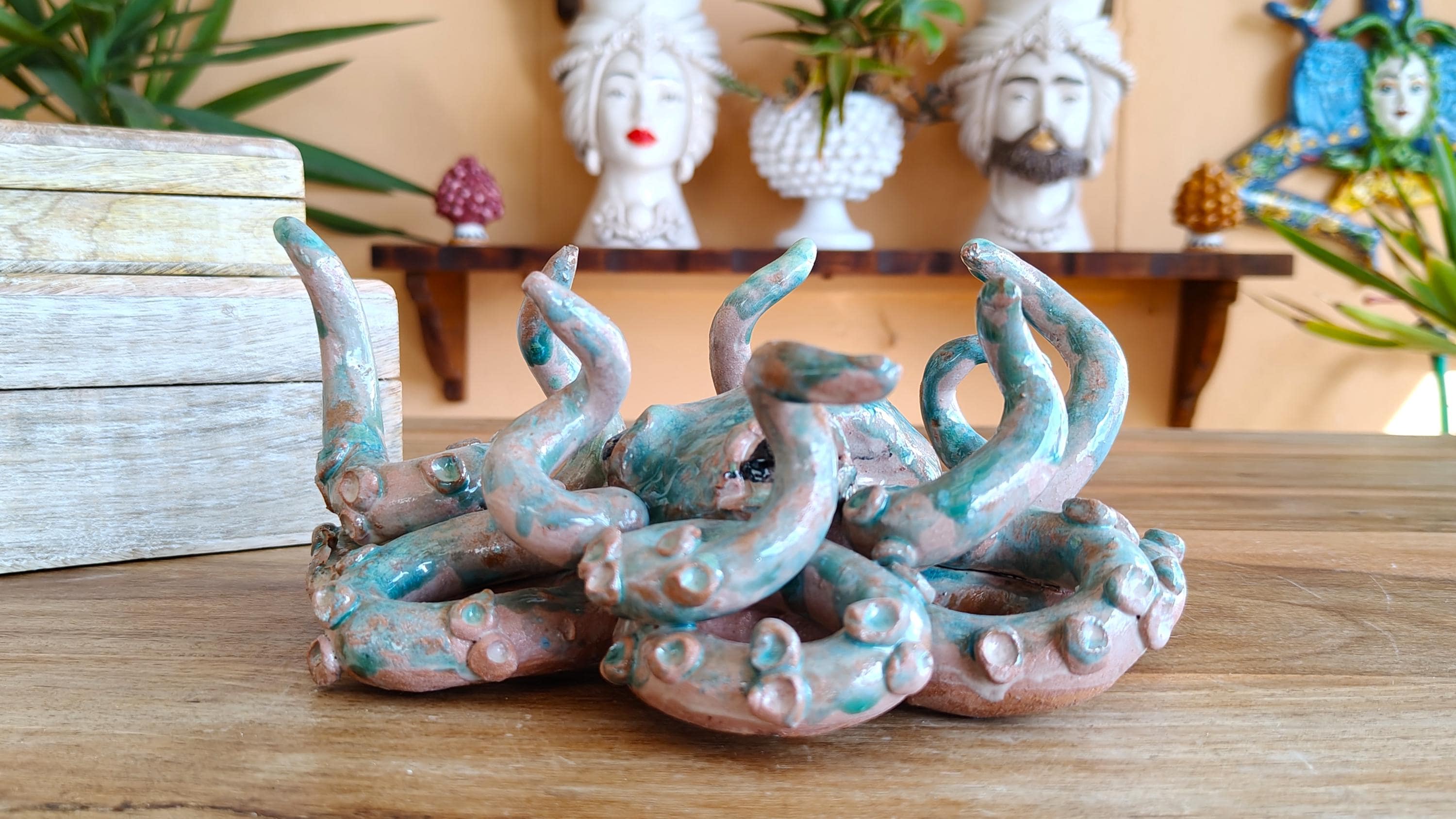 Sicilian handcrafted ceramic octopus, Sicilian ceramic, ceramic octopus, octopus, Caltagirone ceramic, design, handmade
