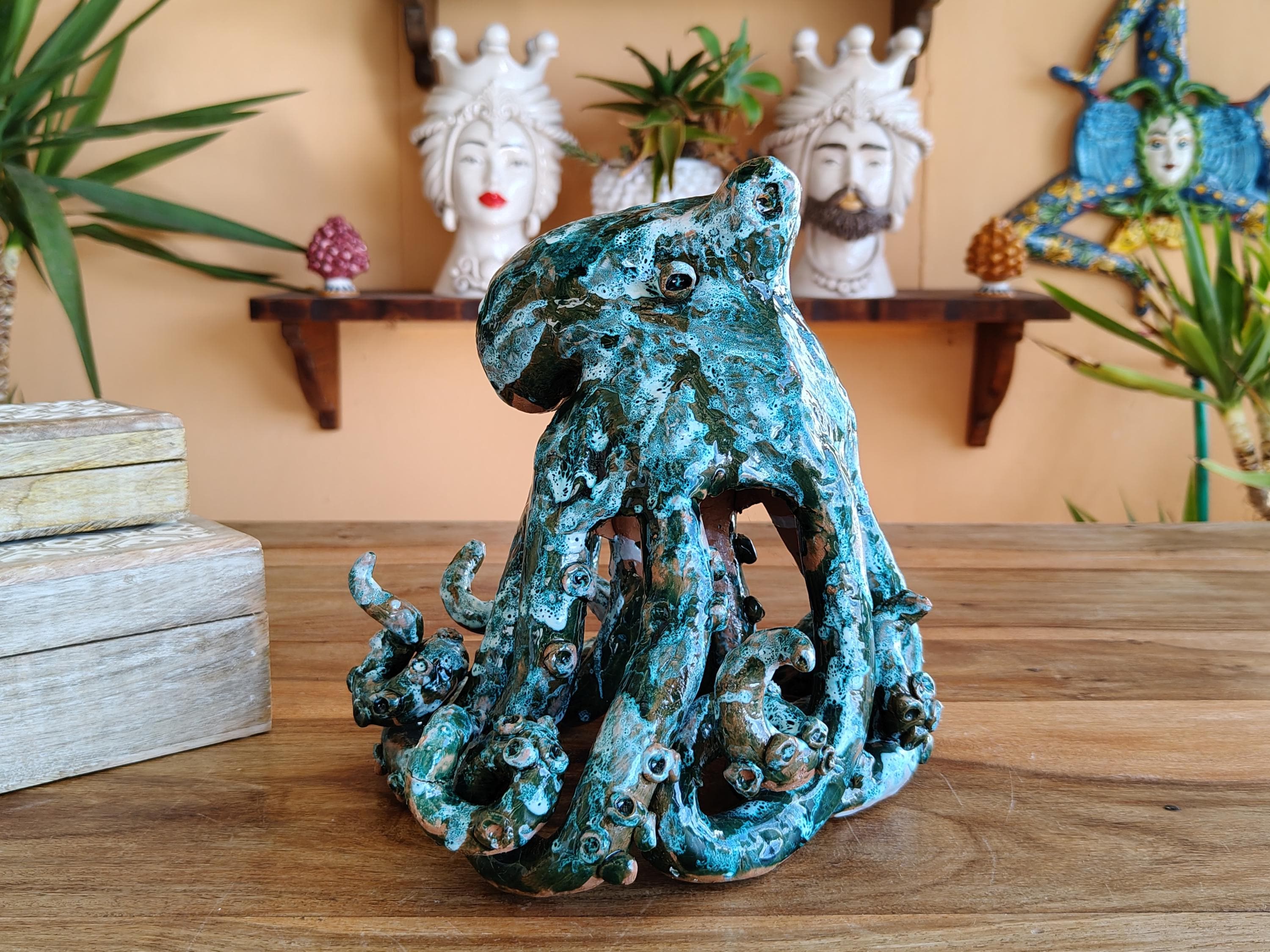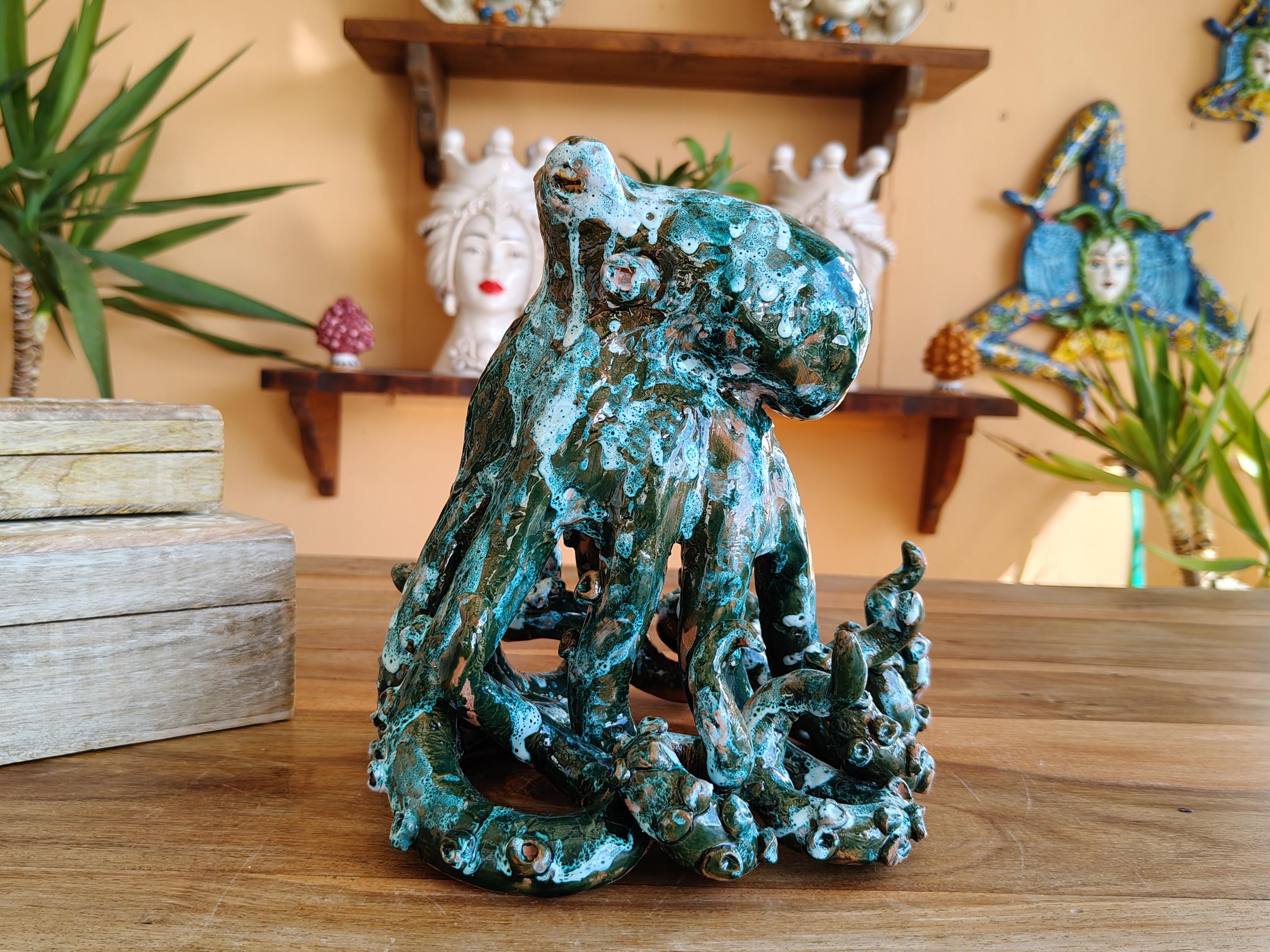 Sicilian ceramic octopus octopuses handcrafted in Caltagirone,