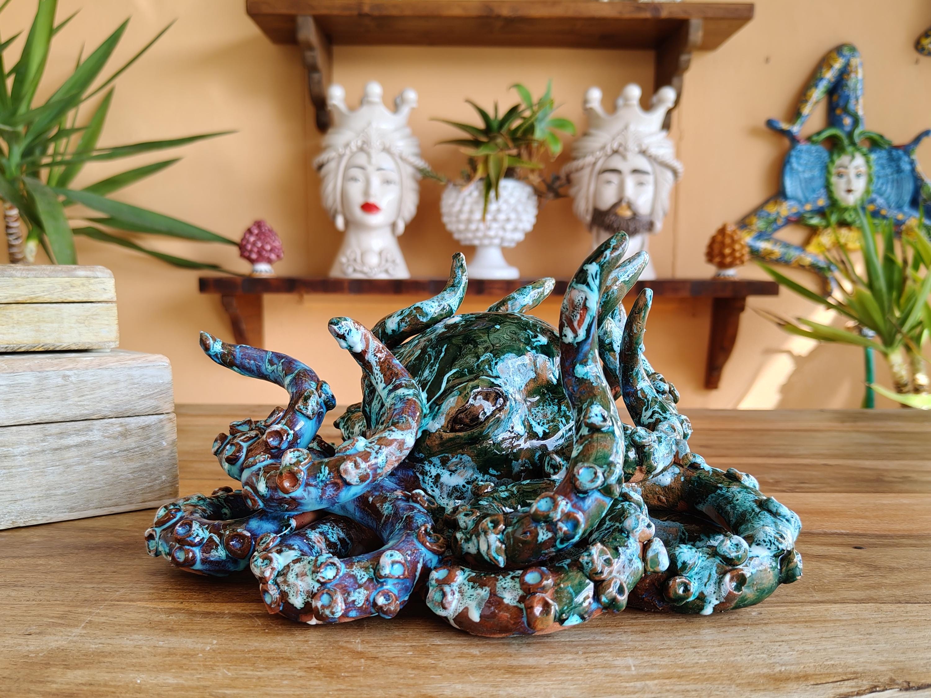 Sicilian ceramic octopus octopuses handcrafted in Caltagirone,