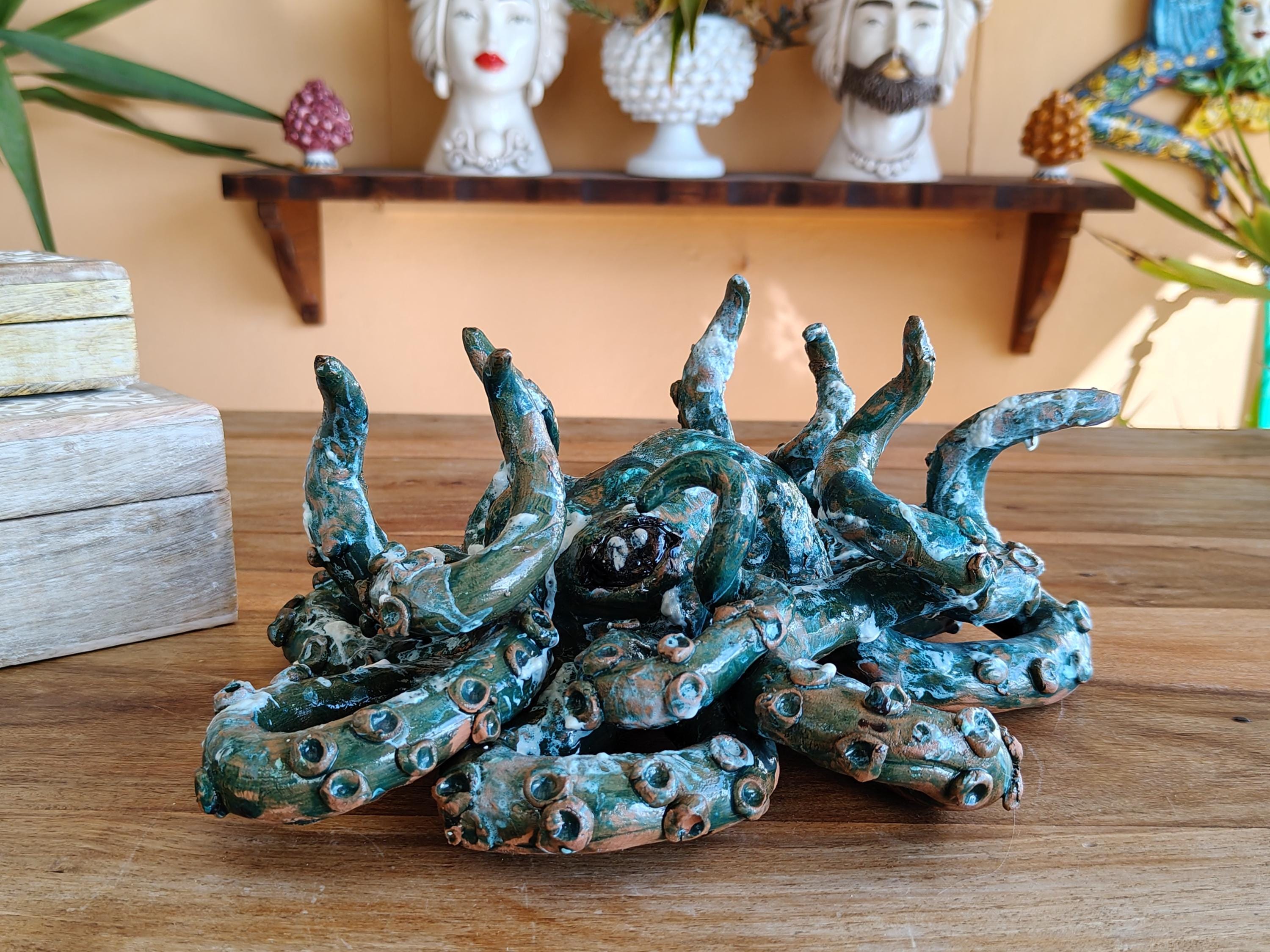 Sicilian ceramic octopus octopuses handcrafted in Caltagirone,