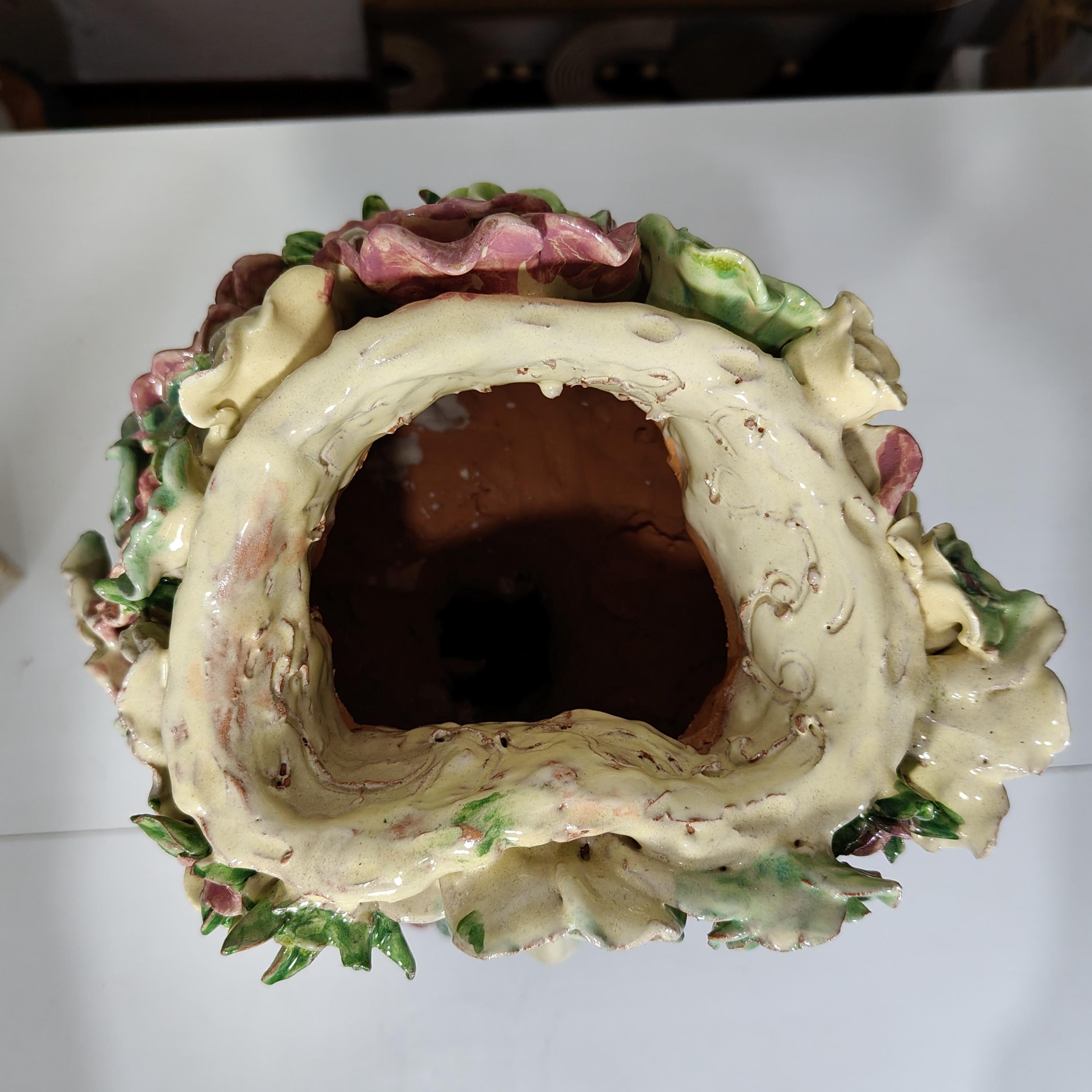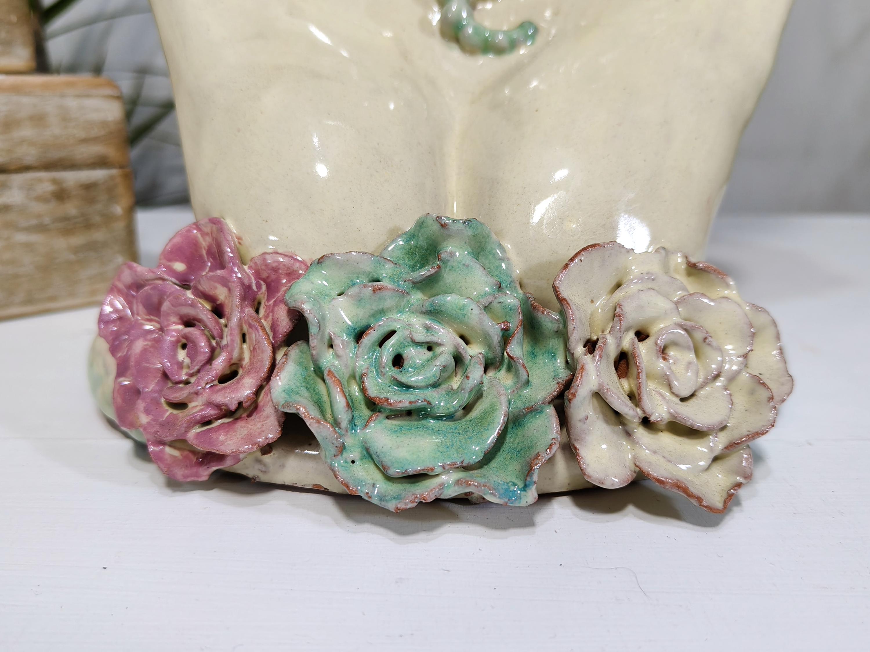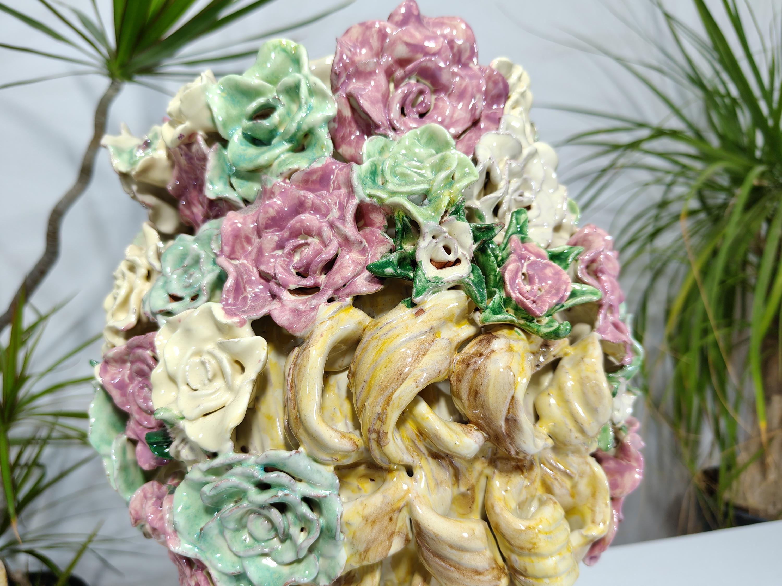 Fine and sophisticated workmanship, artist with great artistic skills, it is not easy to capture its beauty with a camera, one of those items that everyone notices in the shop, magnificent shapes delicate colors with rich applications of multicolored roses.