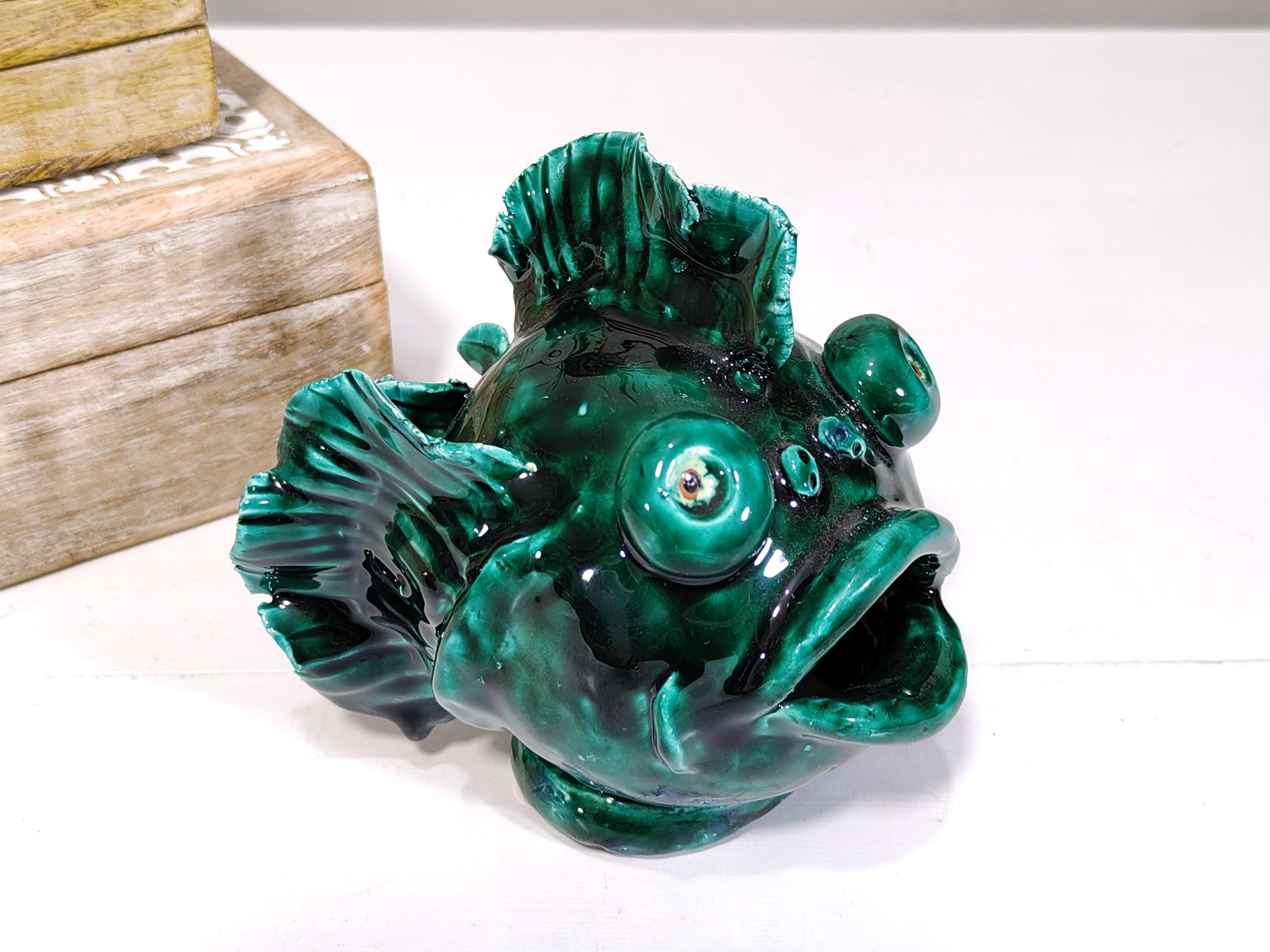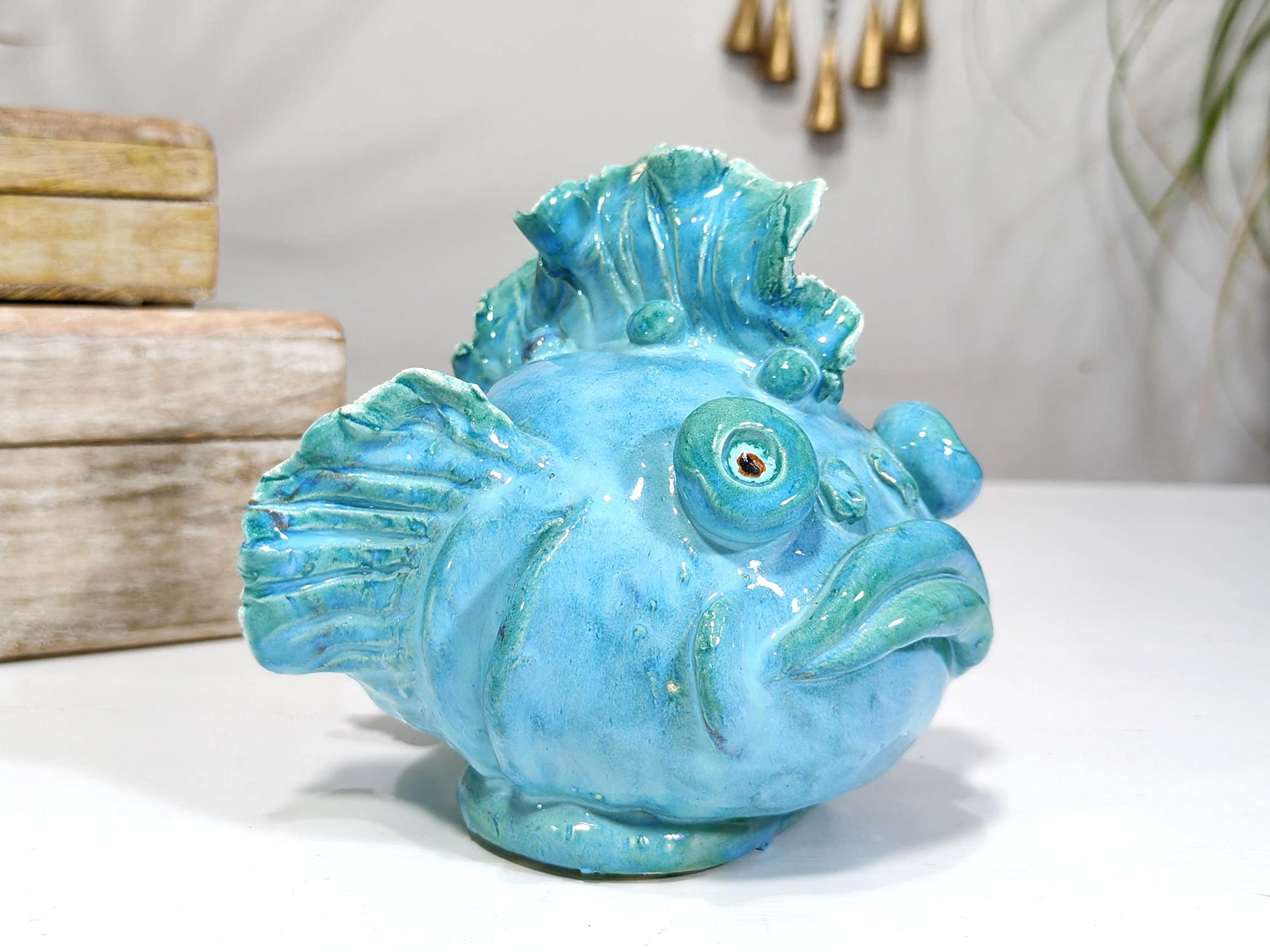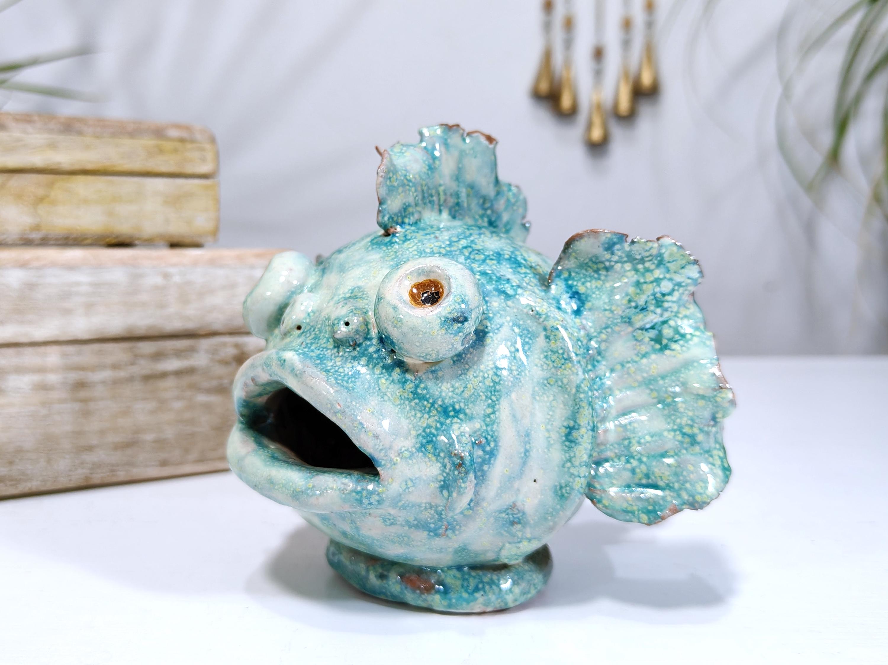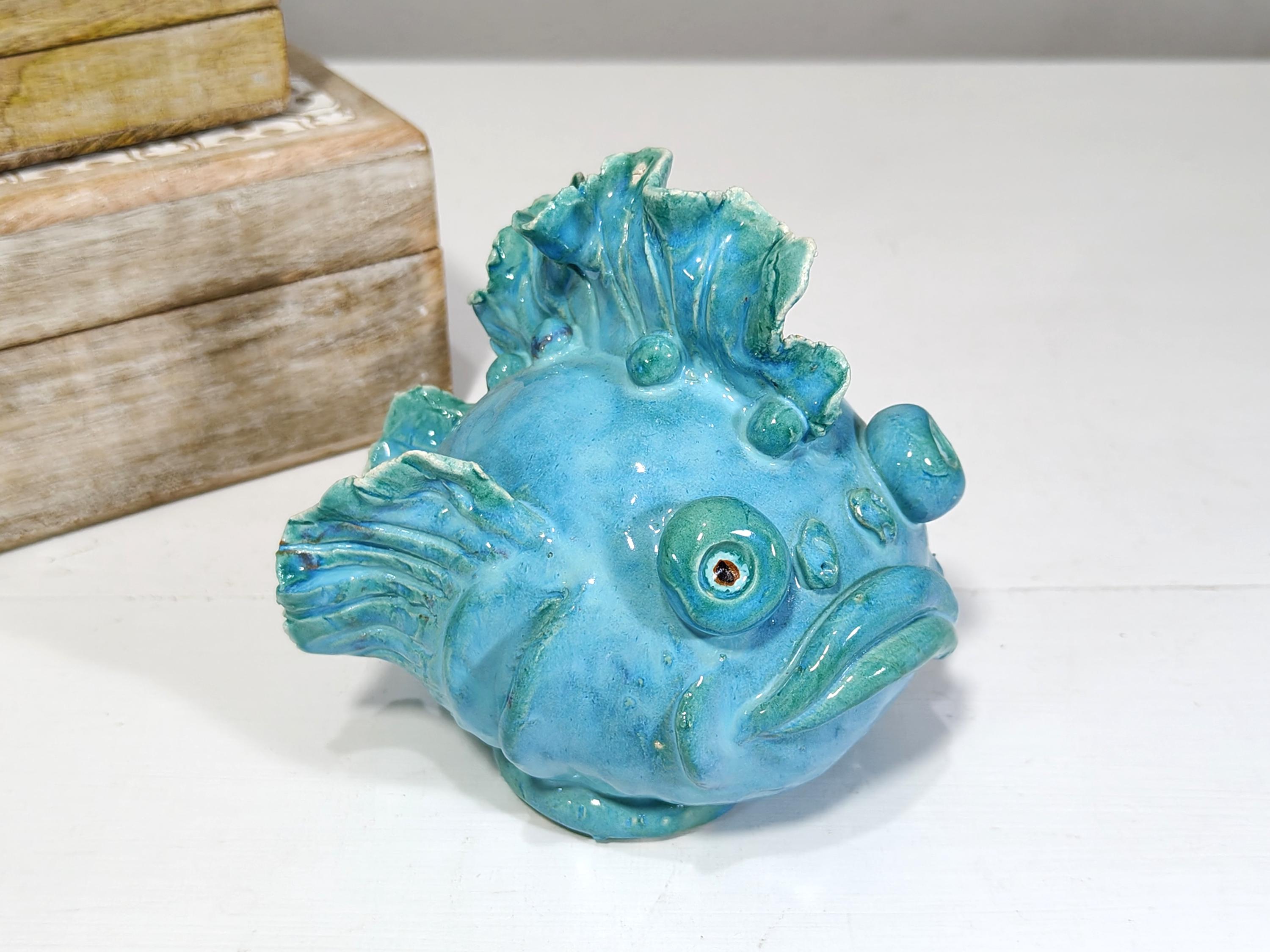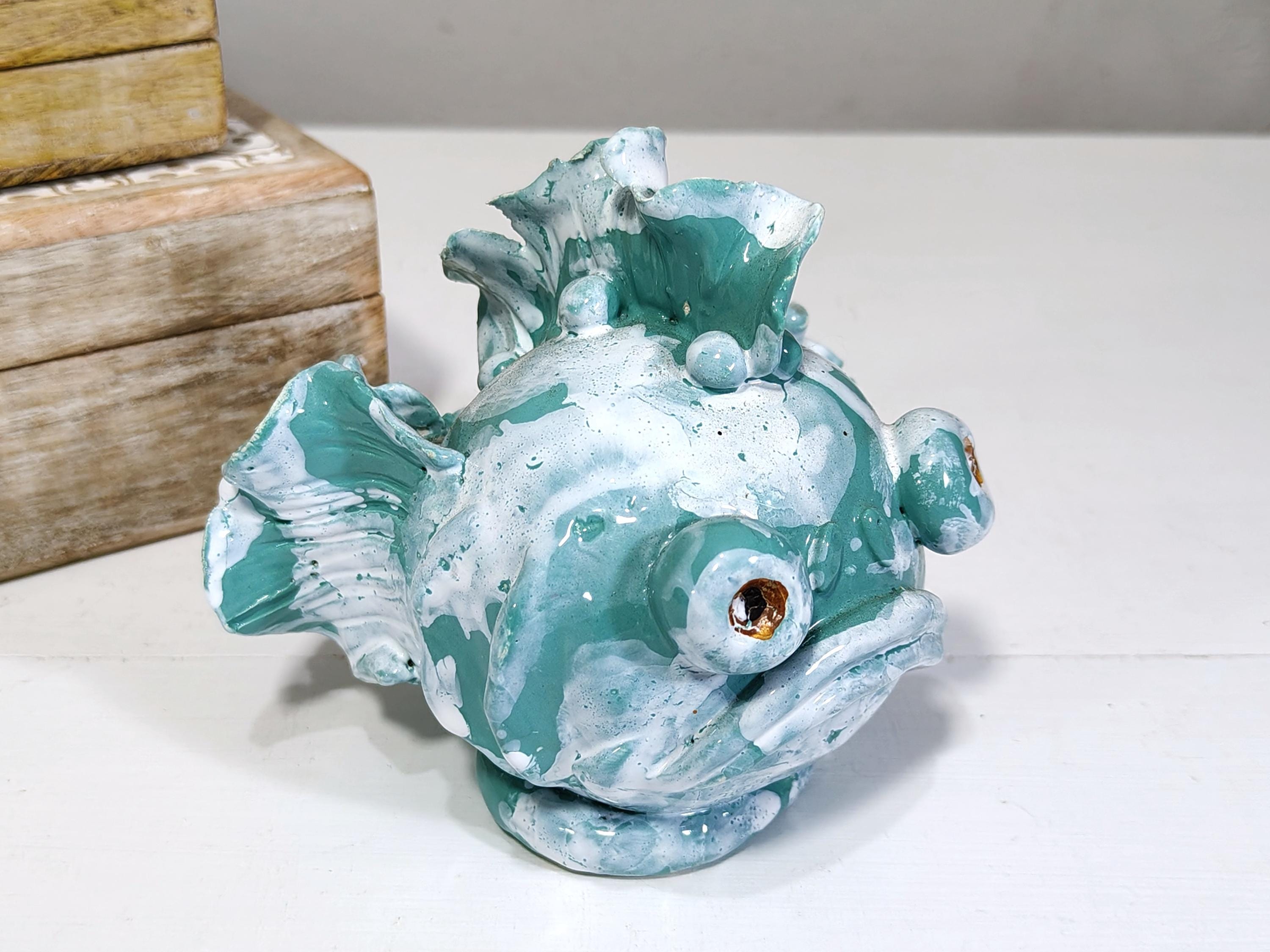 Sicilian ceramic frog fish entirely handcrafted in shape and color