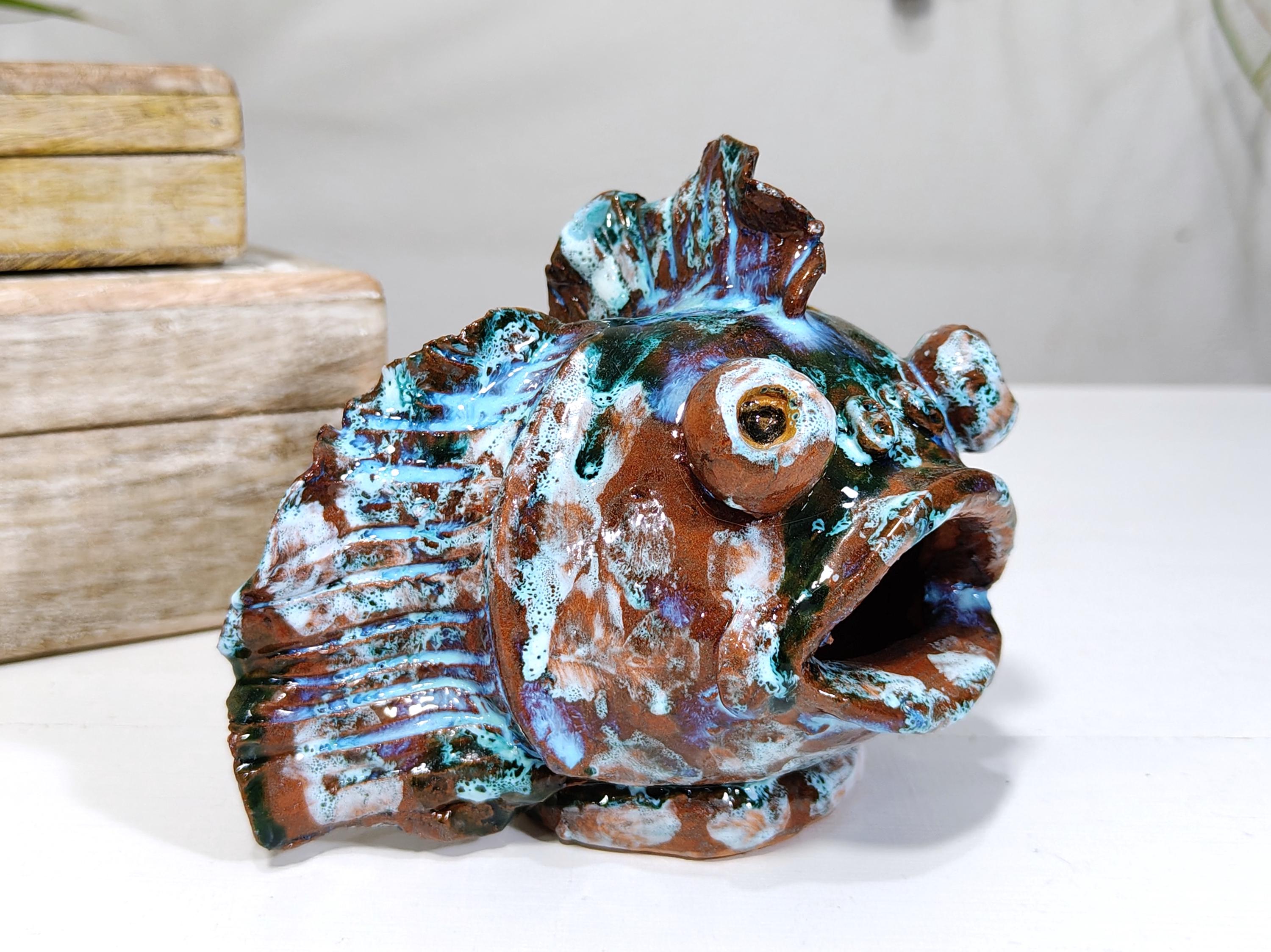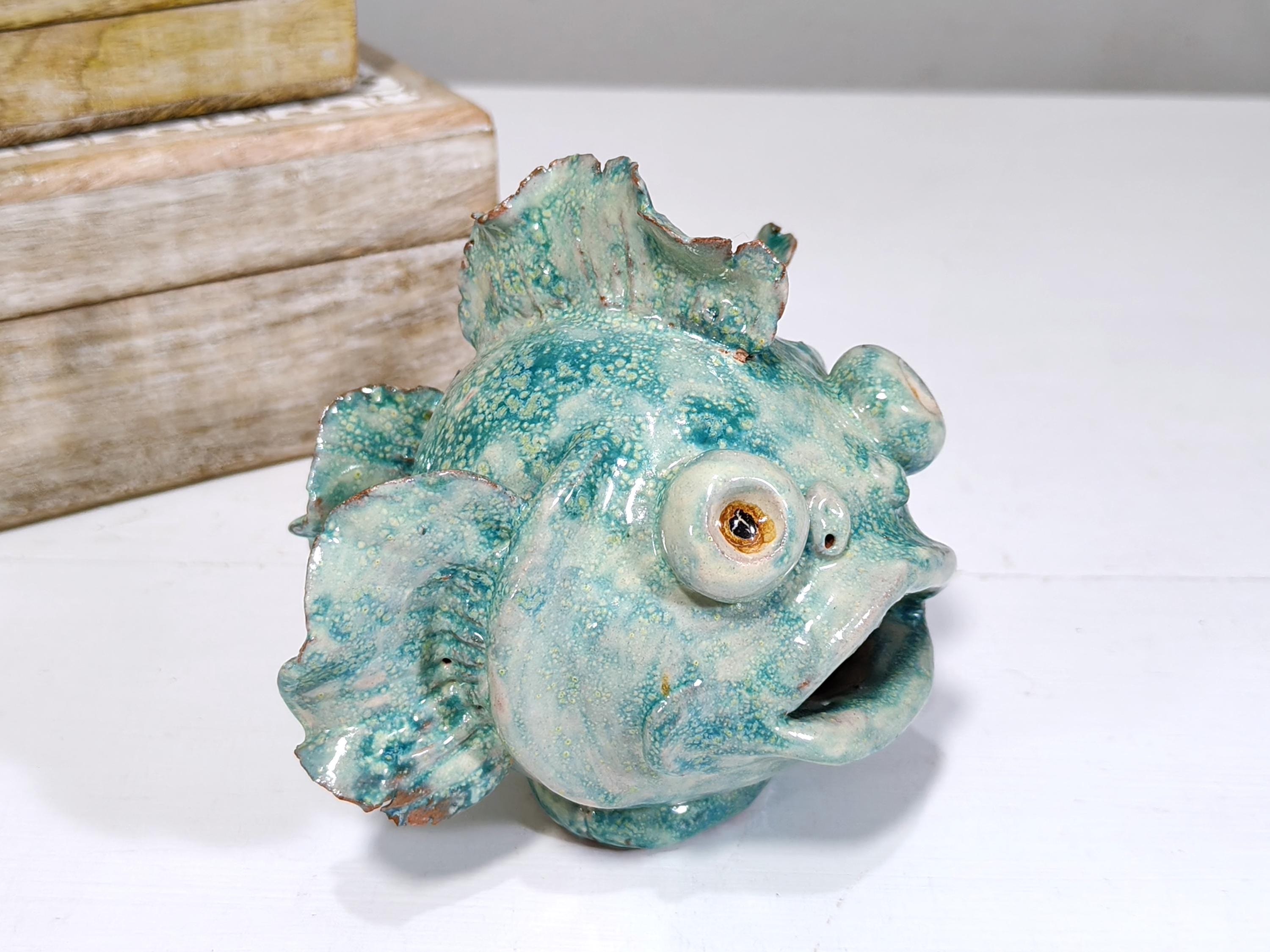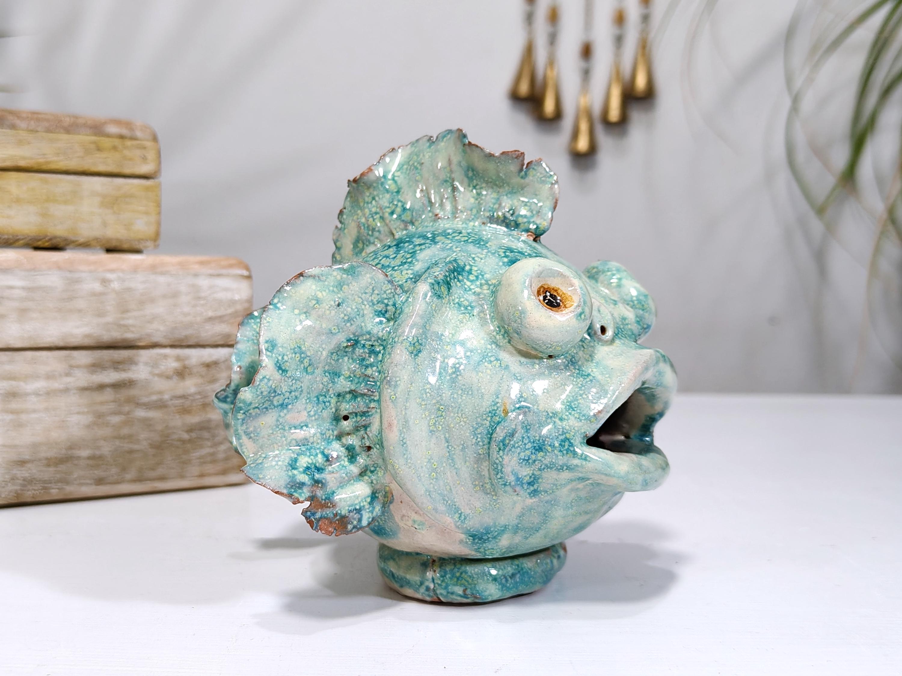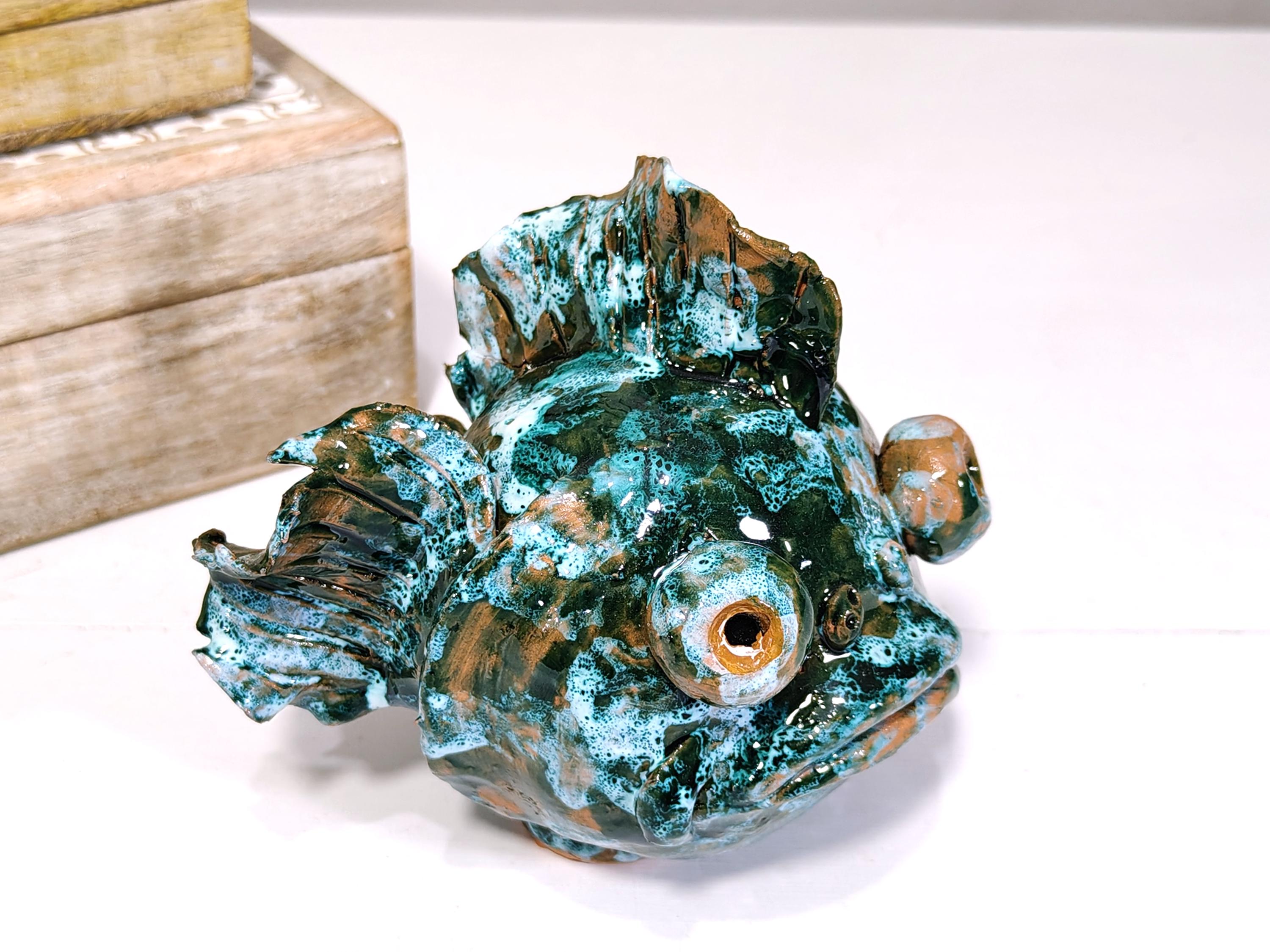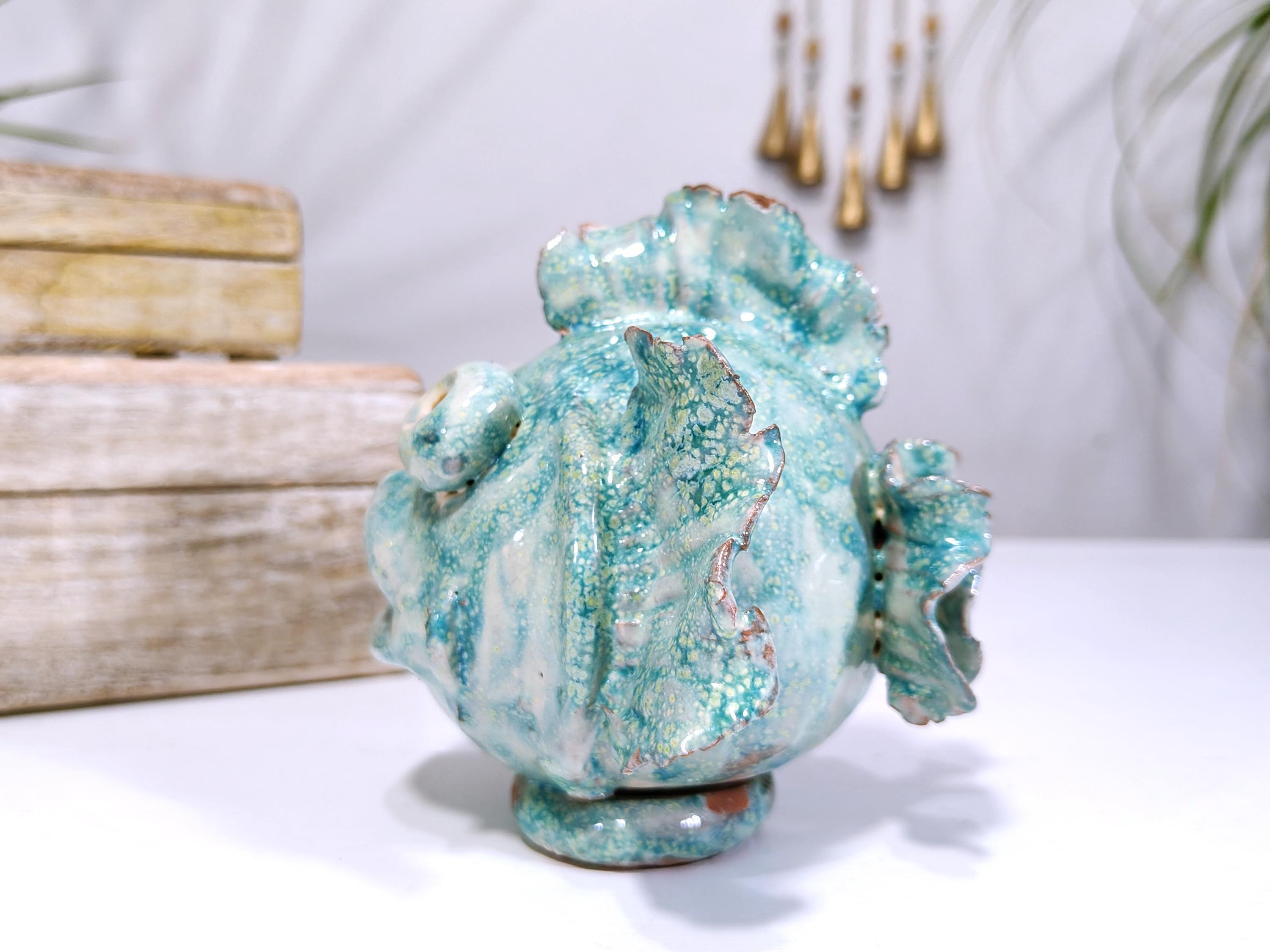 Sicilian ceramic frog fish entirely handcrafted in shape and color