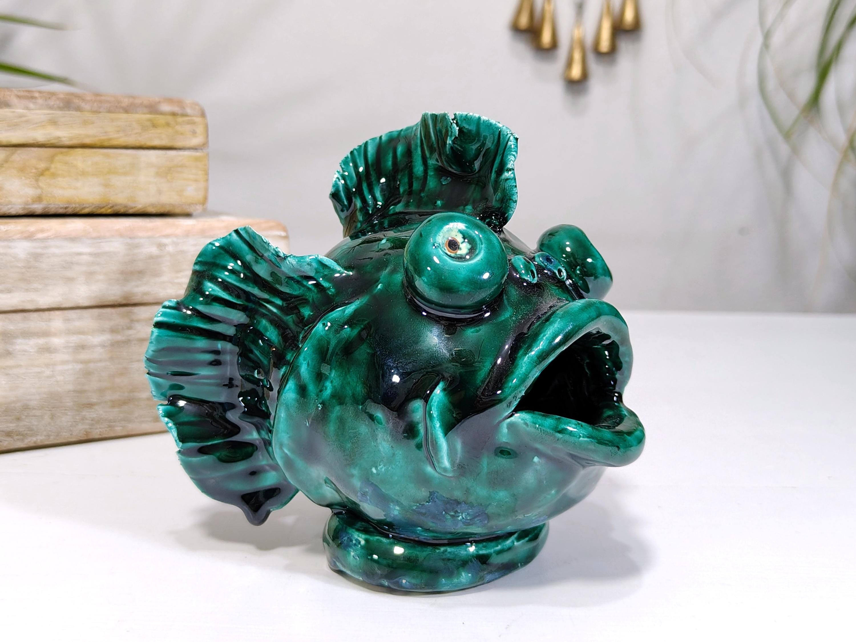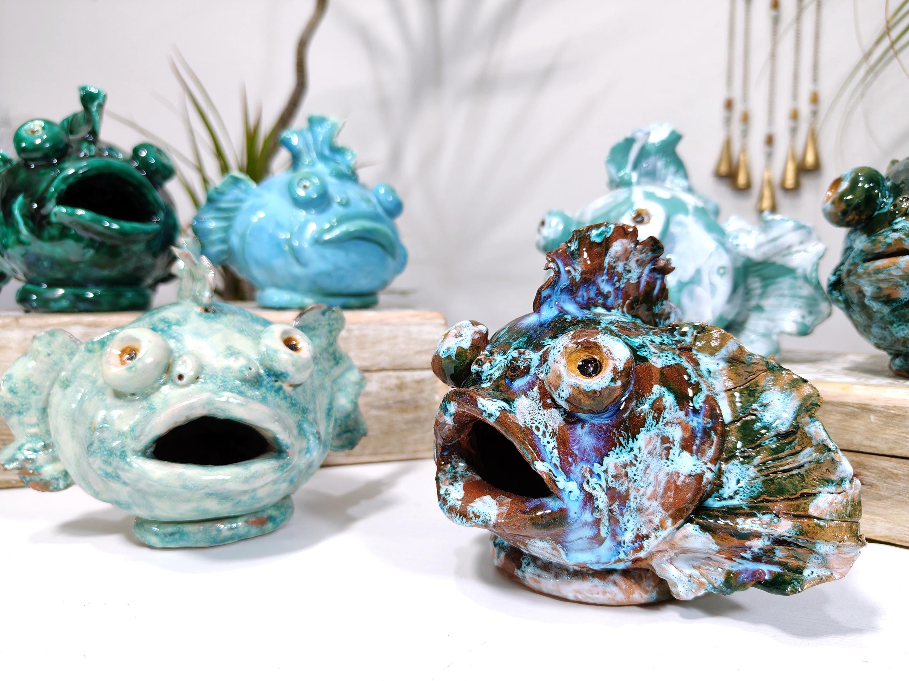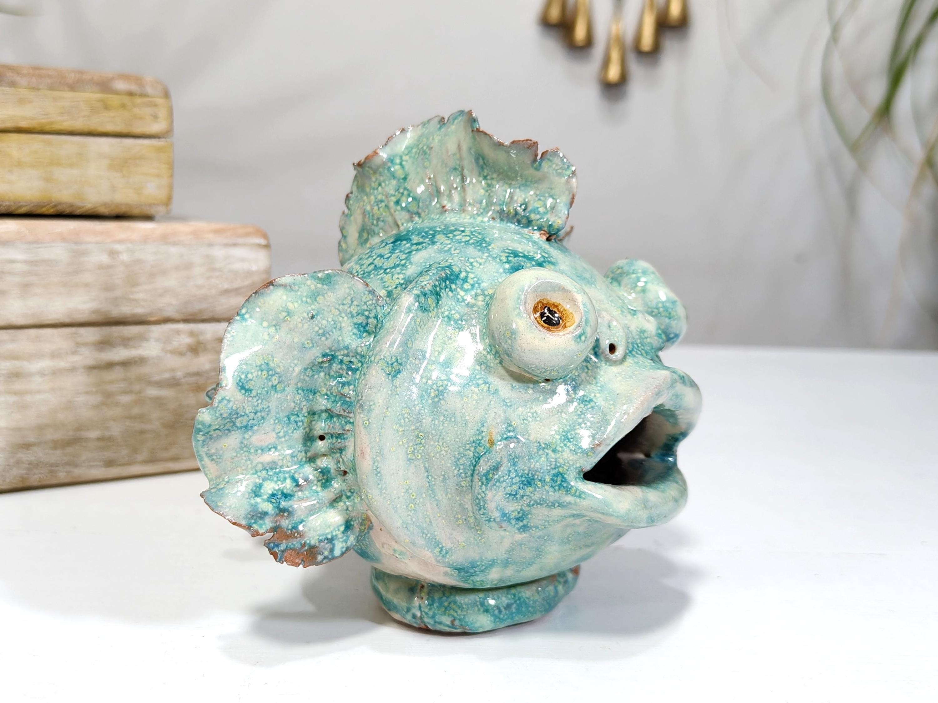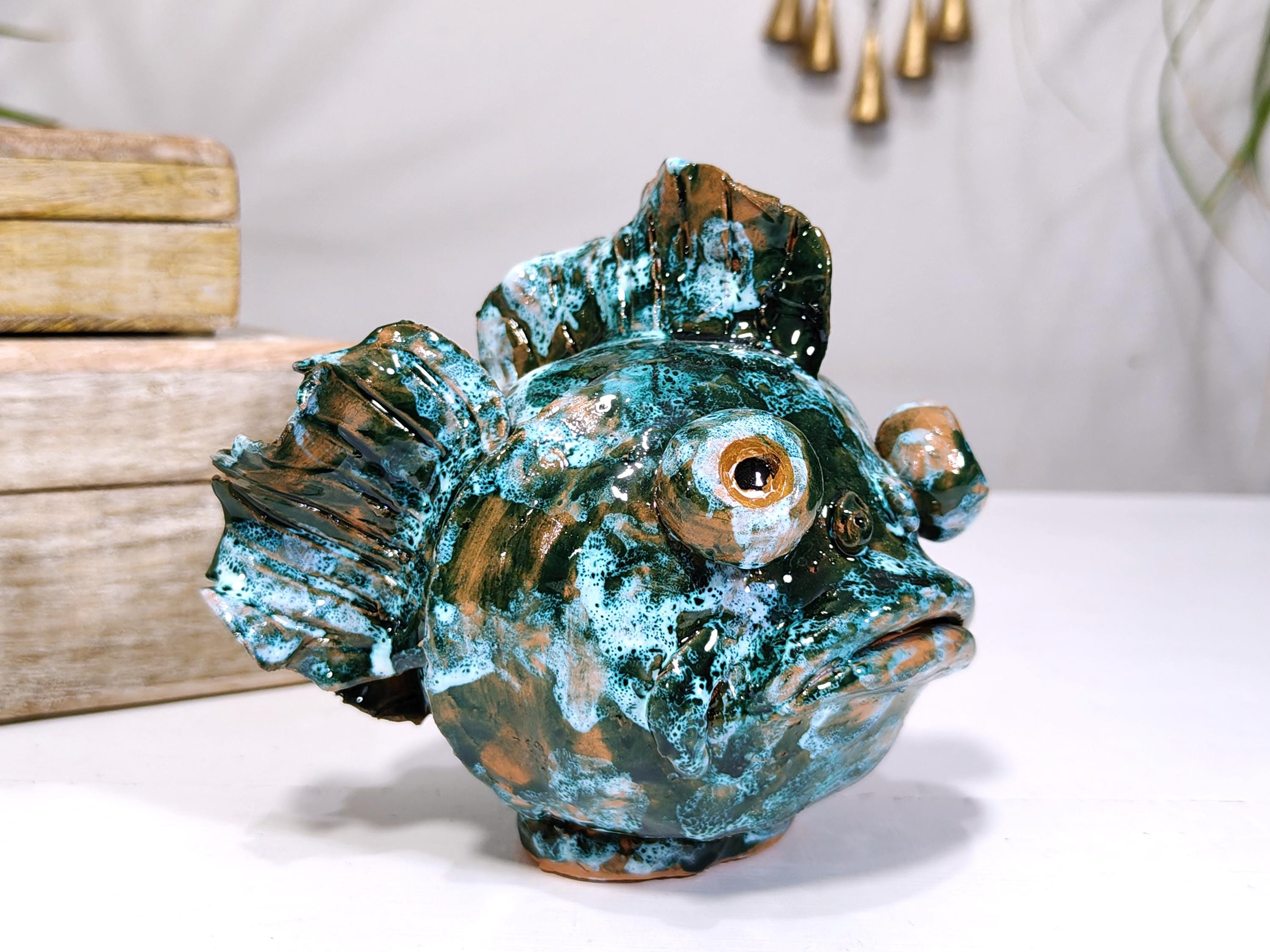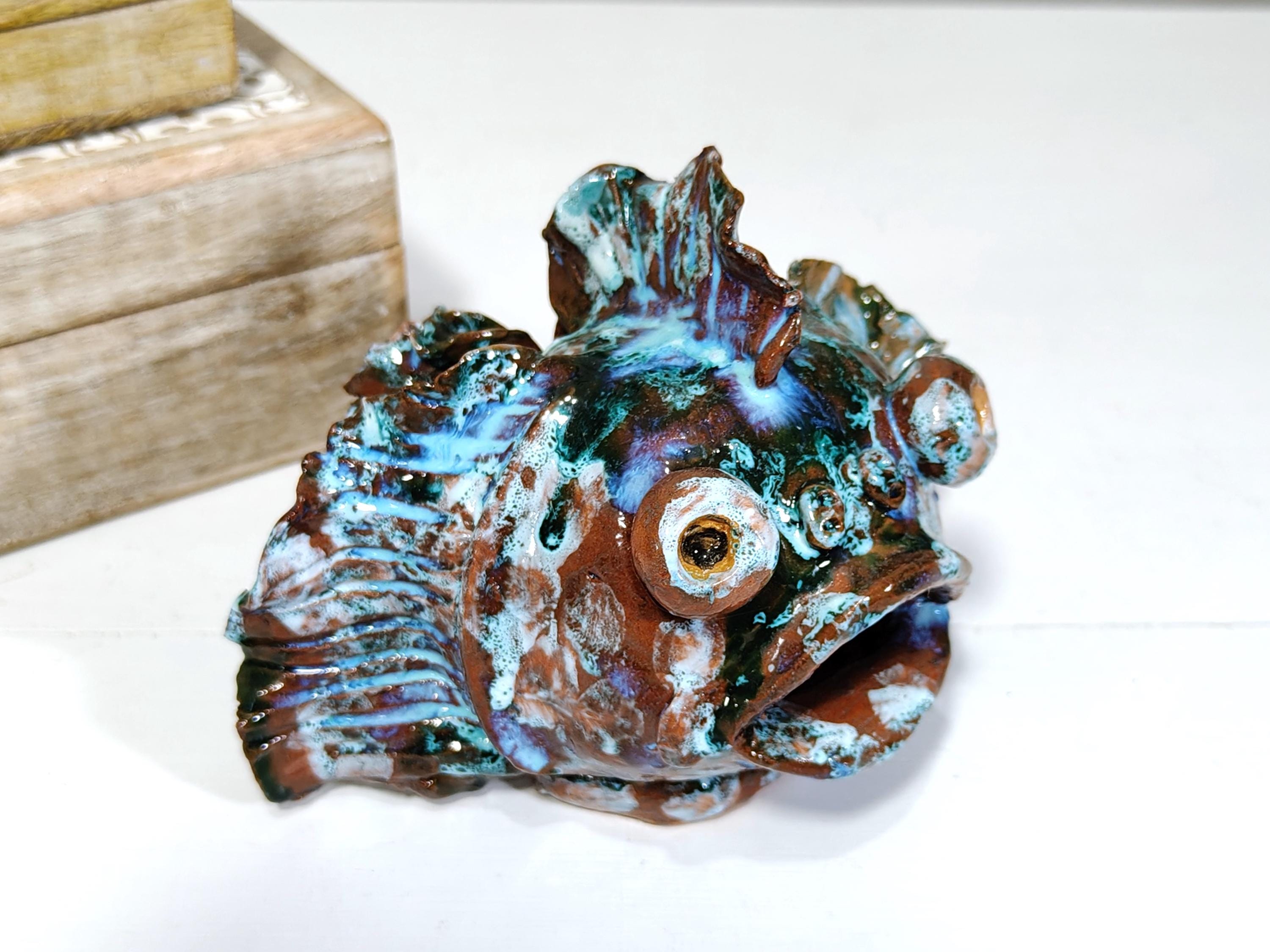 Sicilian ceramic frog fish entirely handcrafted in shape and color