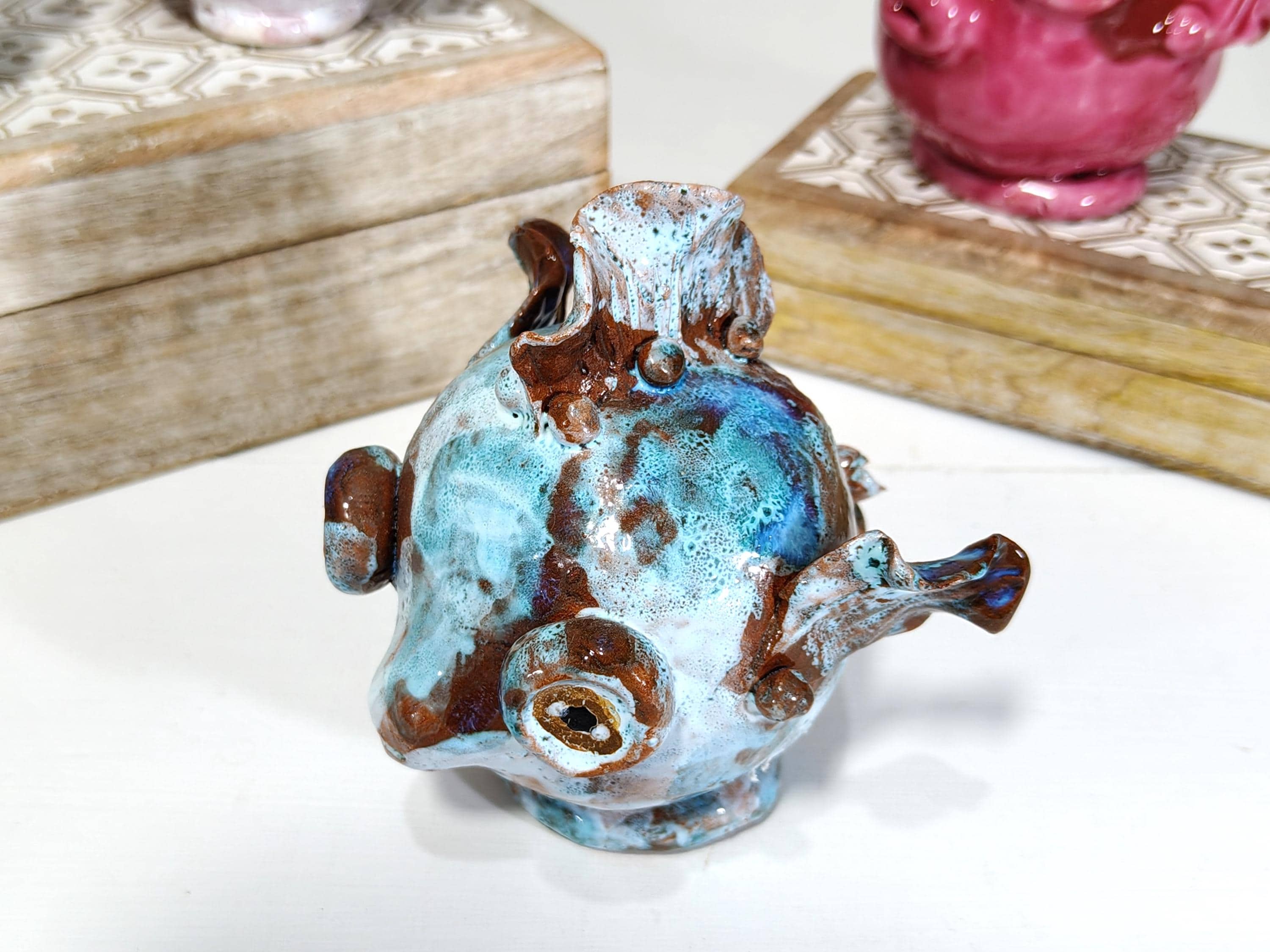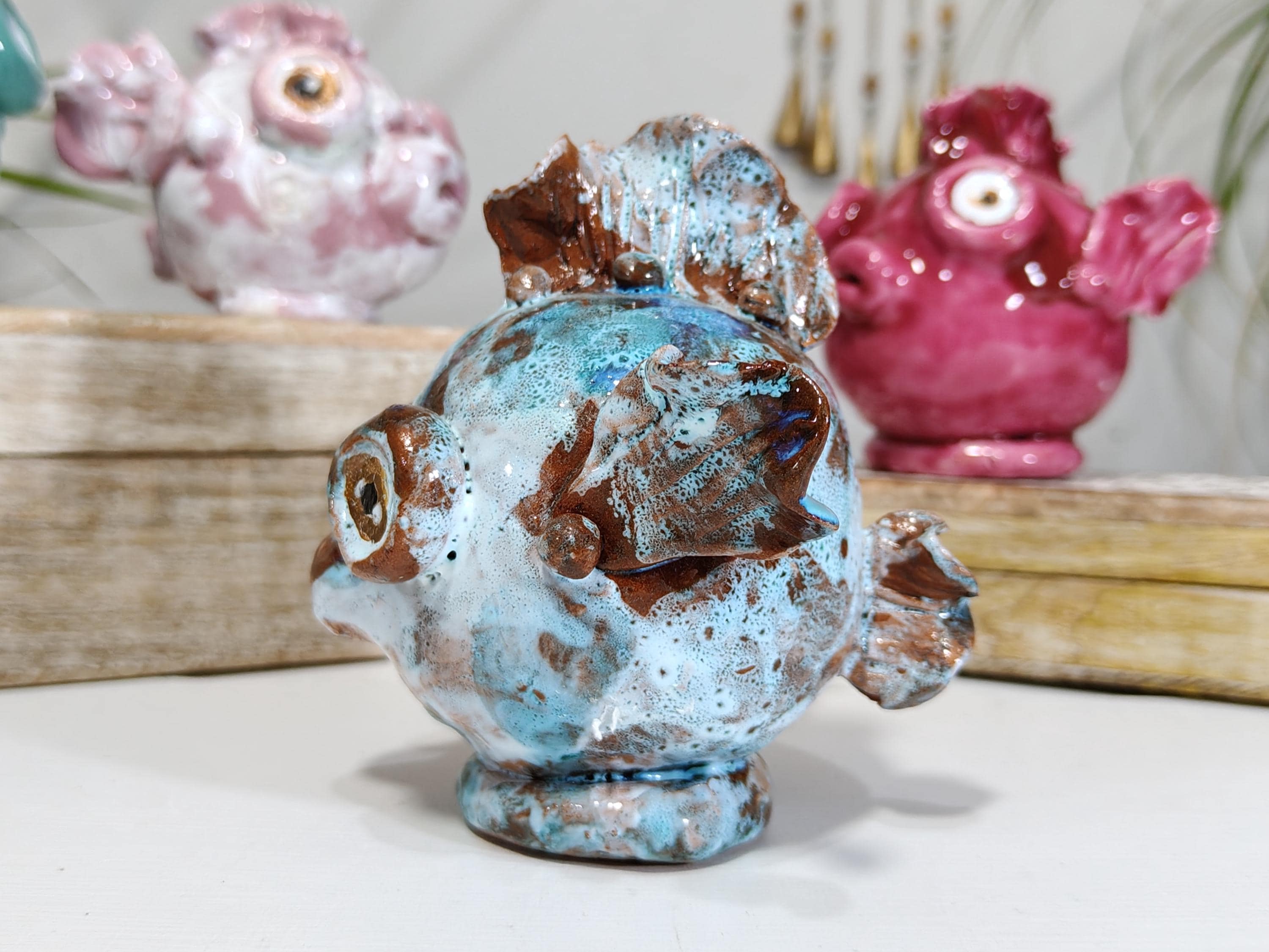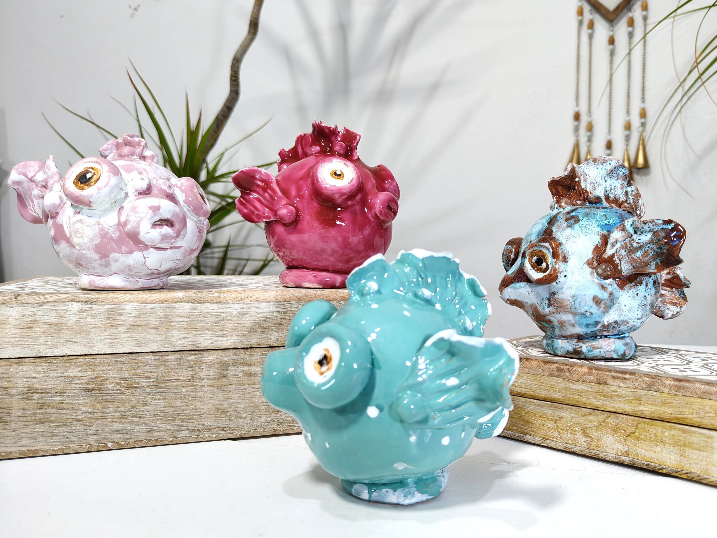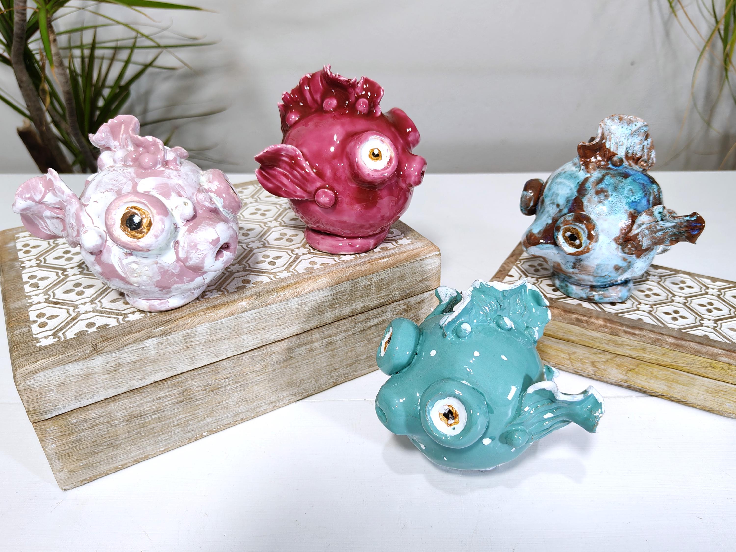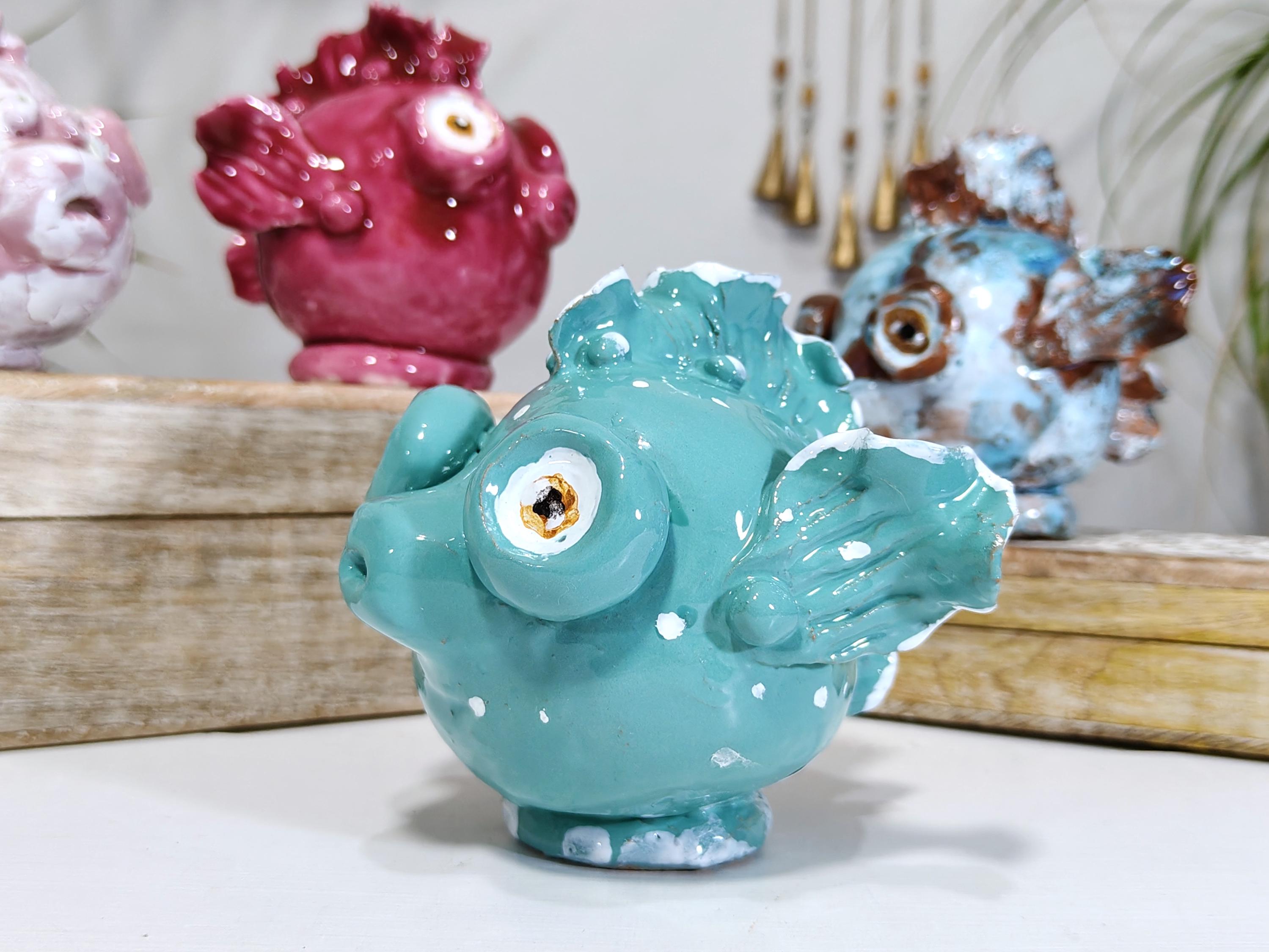 Sicilian ceramic baby frogfish, handcrafted fish, decorative fish, fish pottery, original fish, one-of-a-kind piece