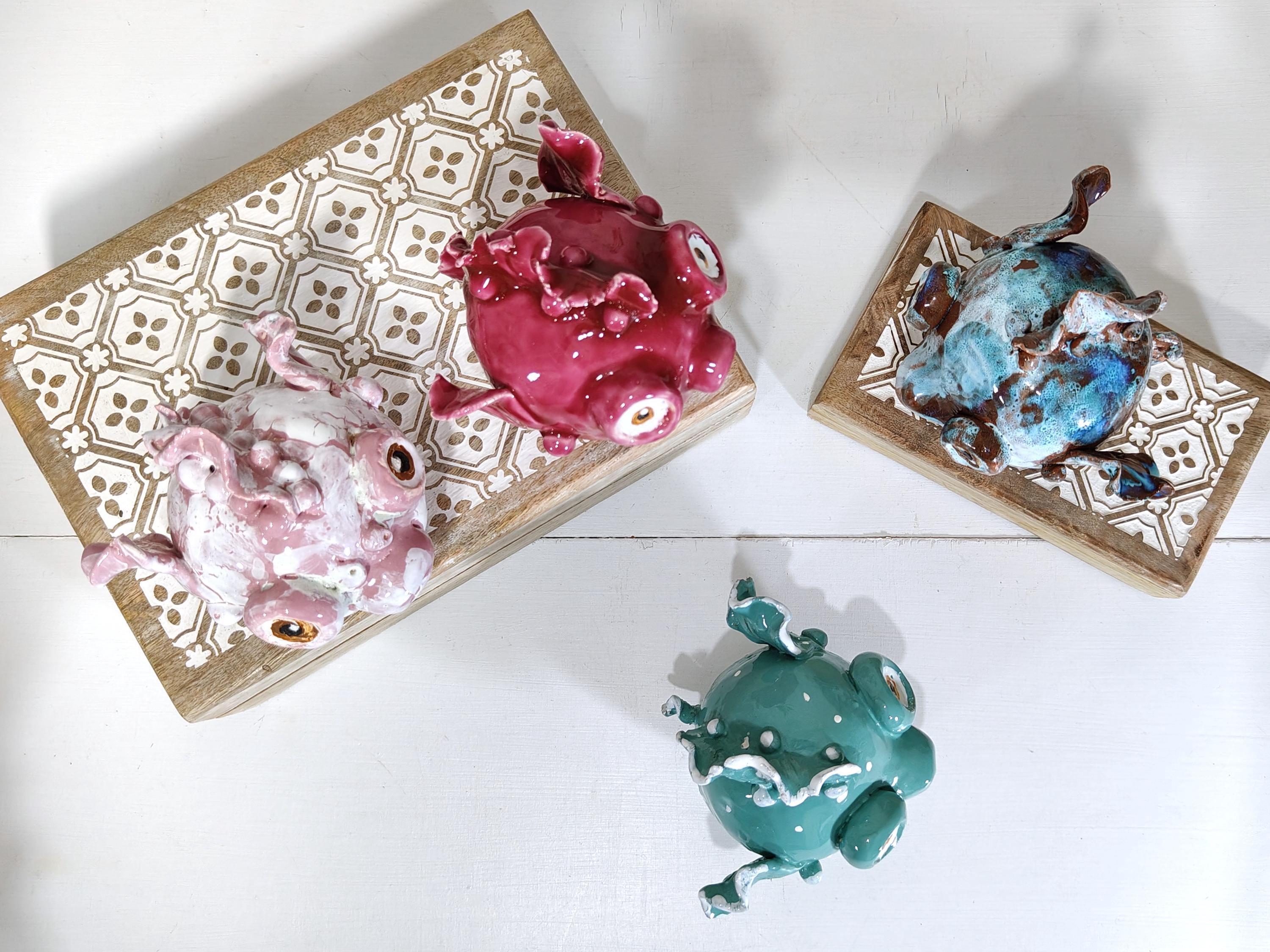 Sicilian ceramic baby frog fish, entirely handcrafted in shape and color.