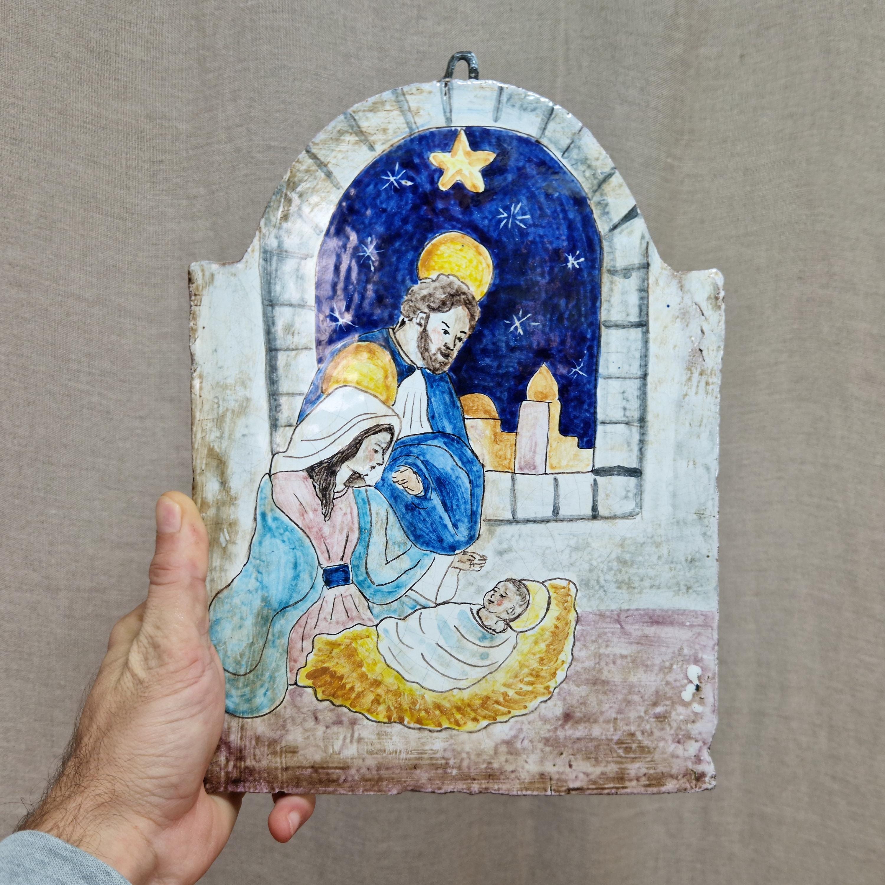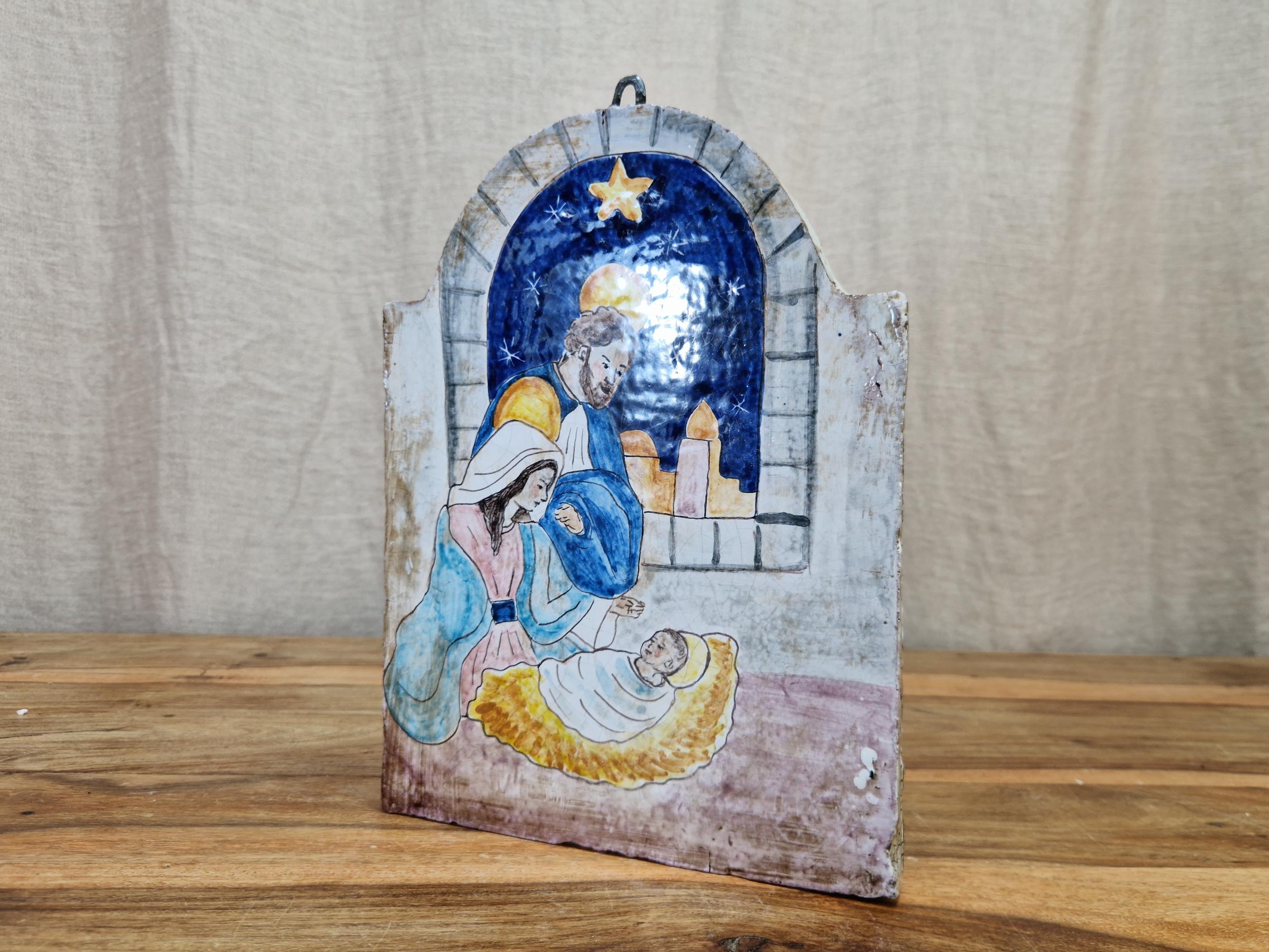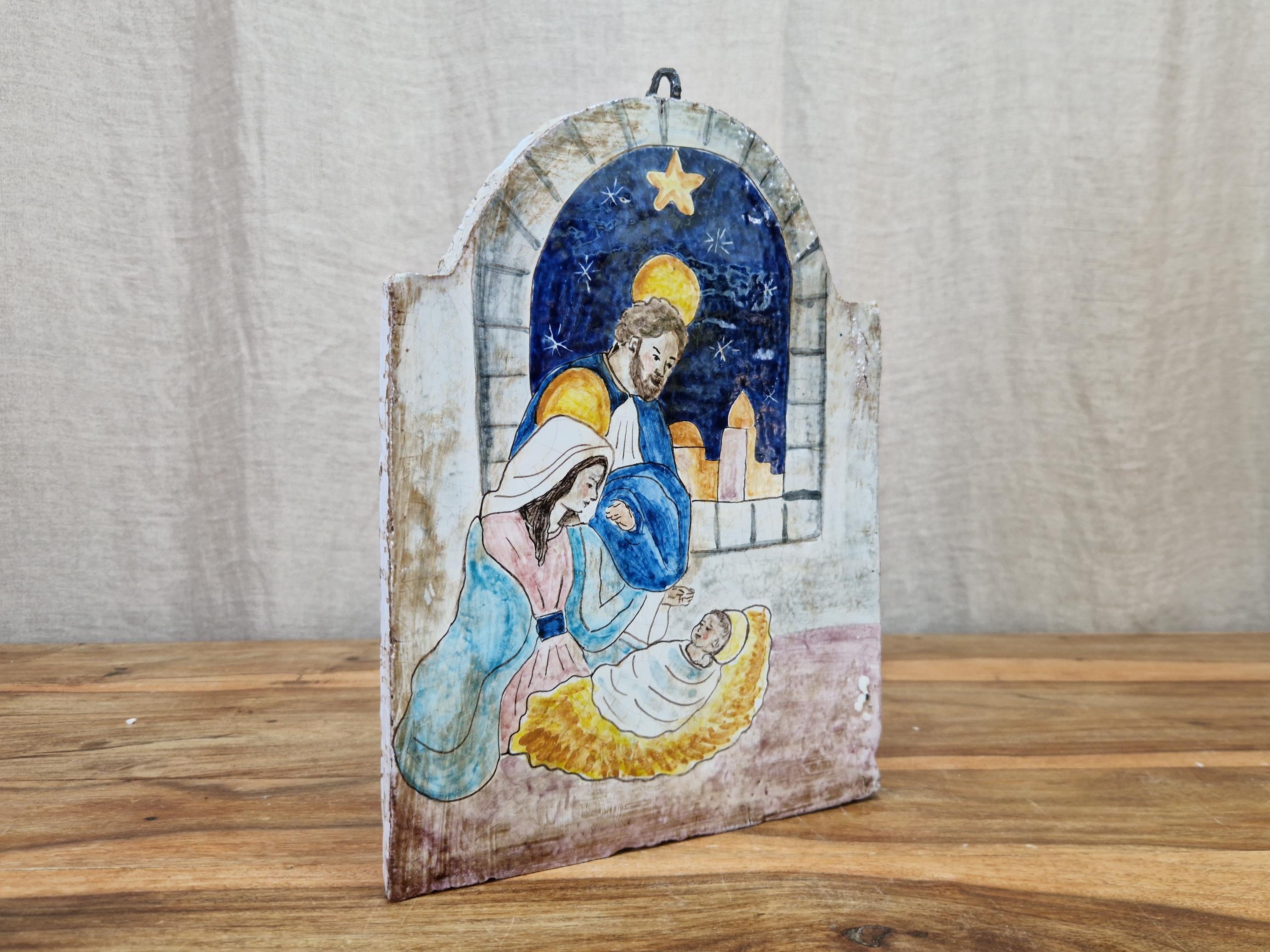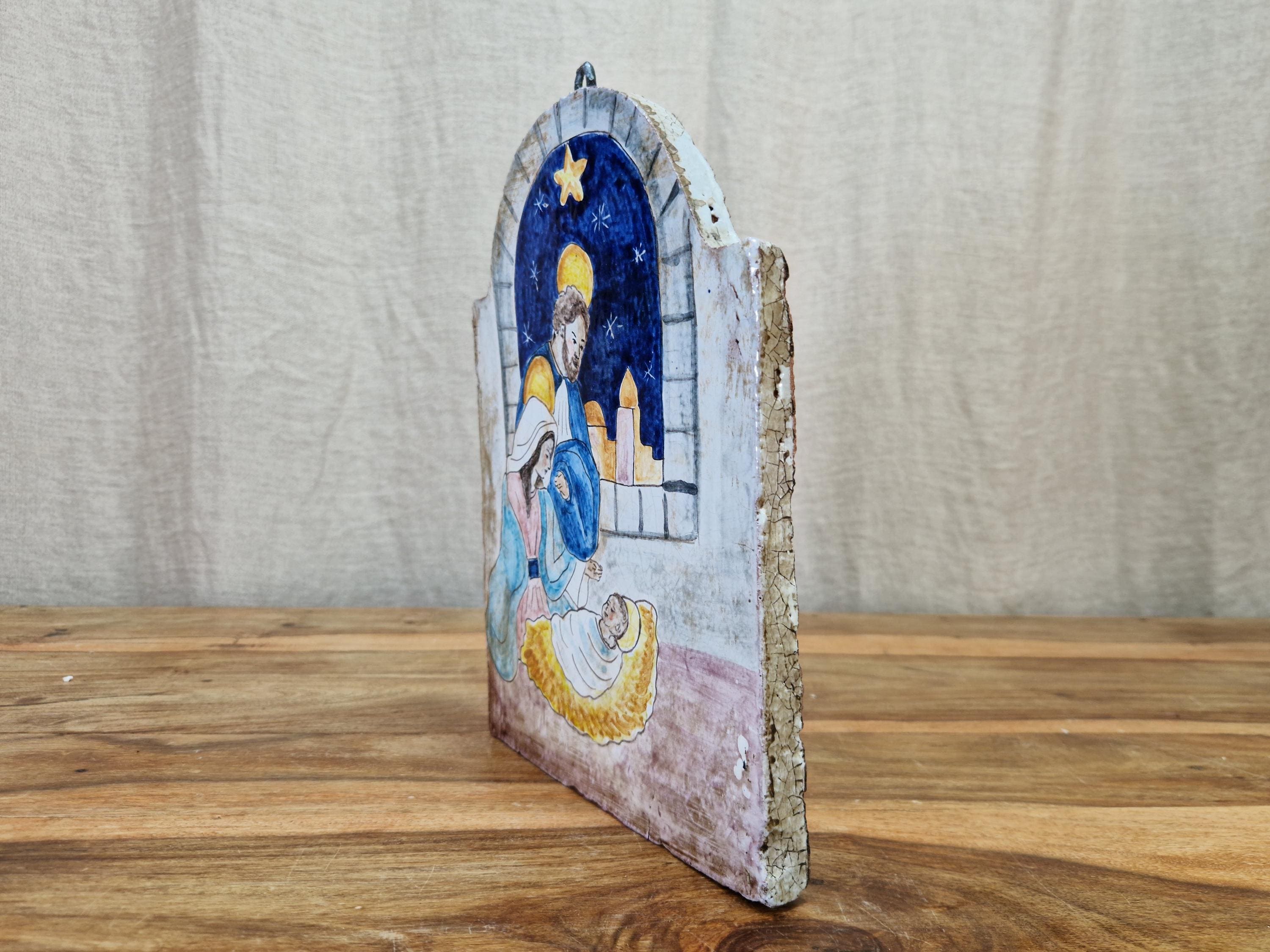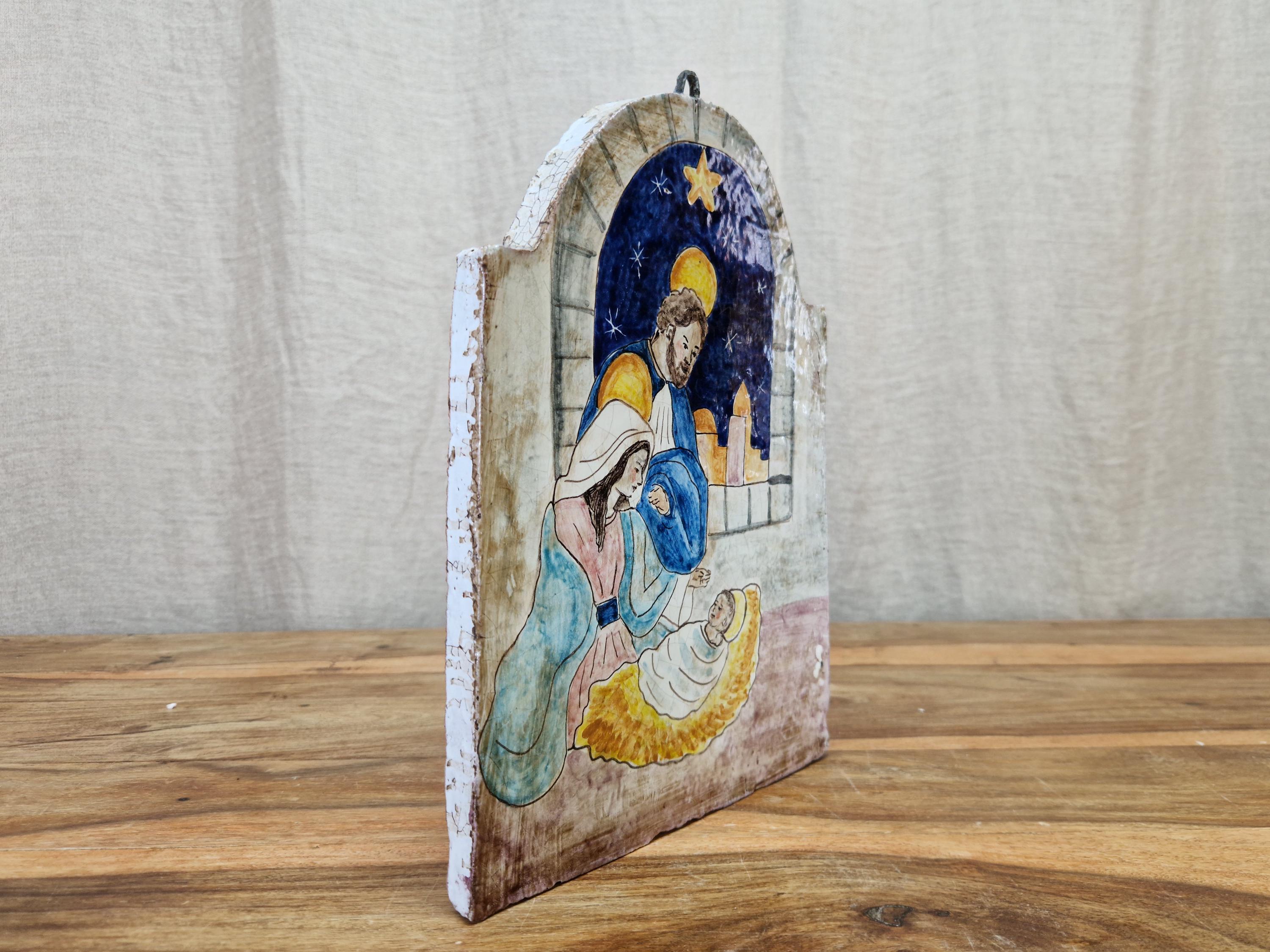 Handcrafted painted ceramic majolica depicting a Nativity scene - Holy Family.