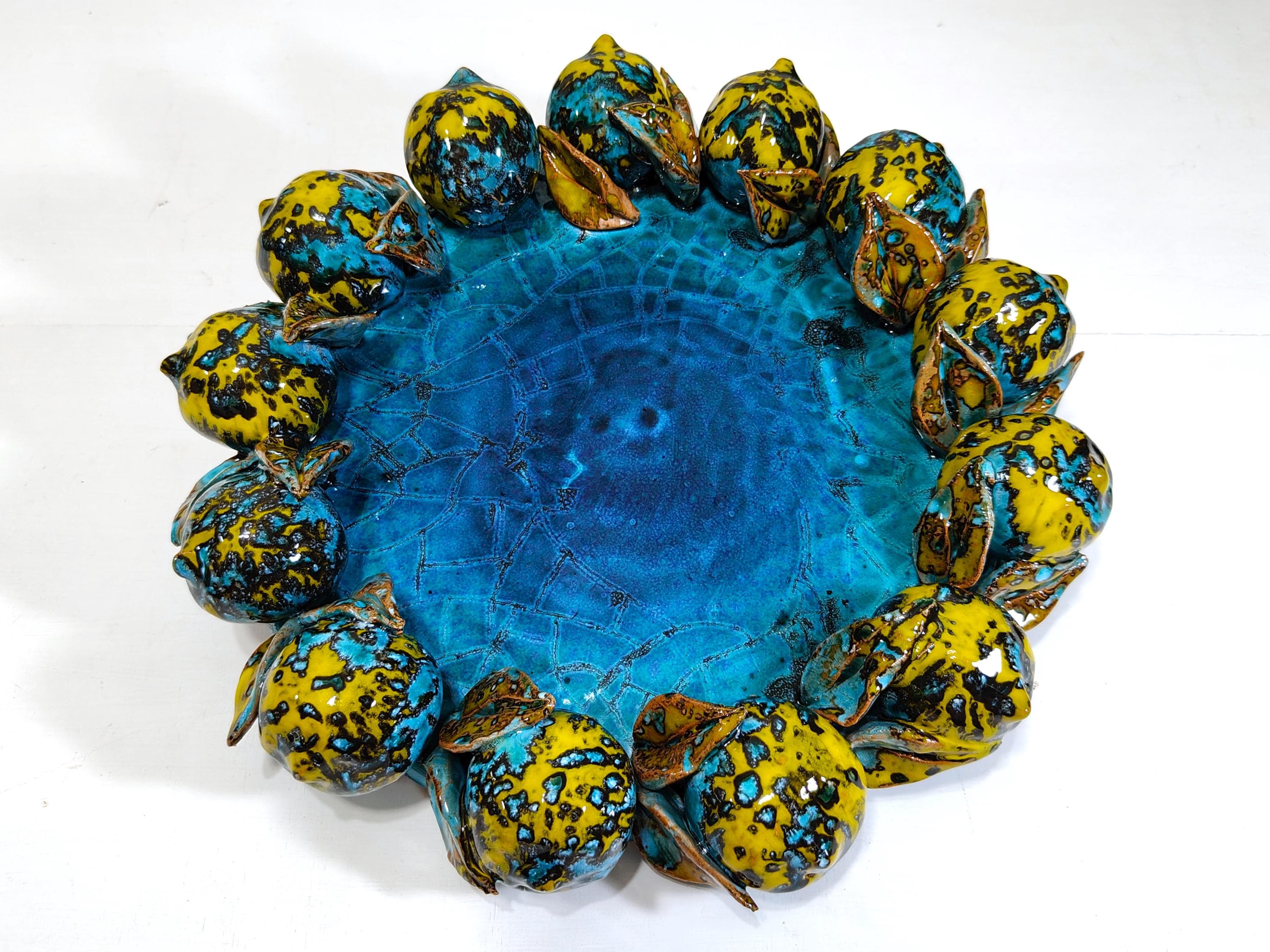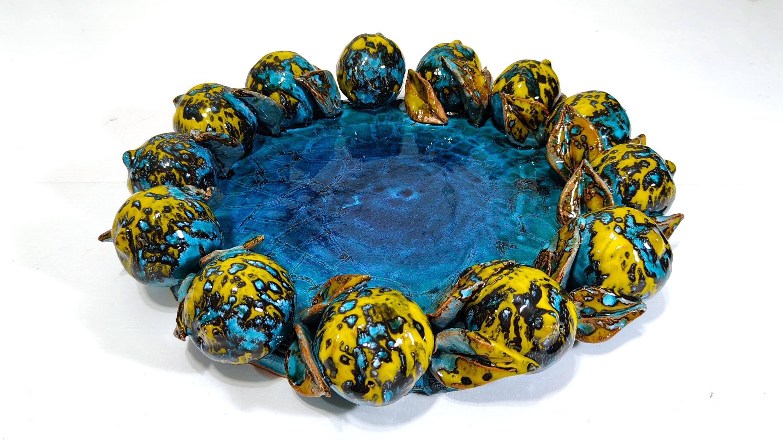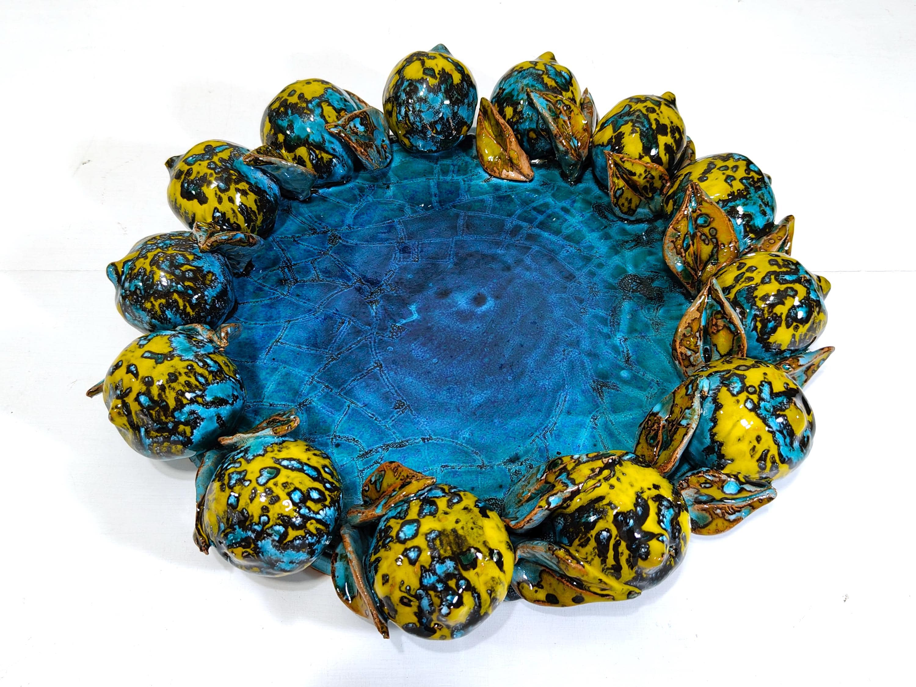It consists of a low, wide plate. Its most distinctive feature is the garland of three-dimensional lemons surrounding the center.