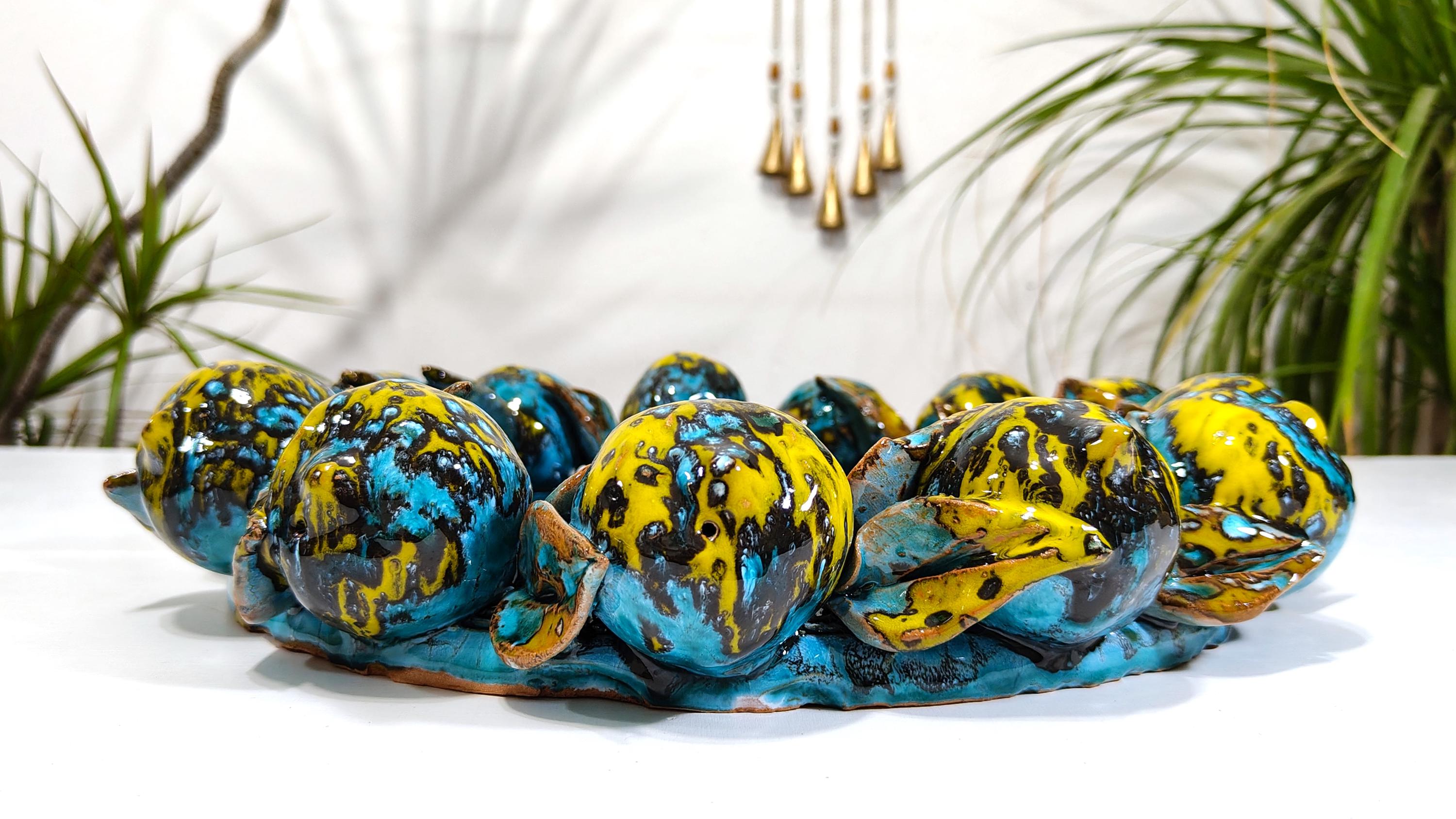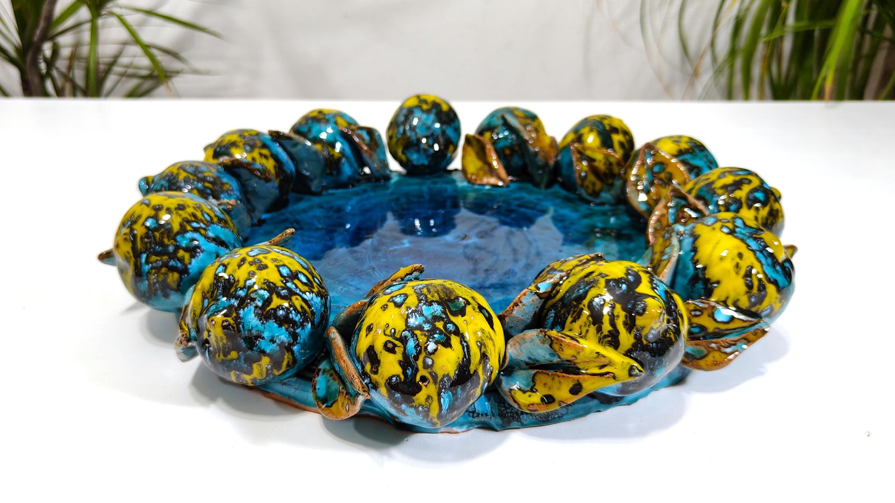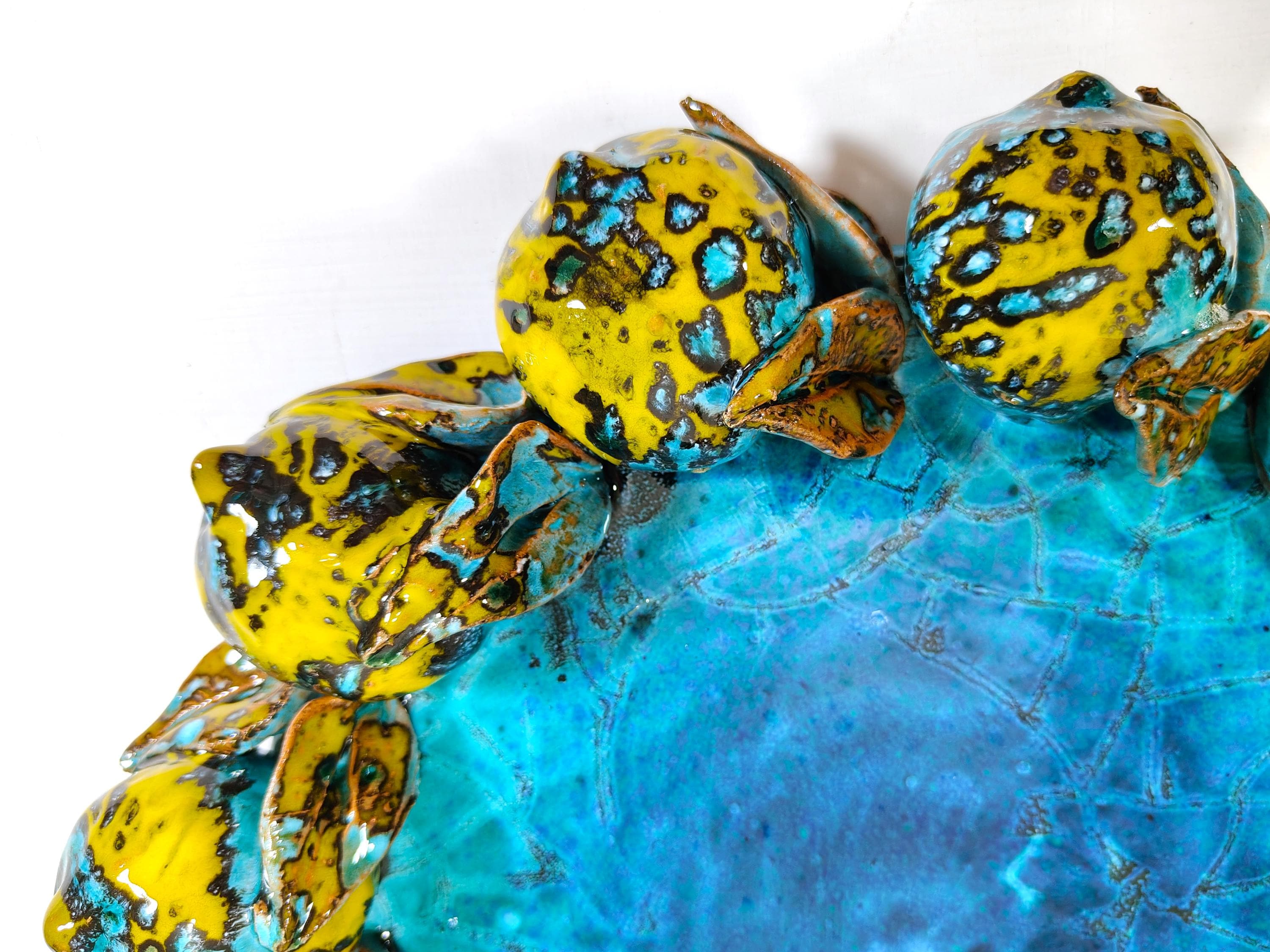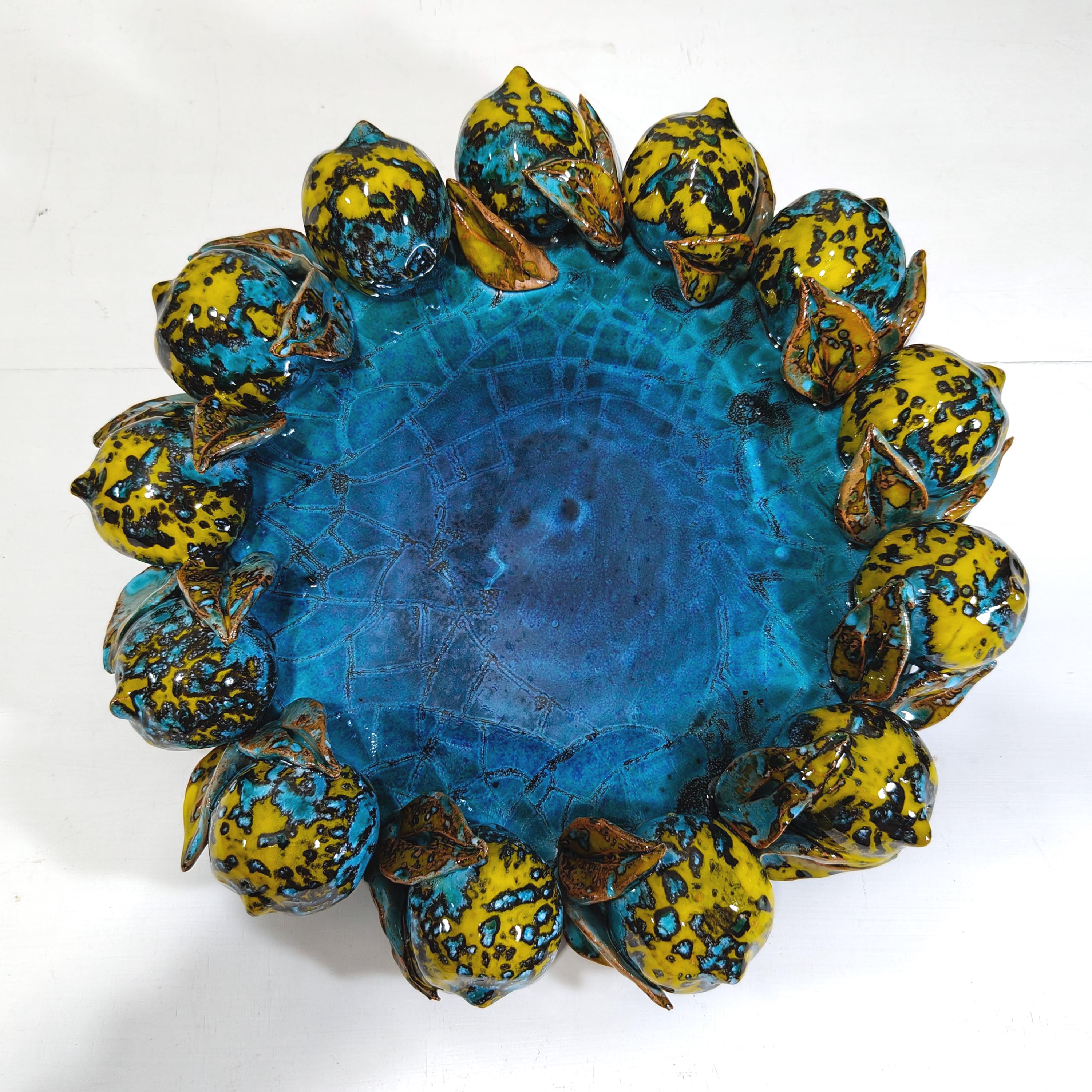 It consists of a low, wide plate. Its most distinctive feature is the garland of three-dimensional lemons surrounding the center.