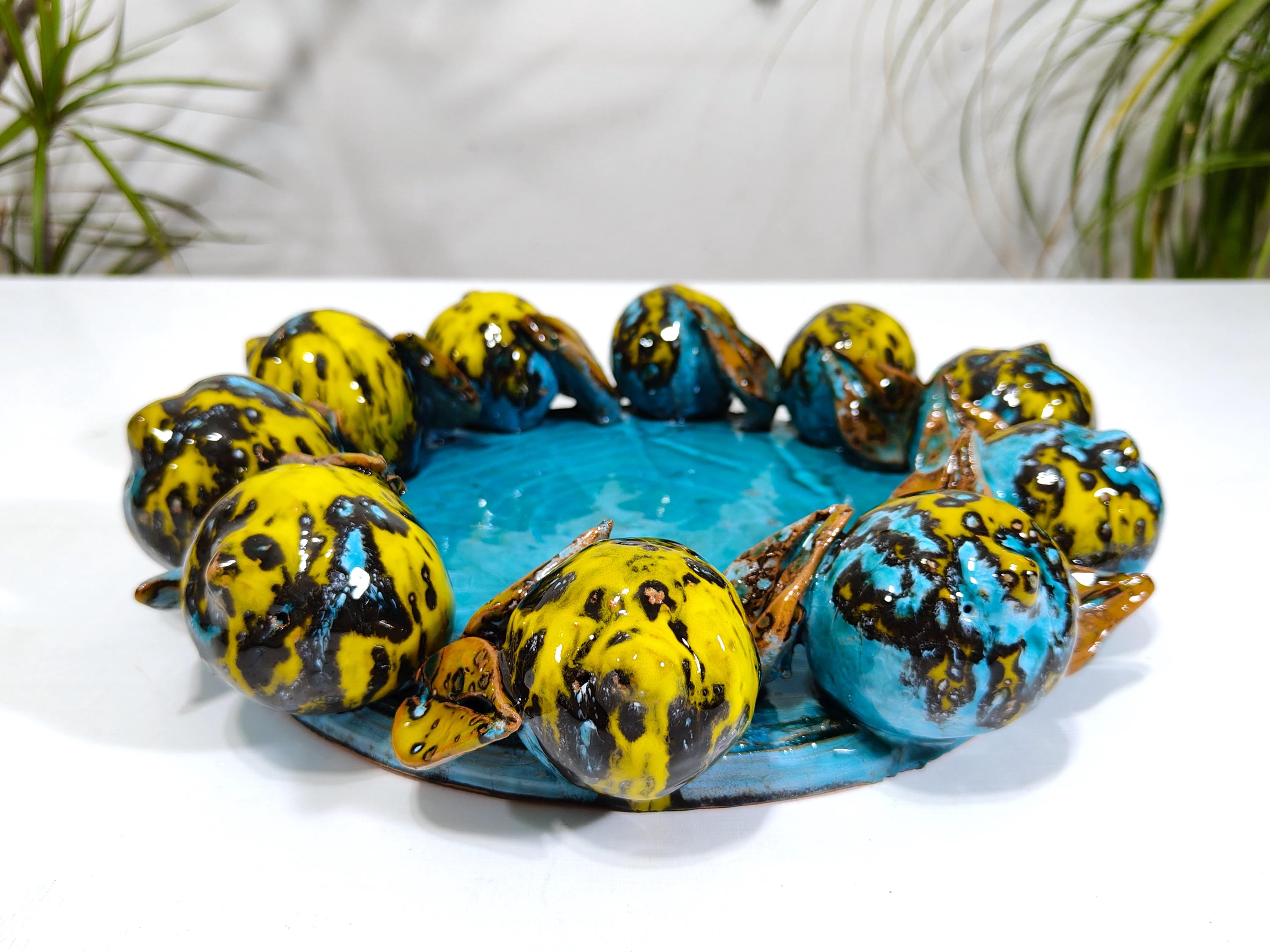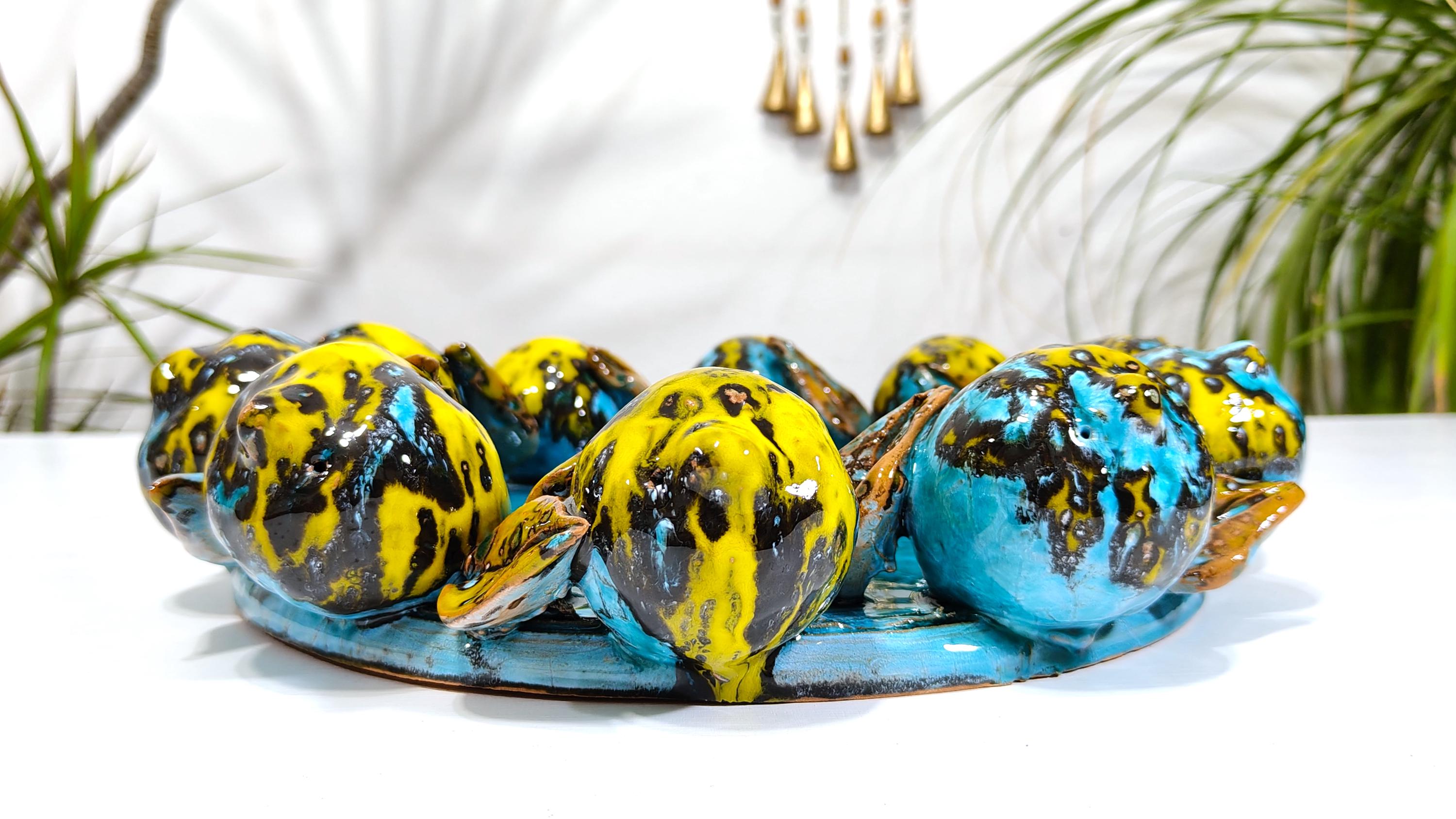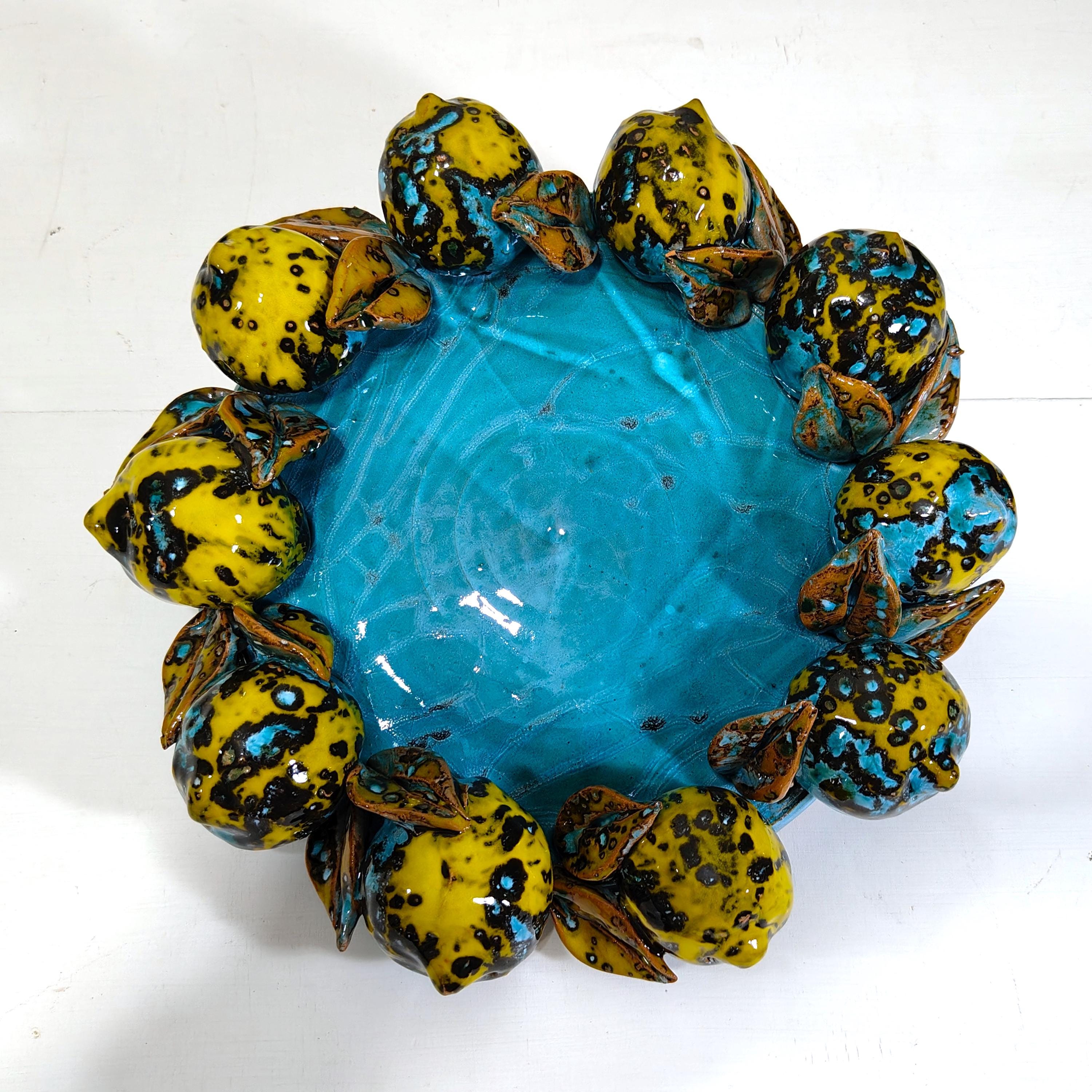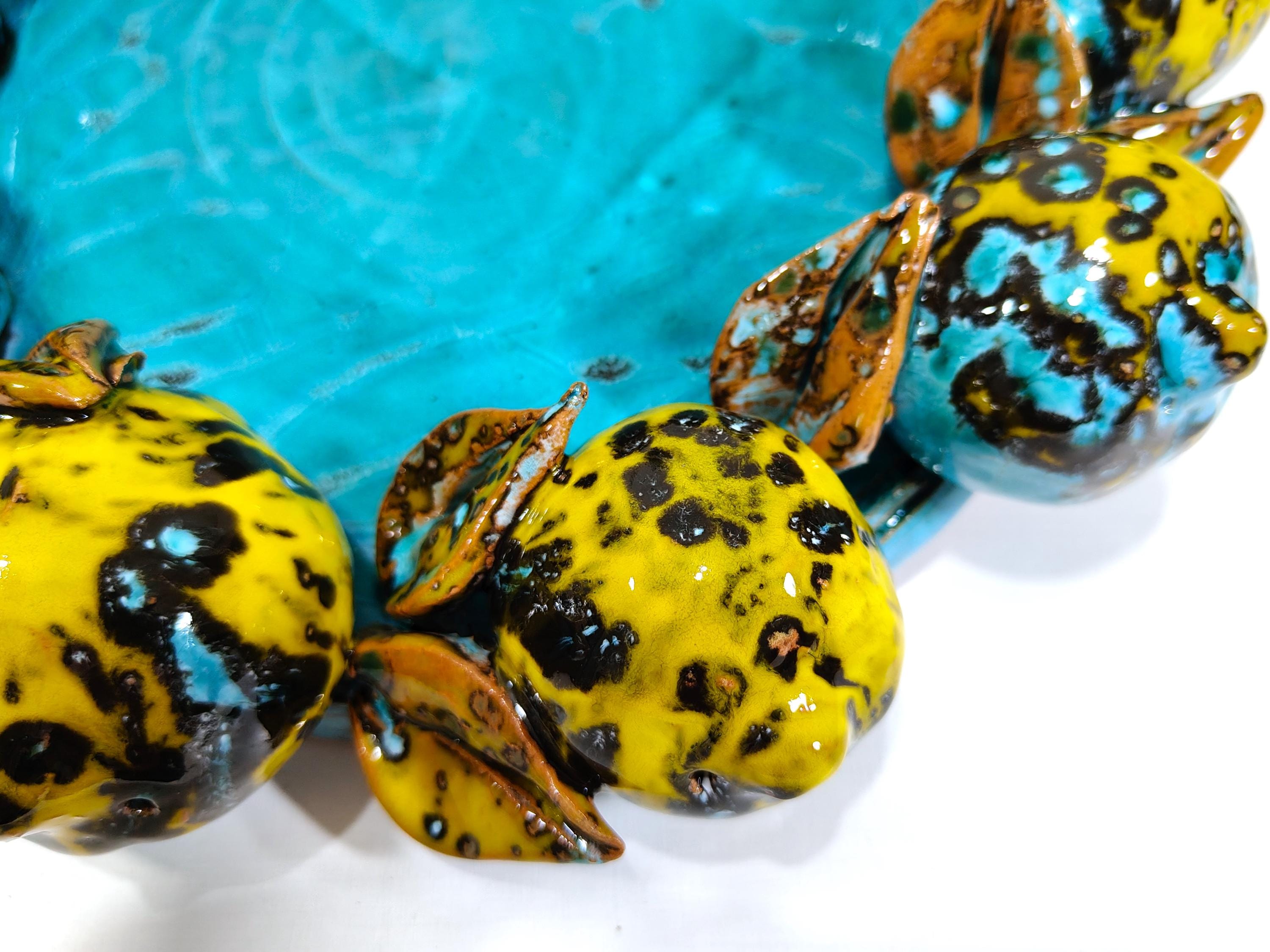 It consists of a low, wide plate. Its most distinctive feature is the garland of three-dimensional lemons surrounding the center.