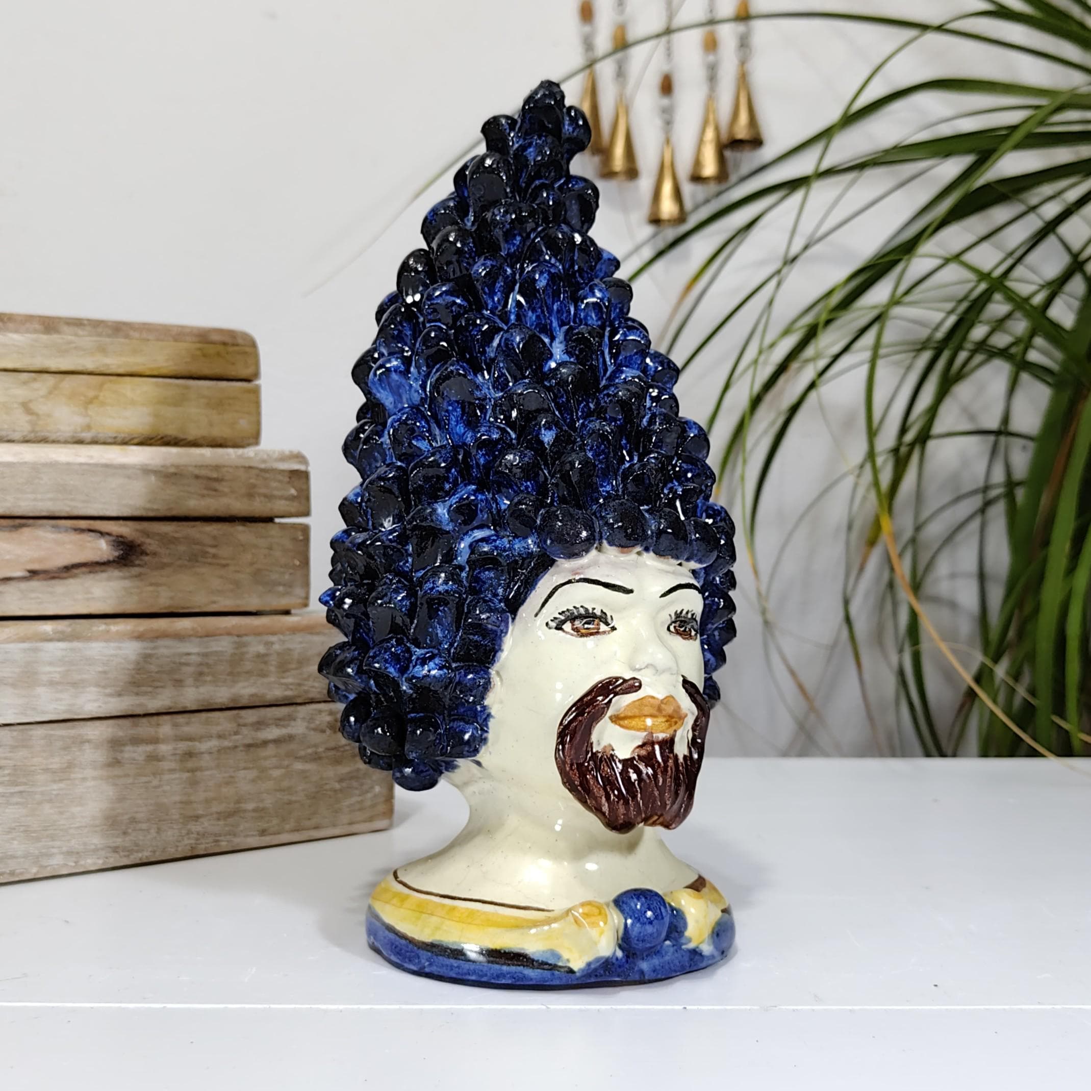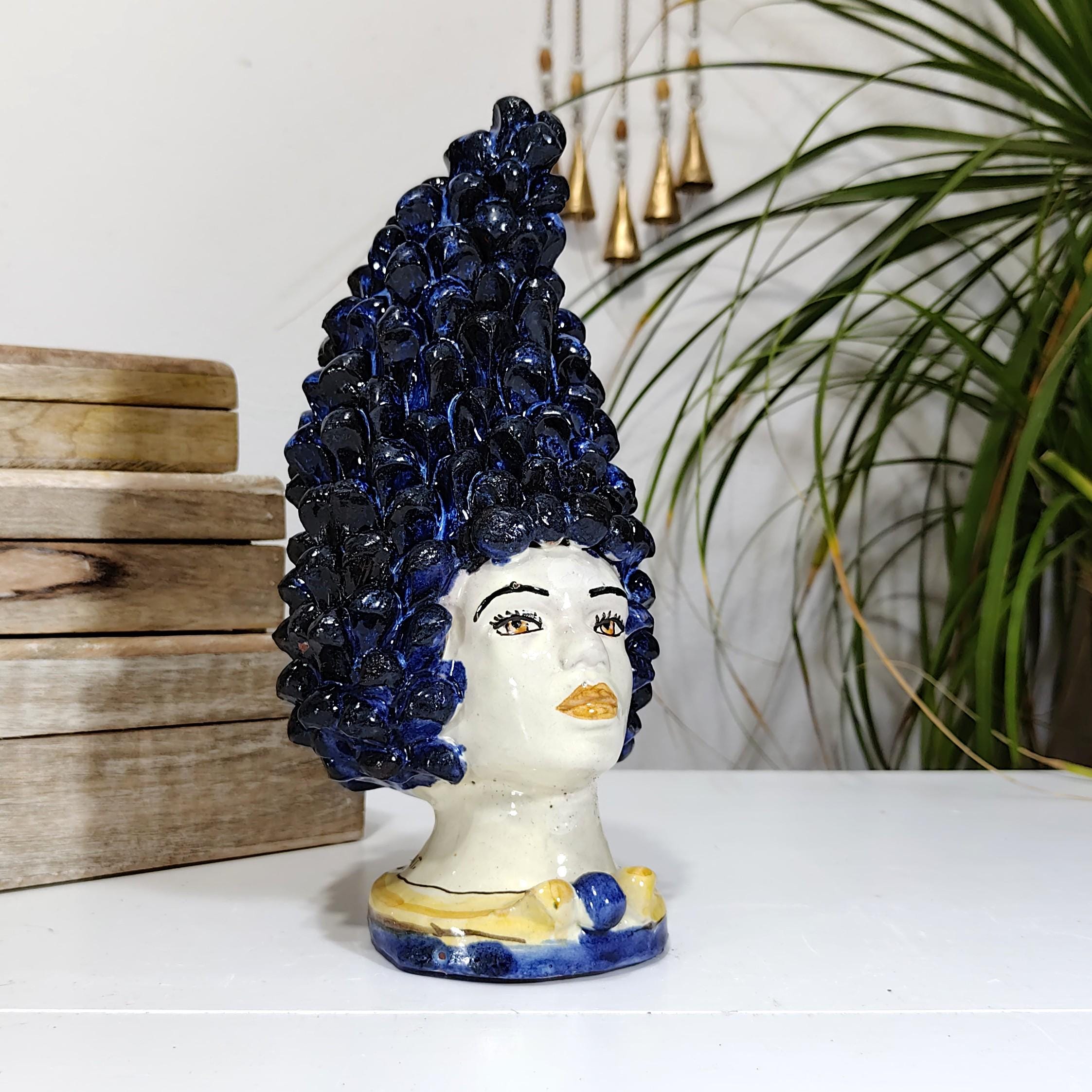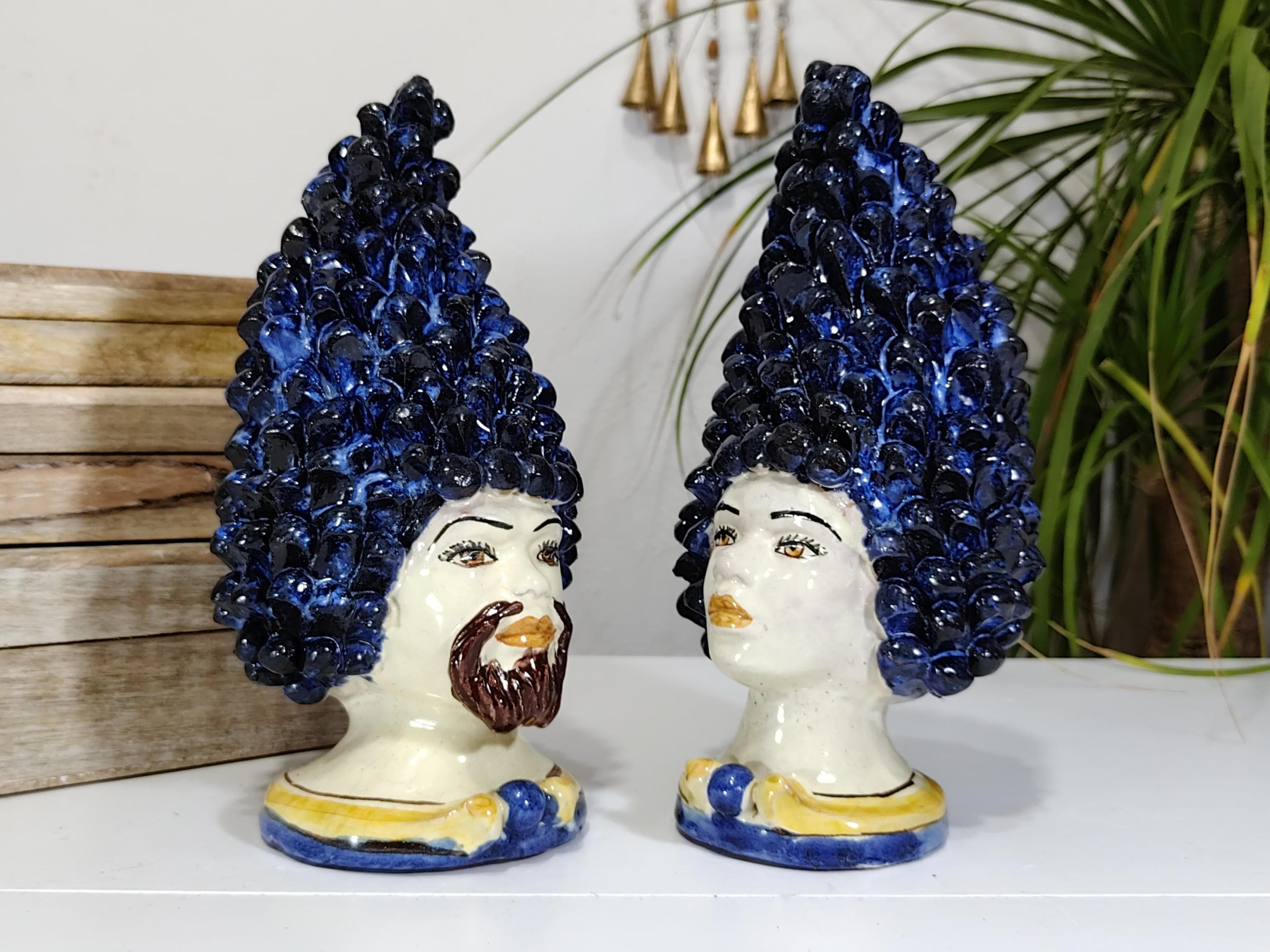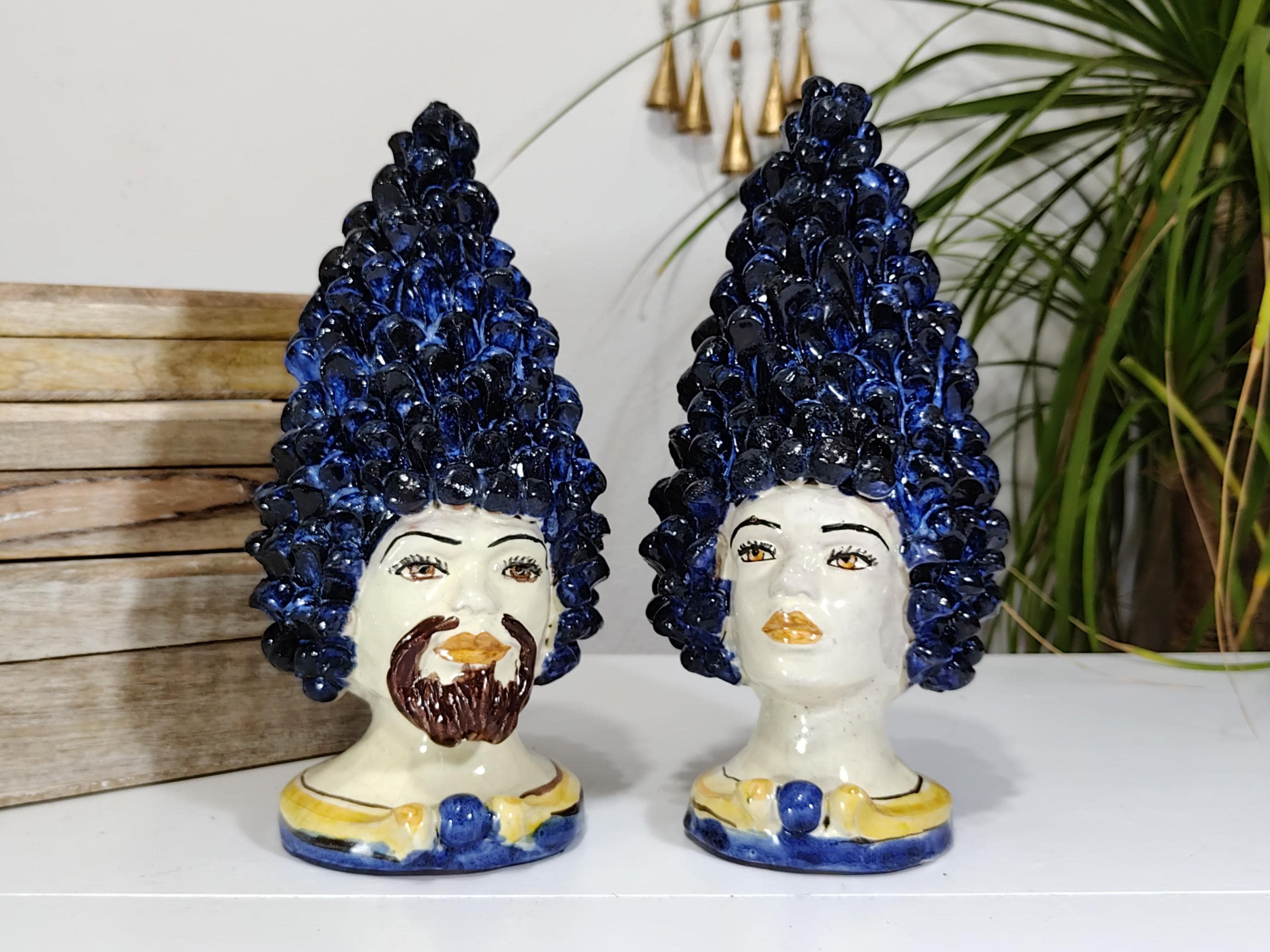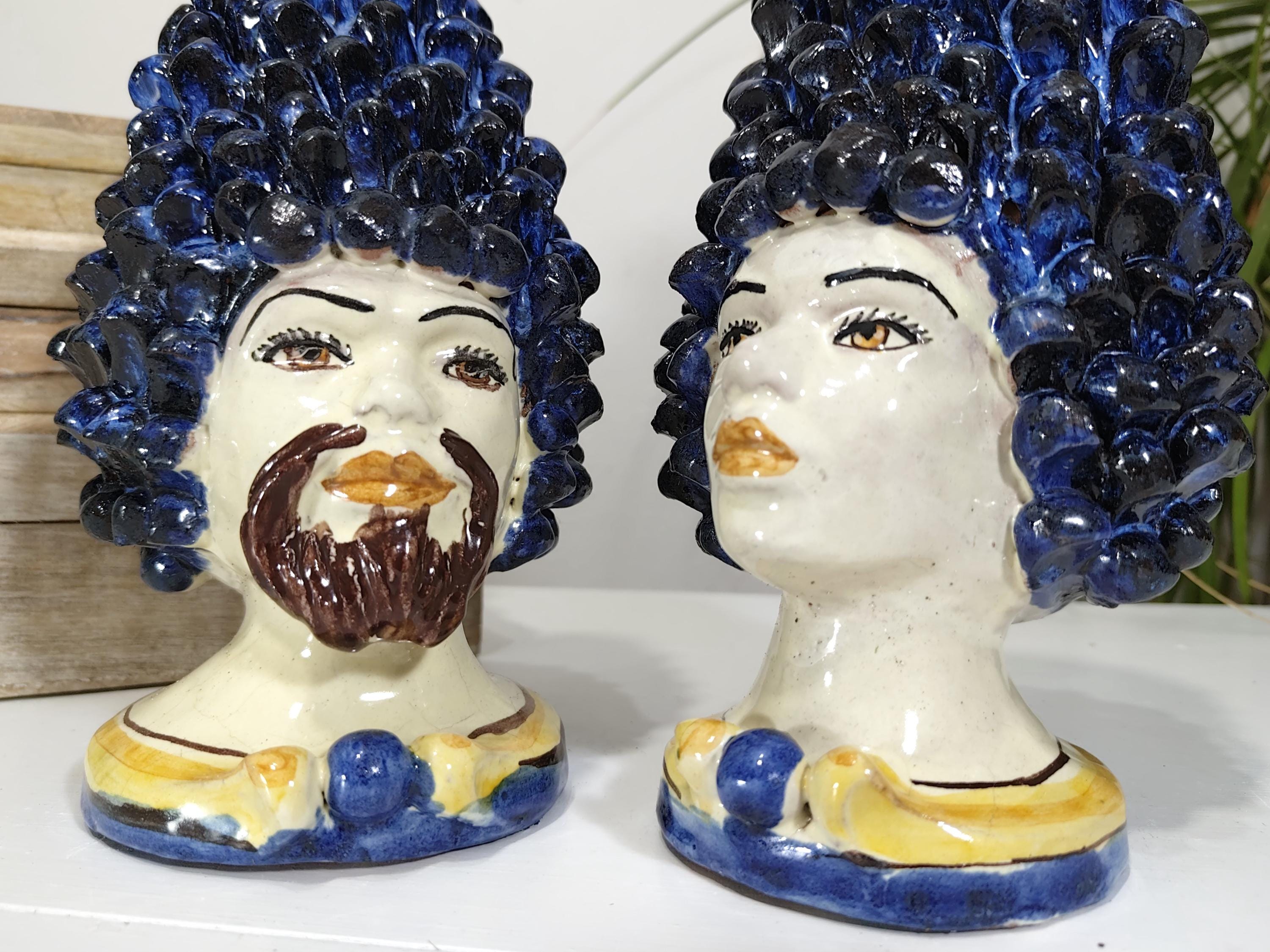 Sicilian anthropomorphic heads in Caltagirone ceramics, entirely hand-crafted in shape and decoration, H27 L14