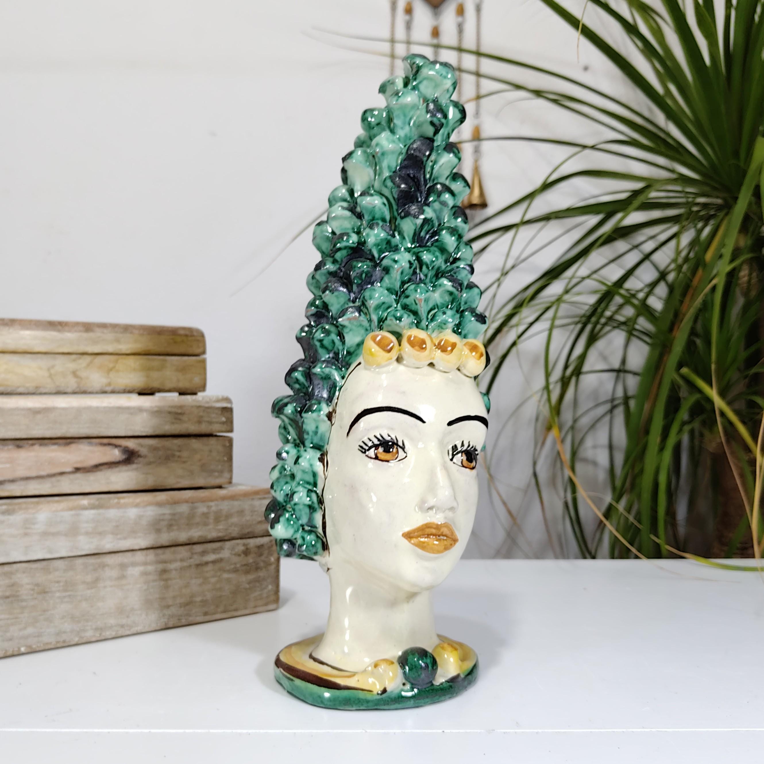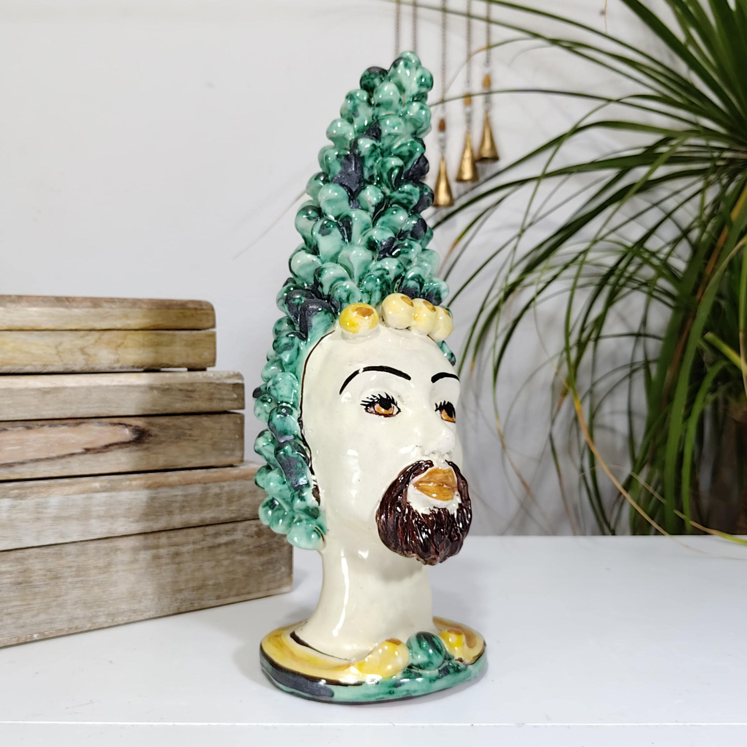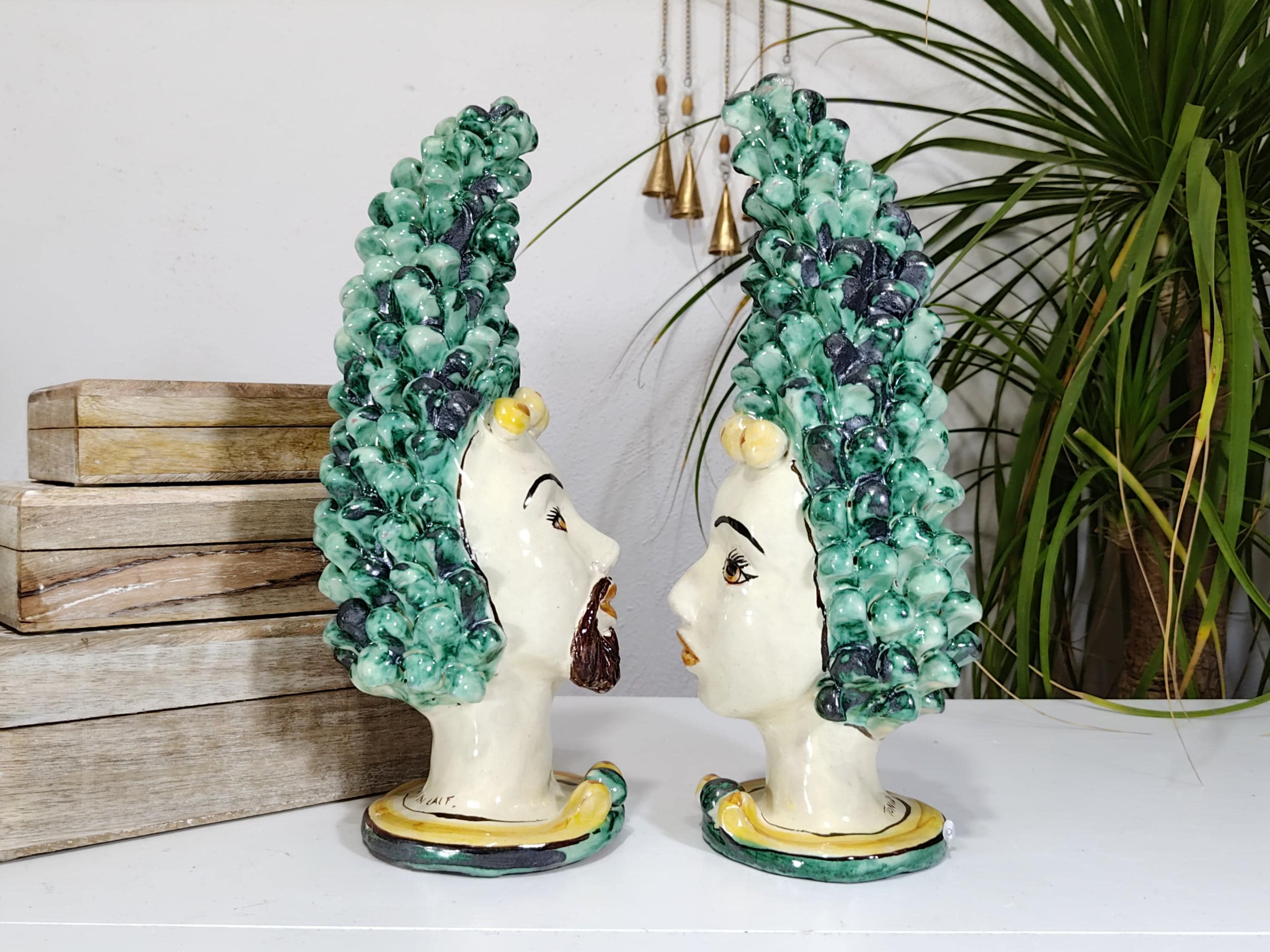 Sicilian anthropomorphic heads in Caltagirone ceramics, entirely hand-crafted in shape and decoration.