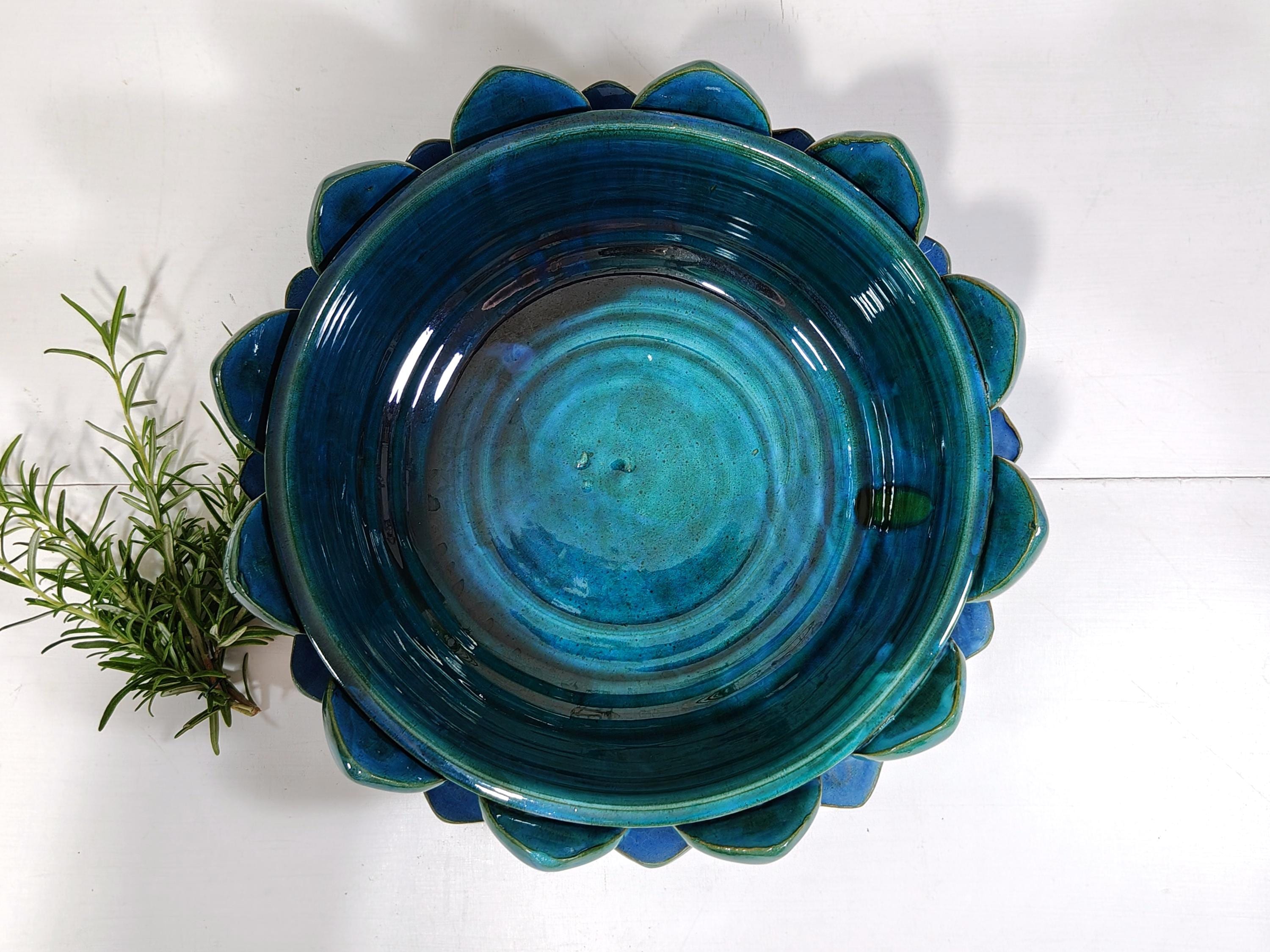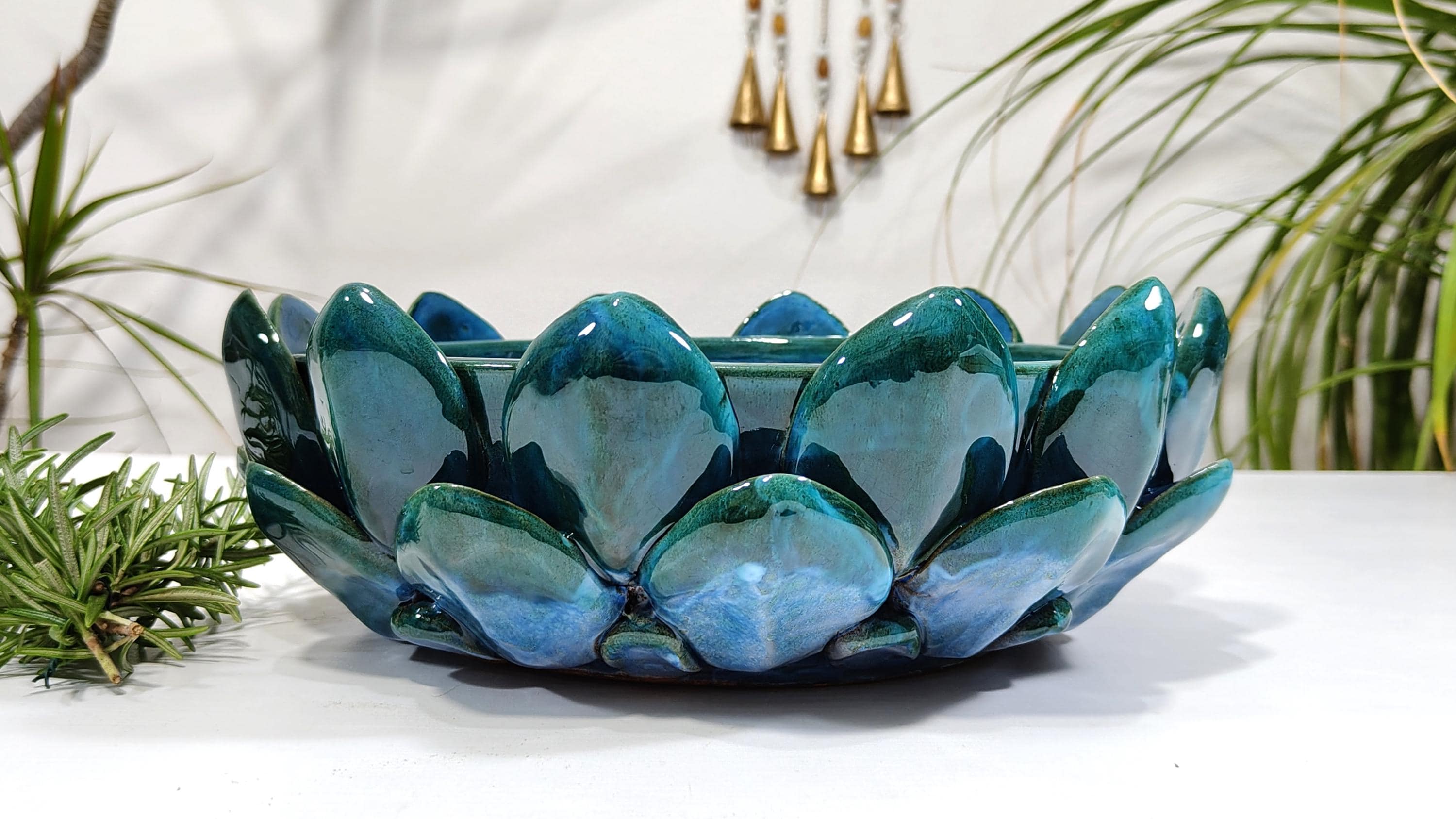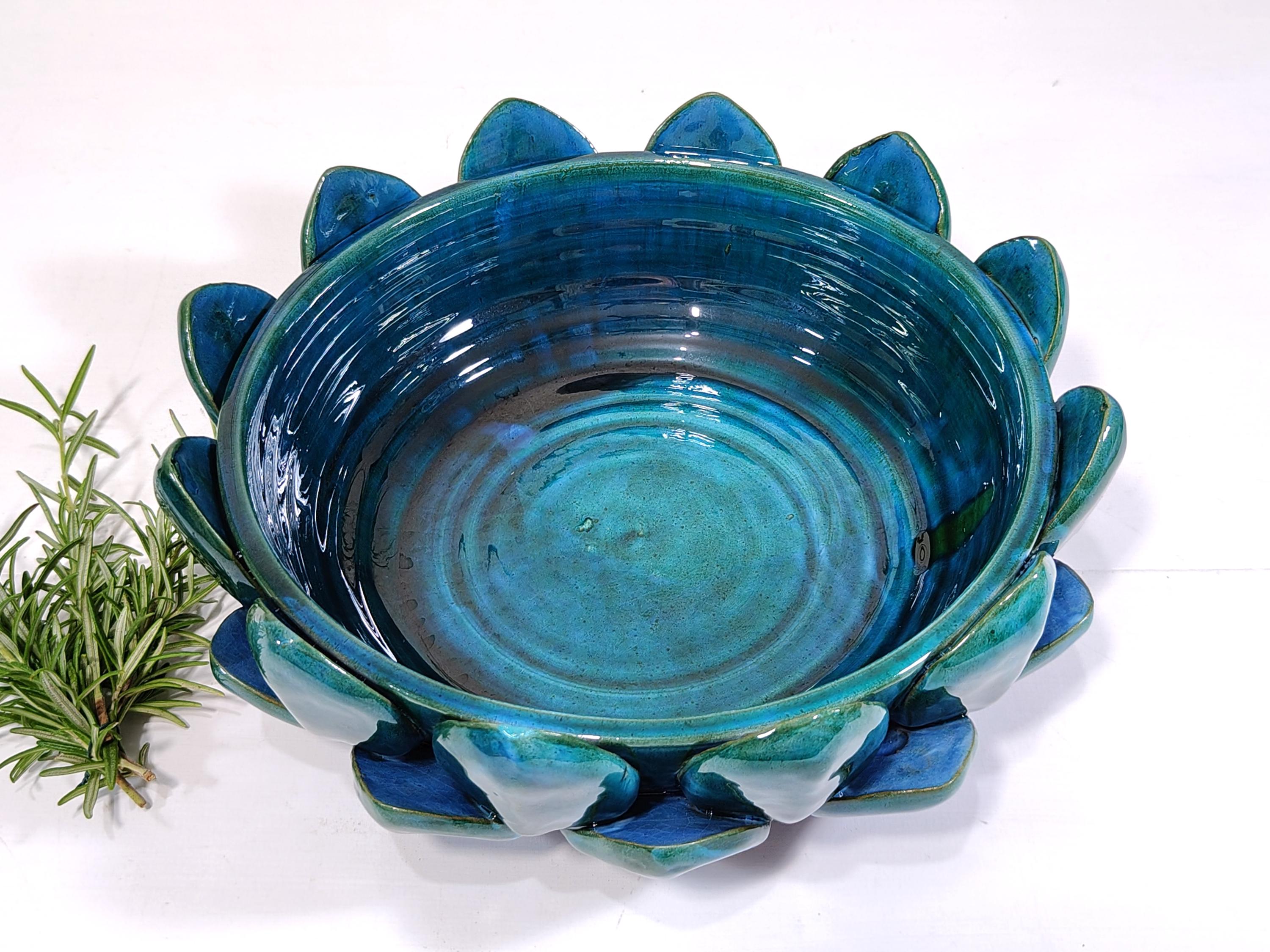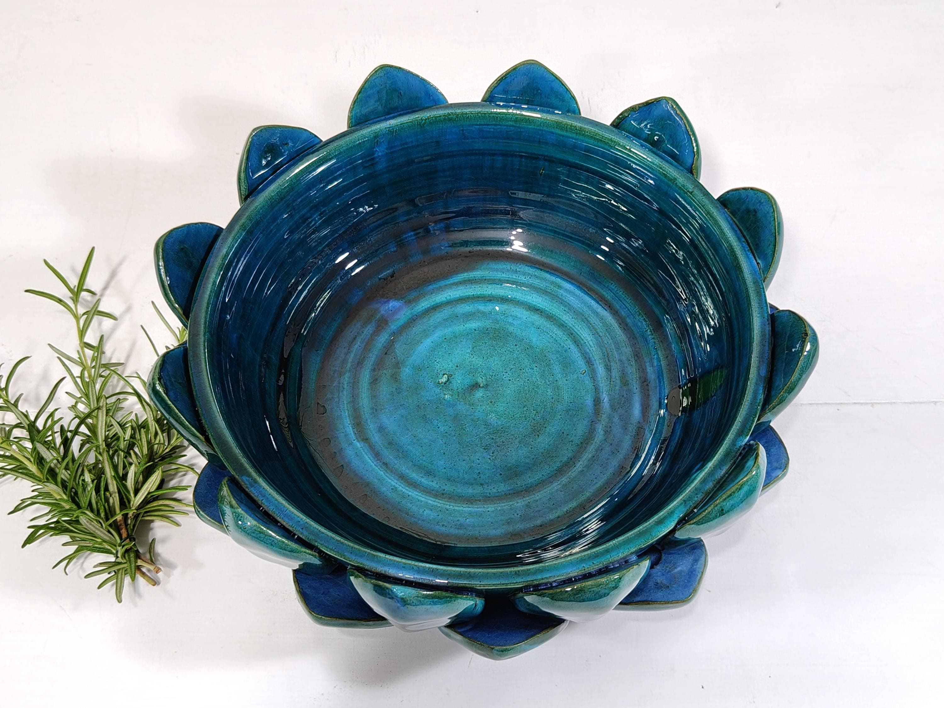 Artichoke leaf centerpiece, Sicilian ceramics from Caltagirone.