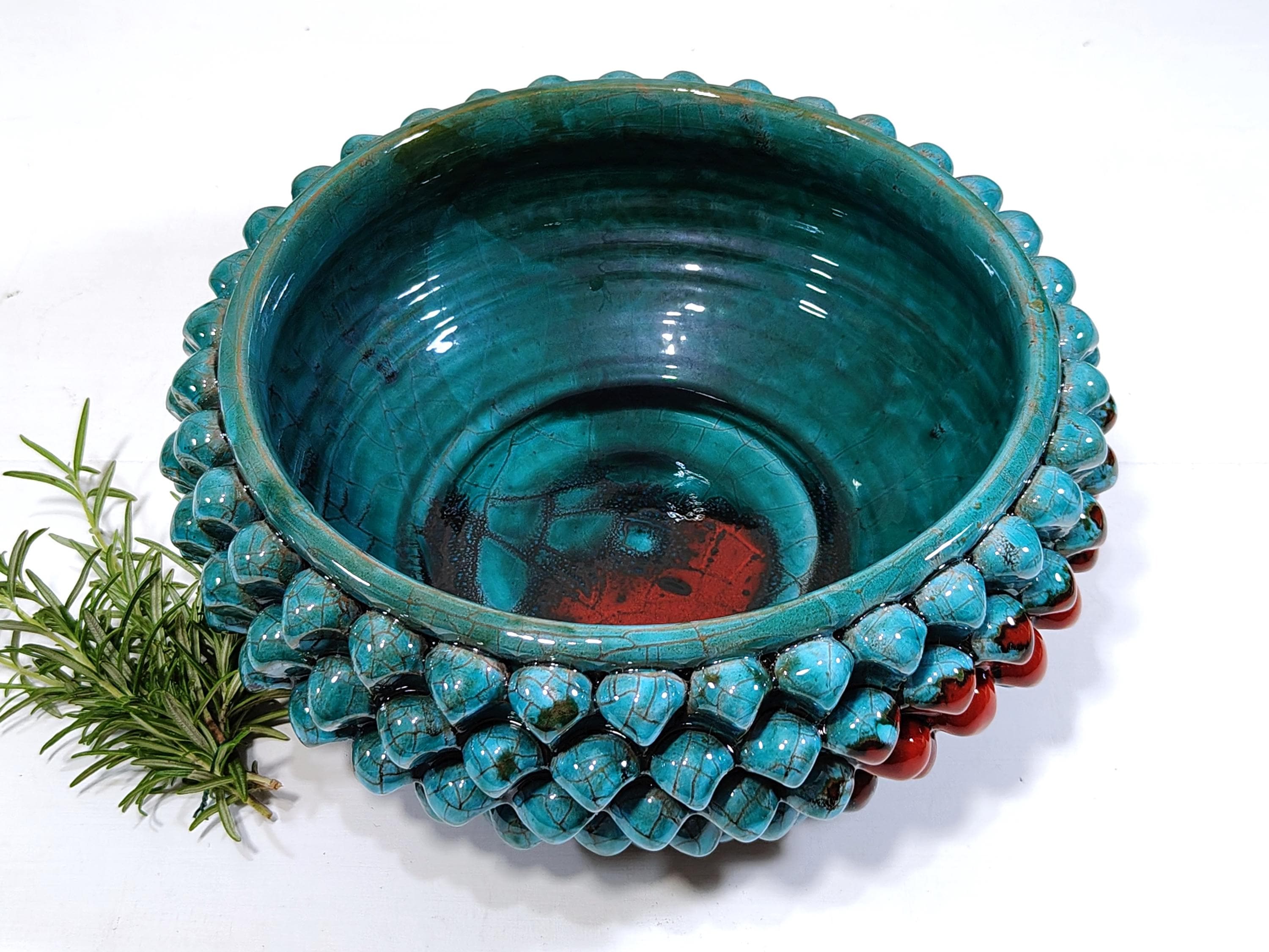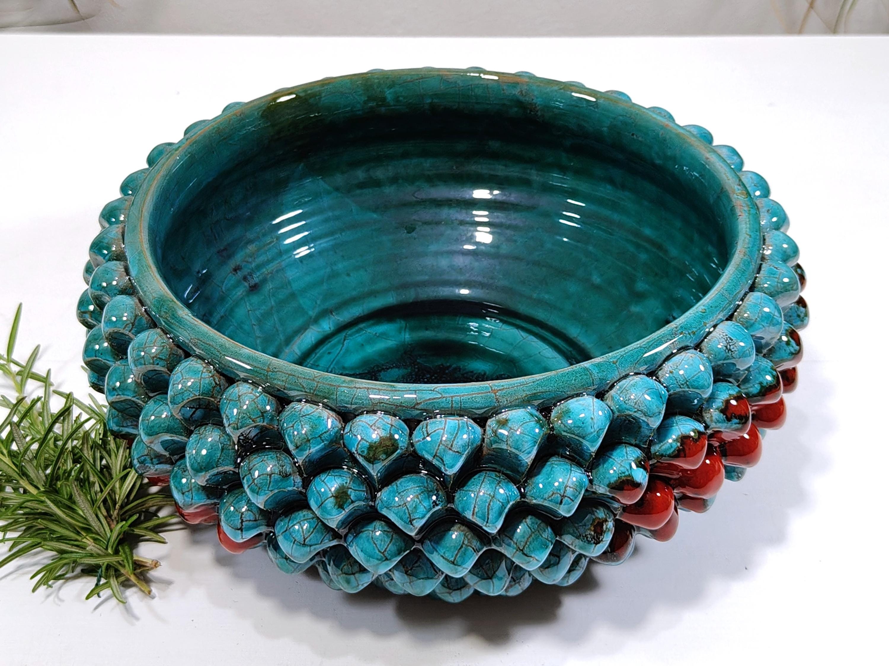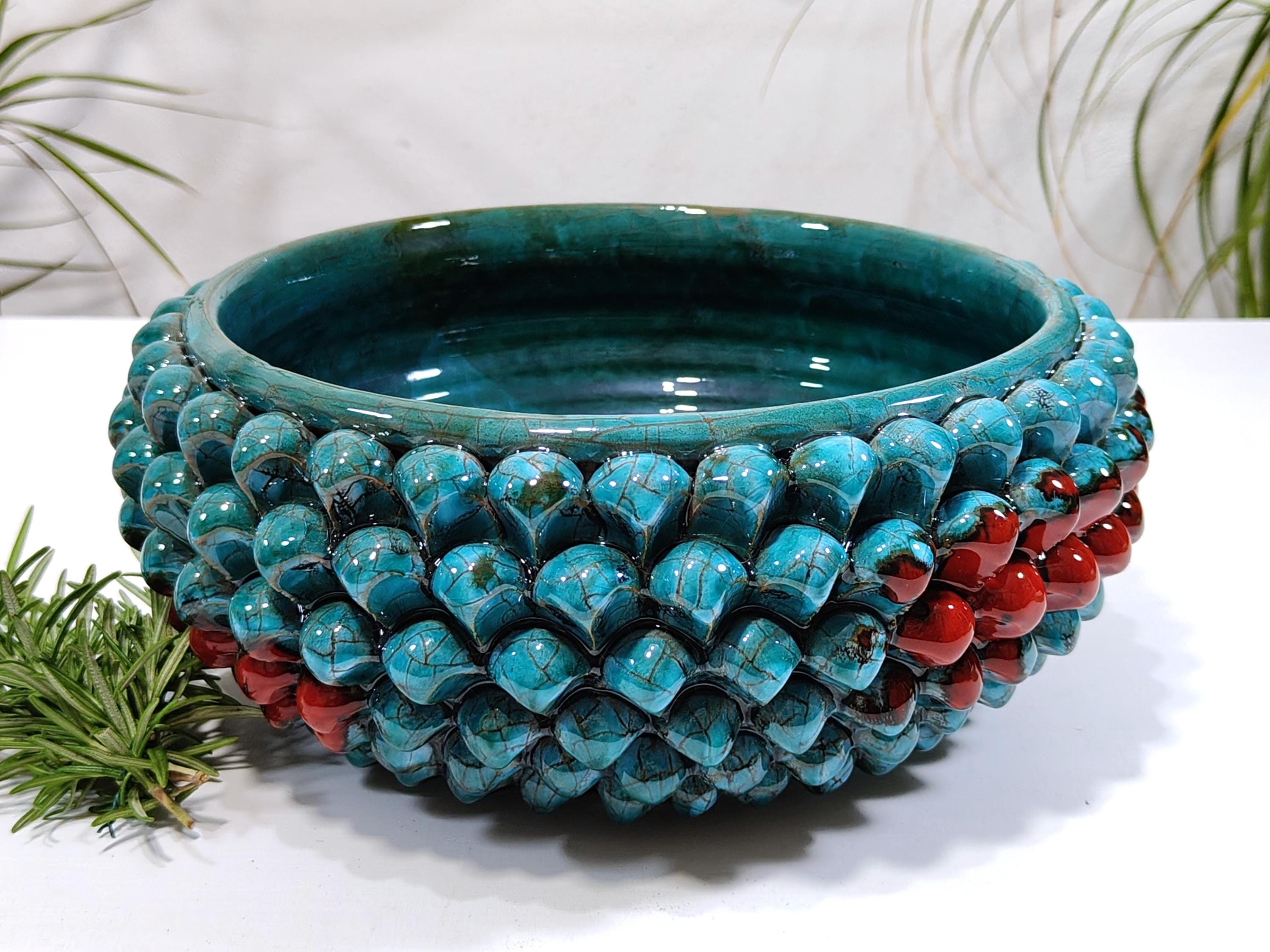 Half Pine Cone Centerpiece Sicilian Ceramic Caltagirone Artisan