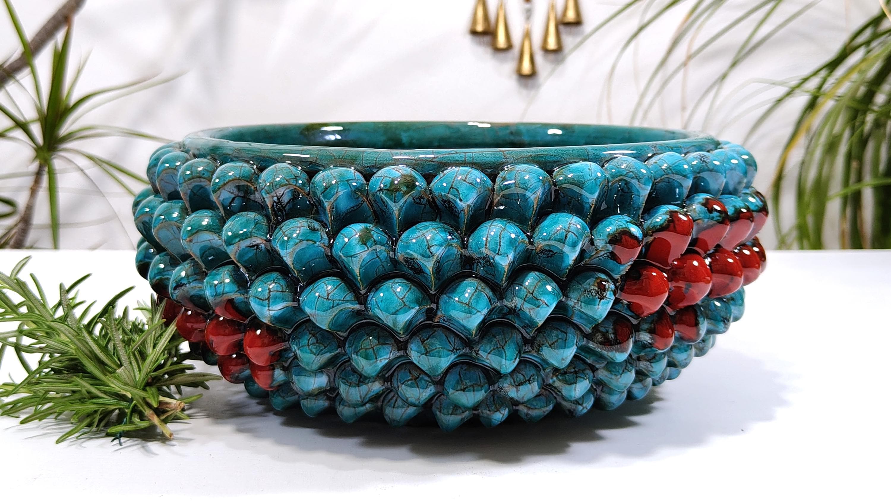 This centerpiece is made with a very particular technique called "third fire"