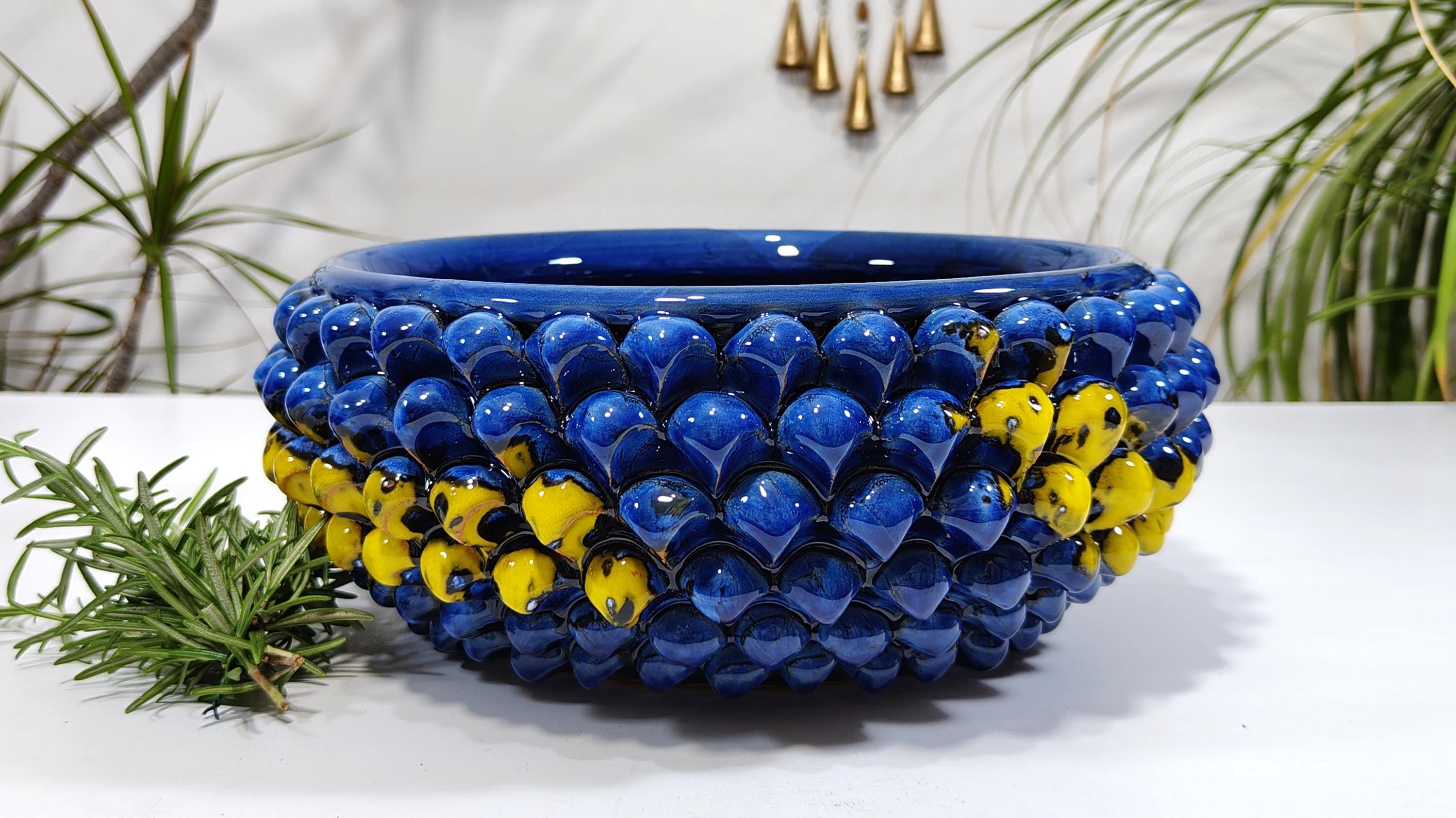 Half Pine Cone Centerpiece Sicilian Ceramic Caltagirone Artisan