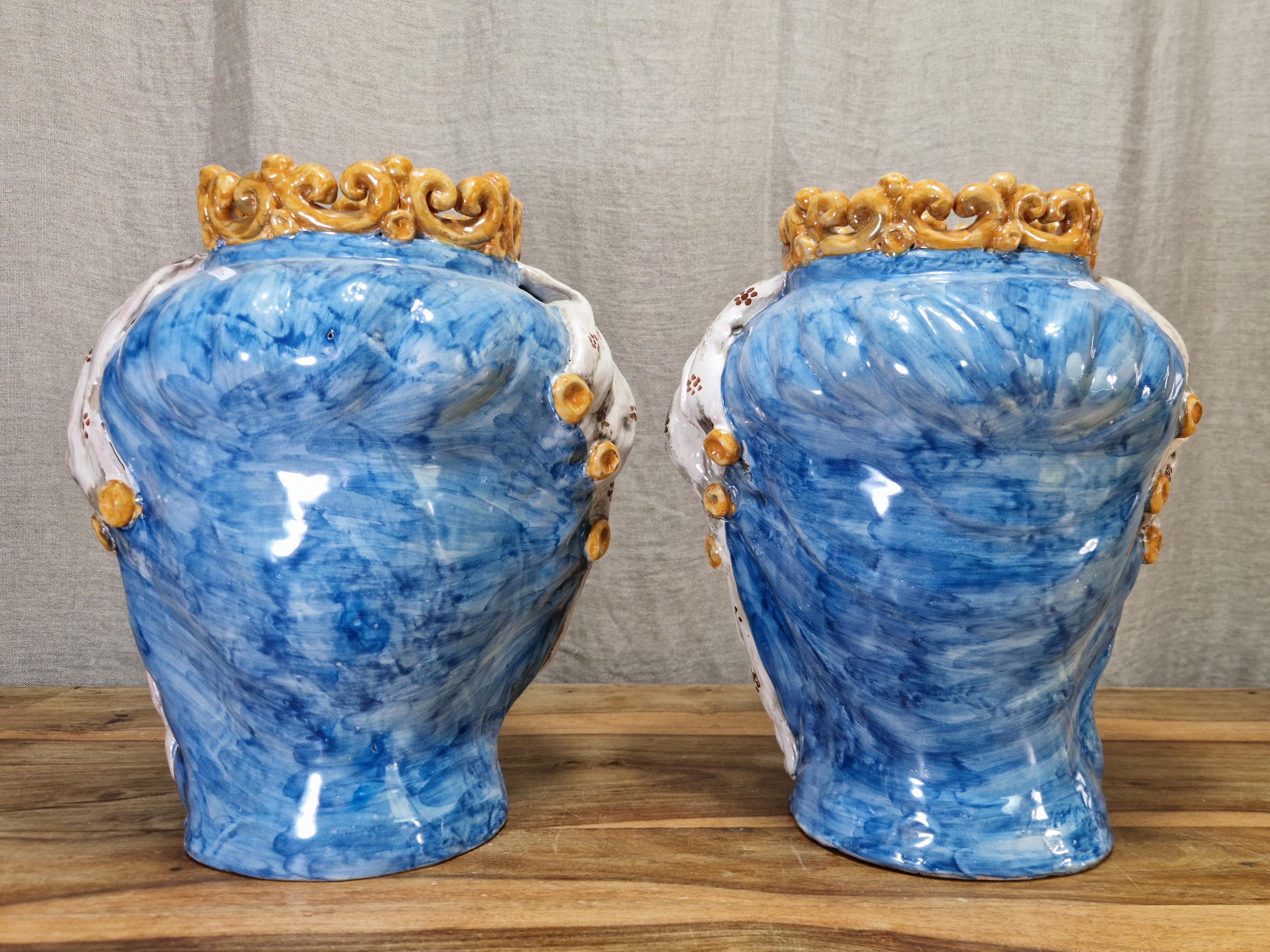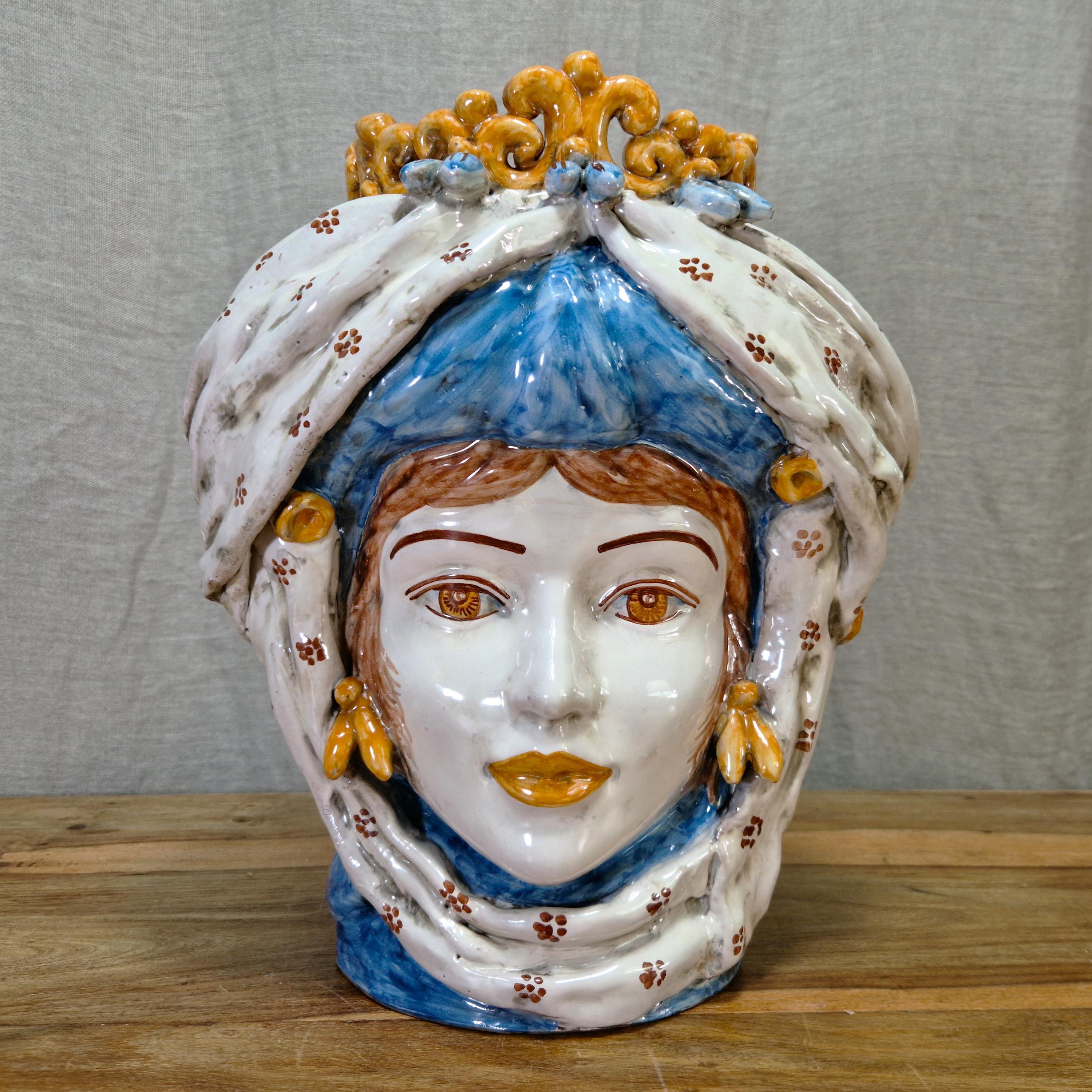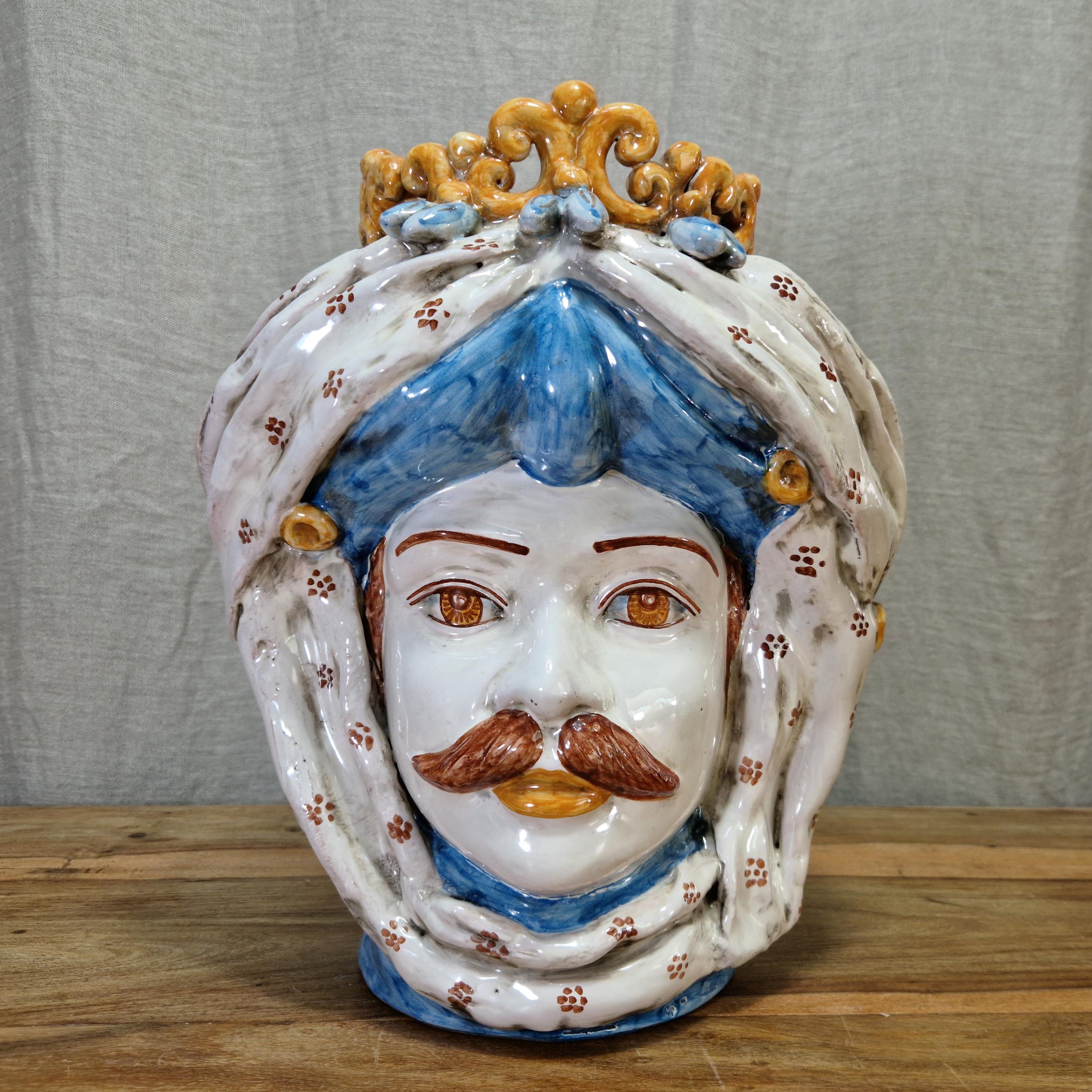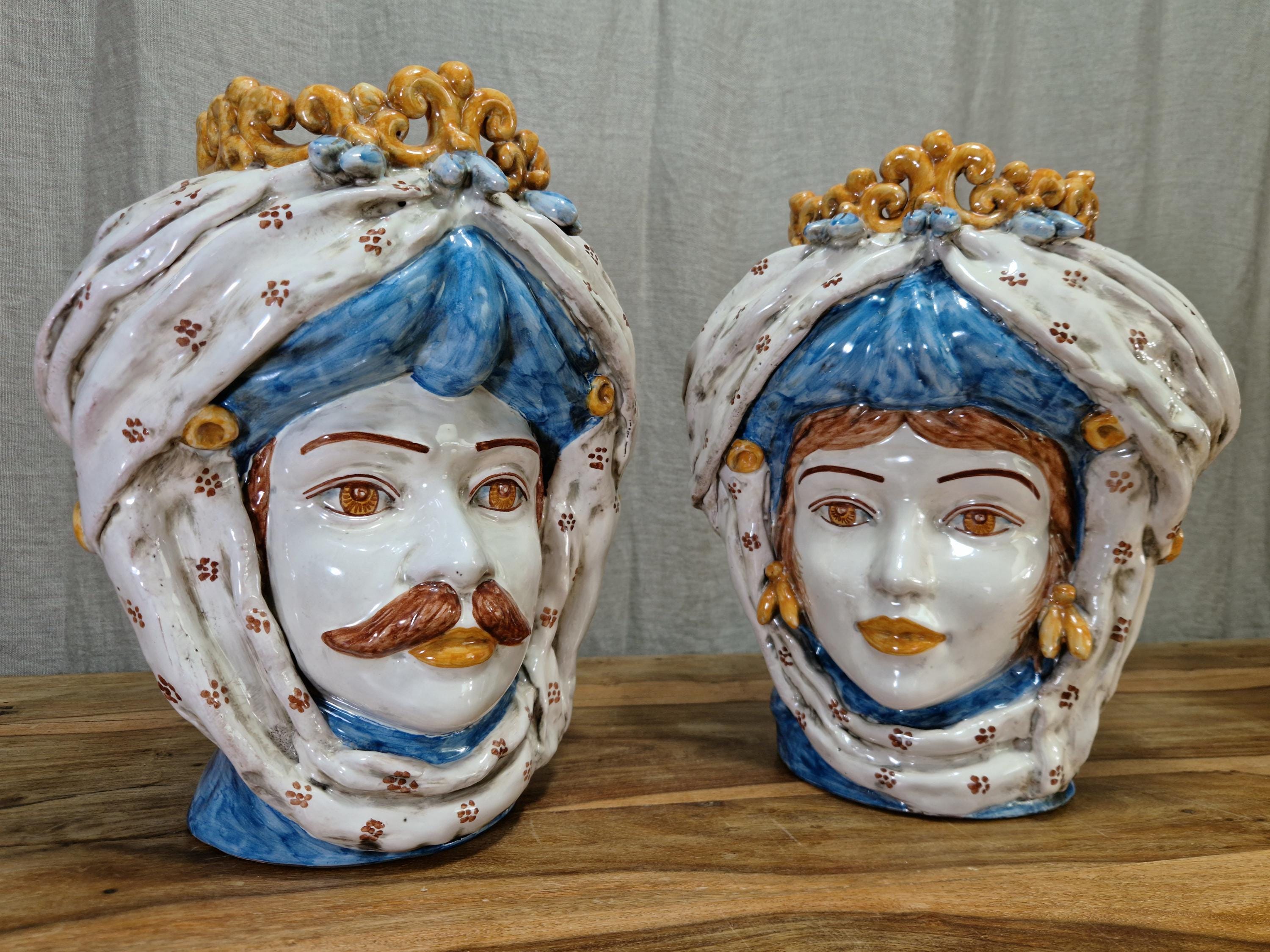 Sicilian Moorish heads in Caltagirone ceramic, entirely hand-crafted in shape and decoration, H34 W30