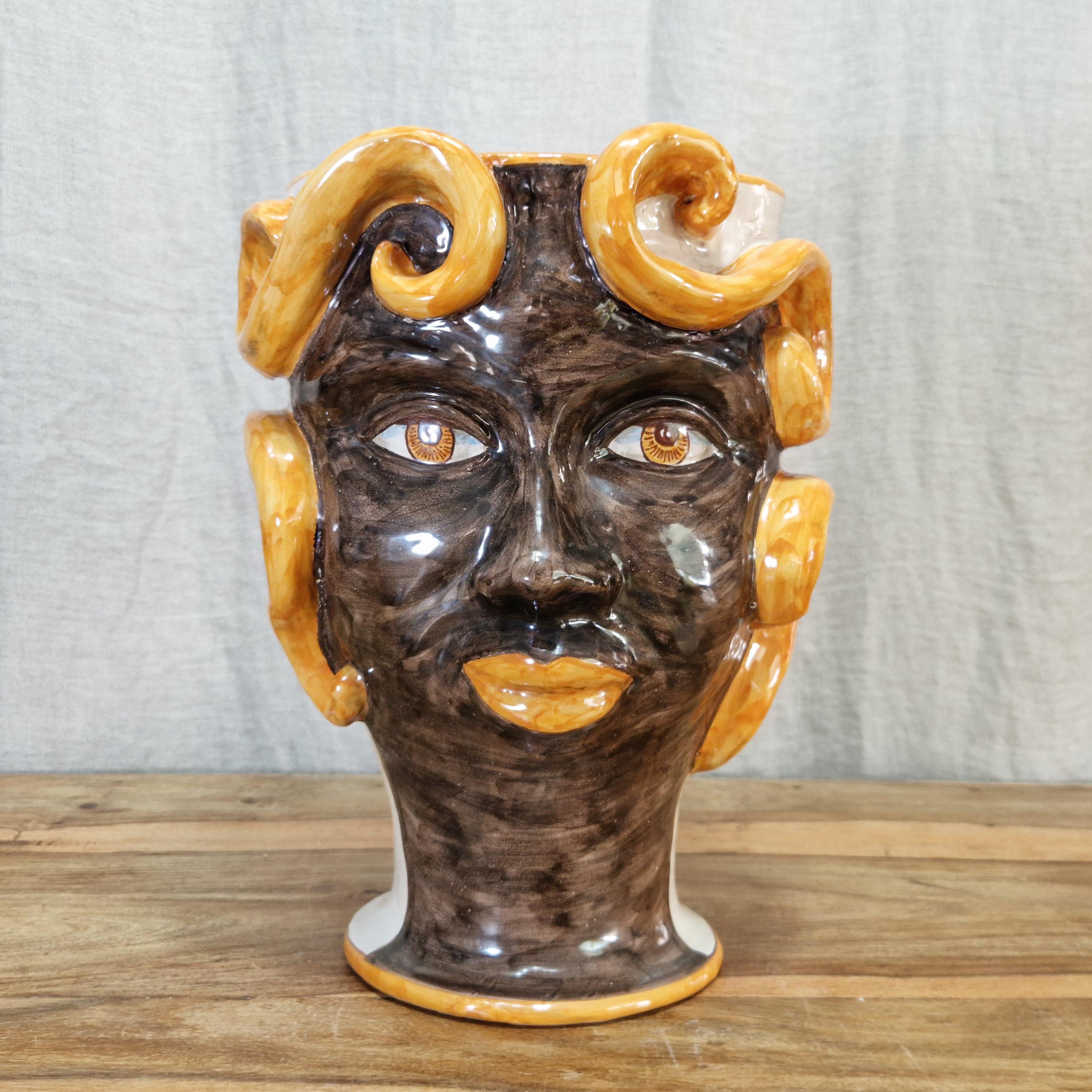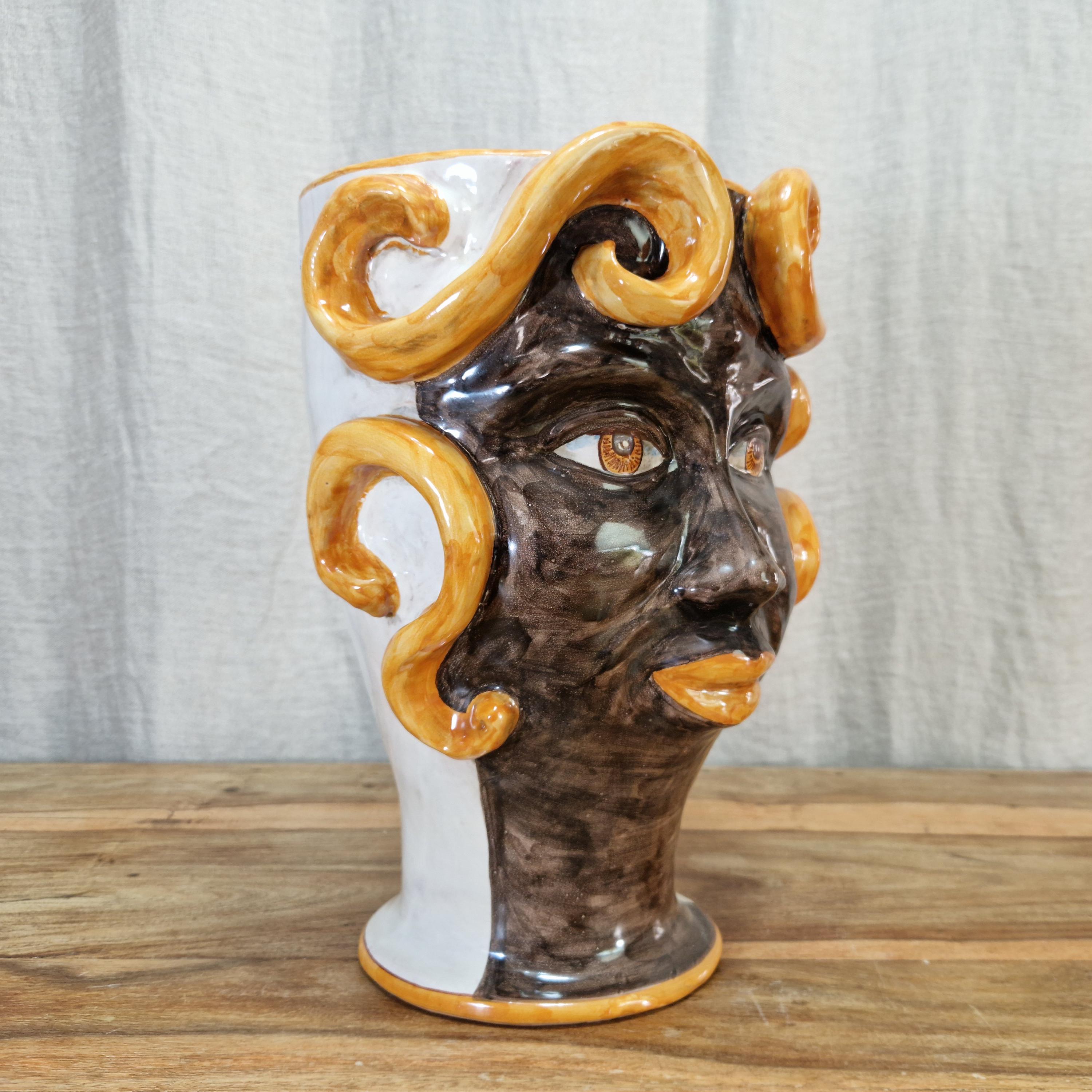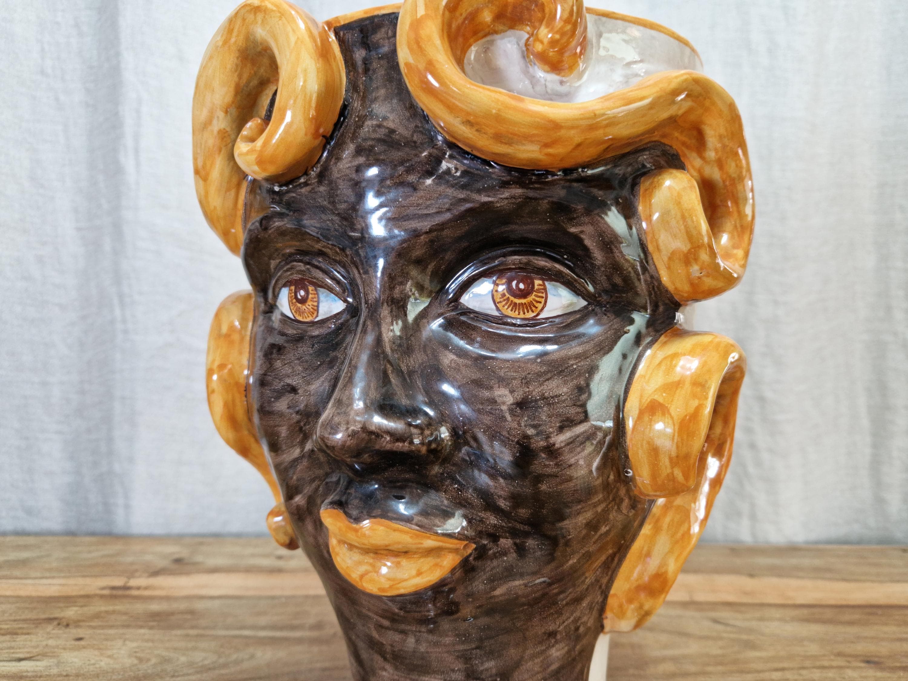 Sicilian Moorish heads in Caltagirone ceramic, entirely hand-crafted in shape and decoration, H31 L24