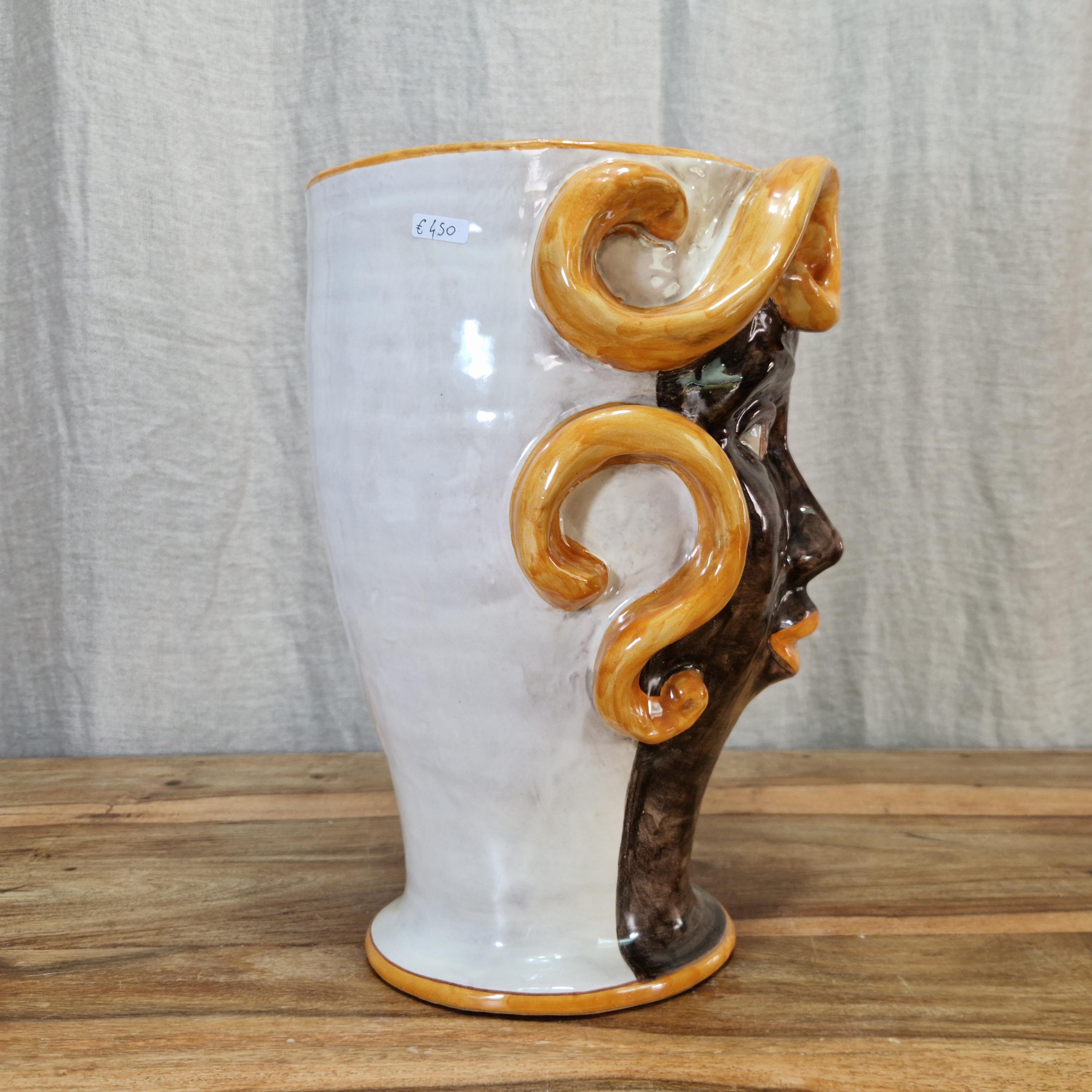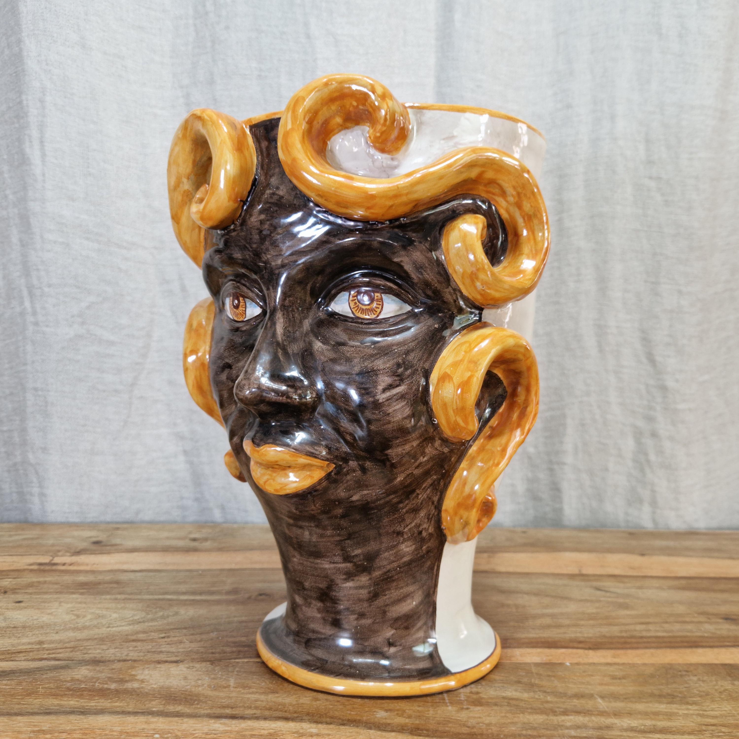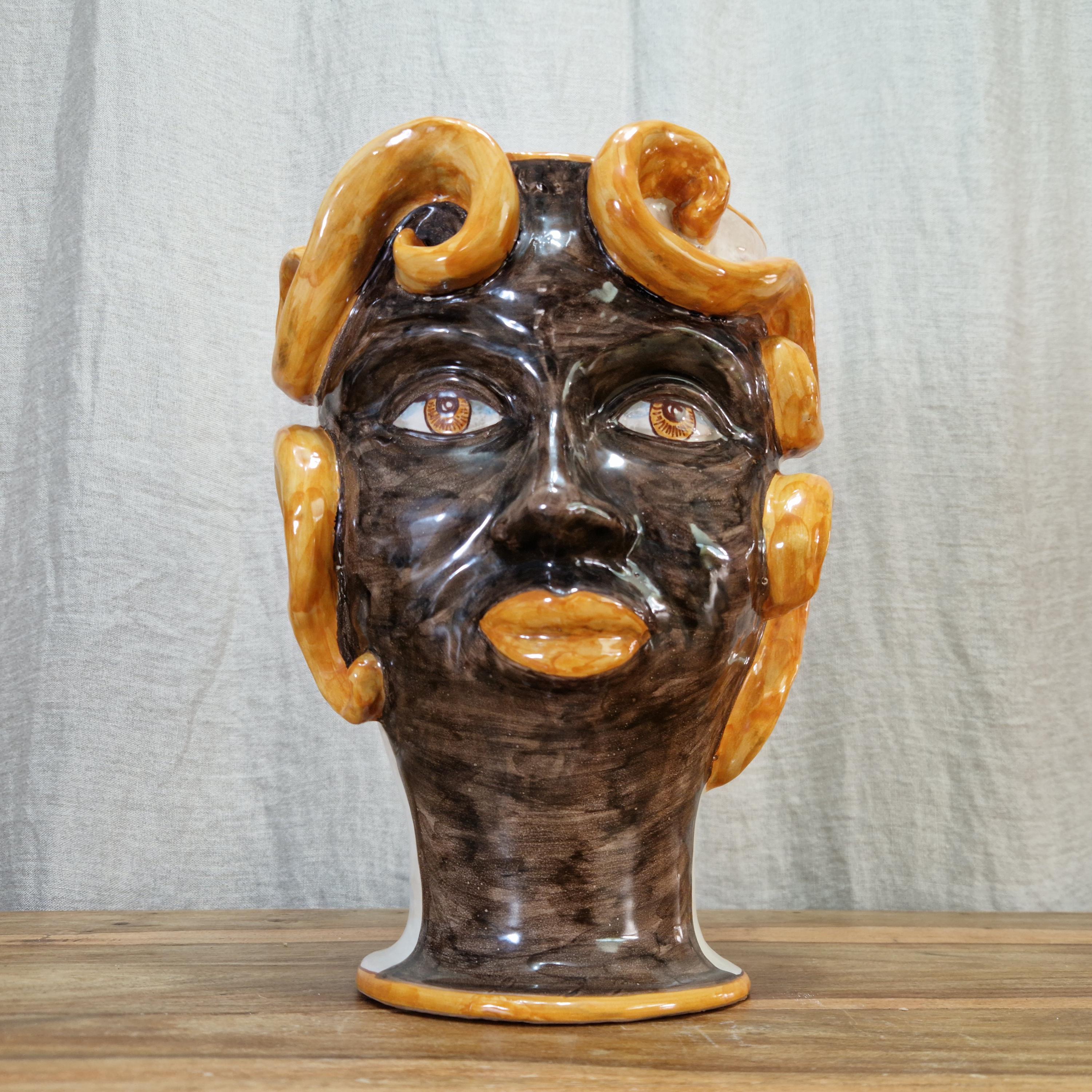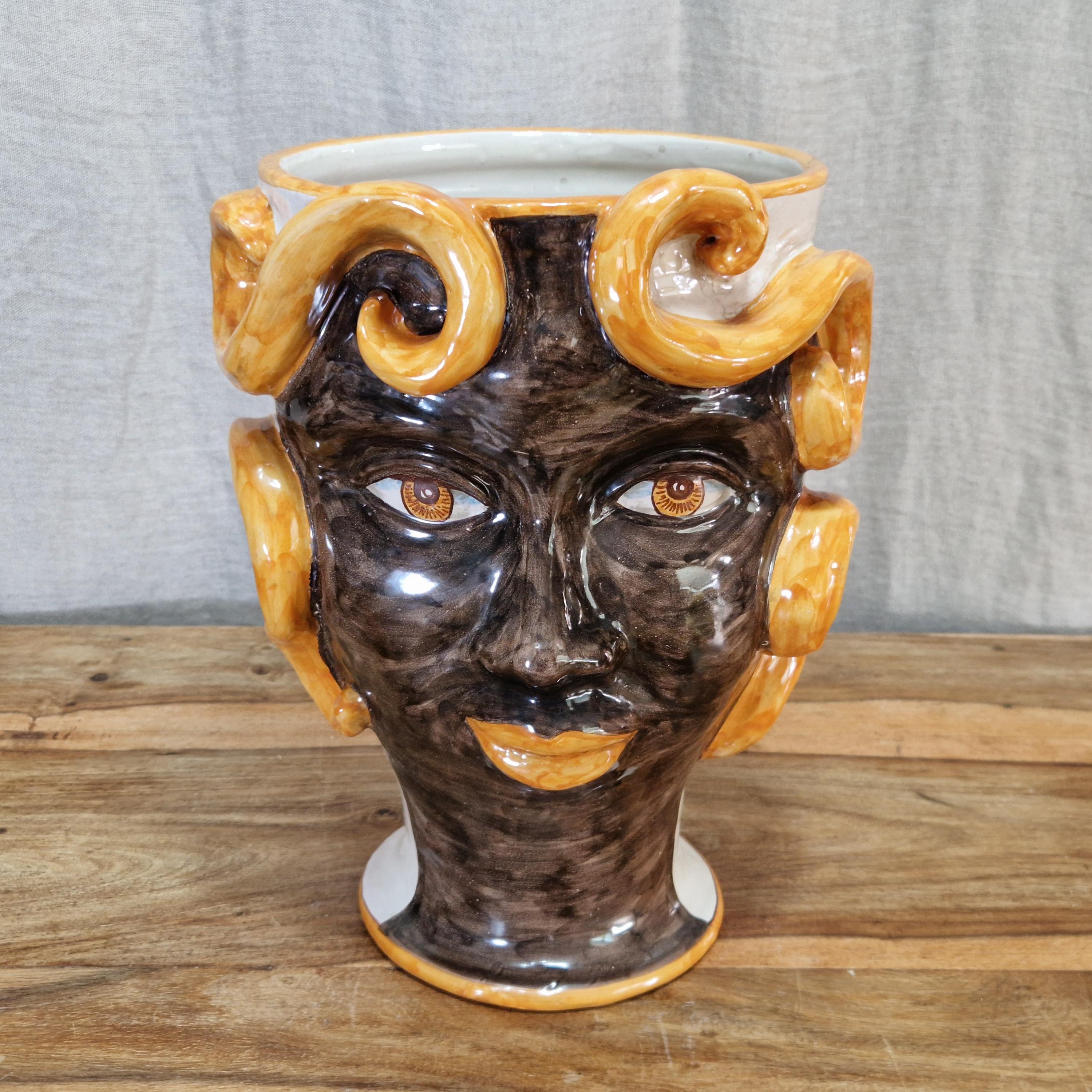 Sicilian Moorish heads in Caltagirone ceramic, entirely hand-crafted in shape and decoration, H31 L24