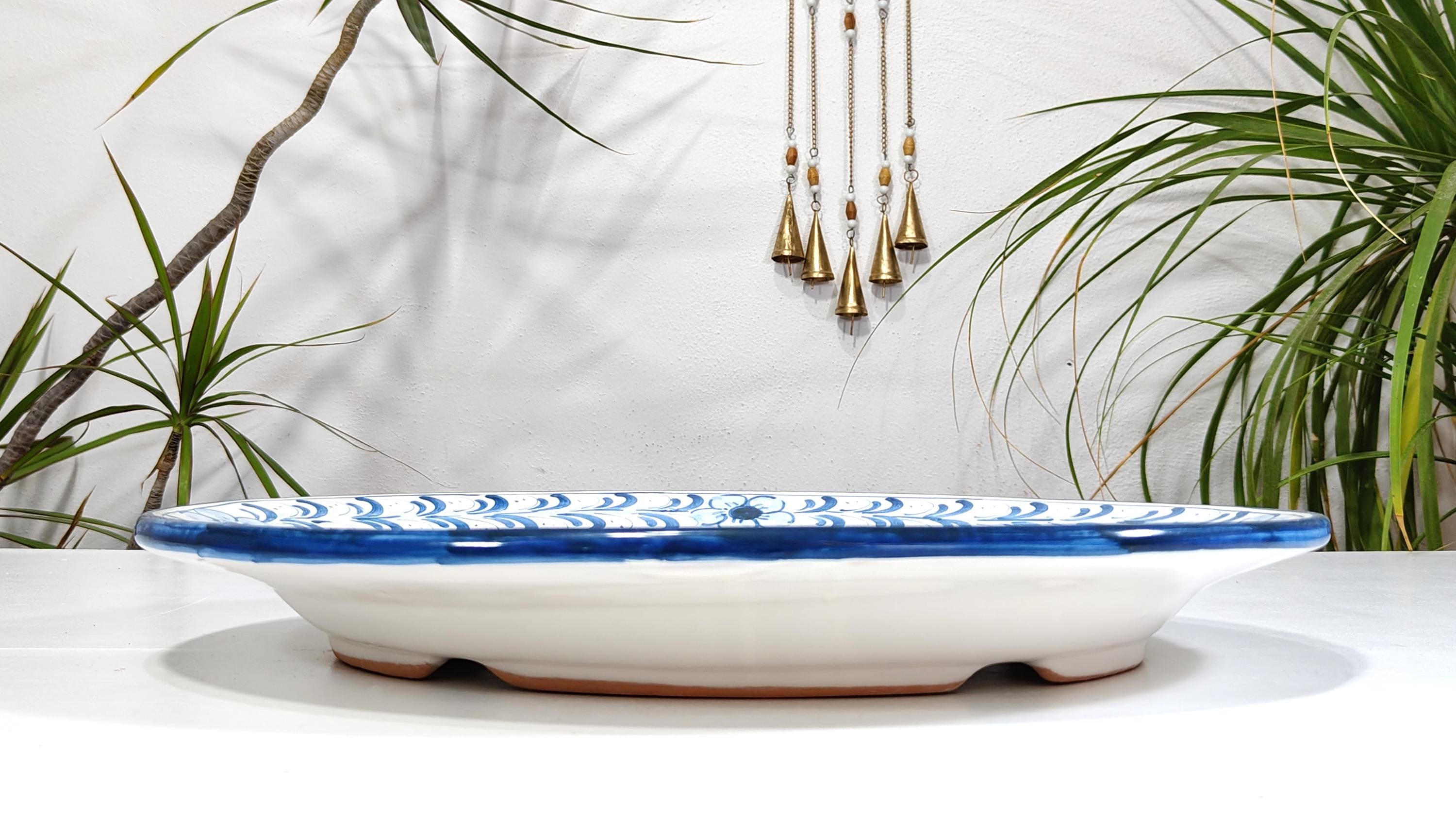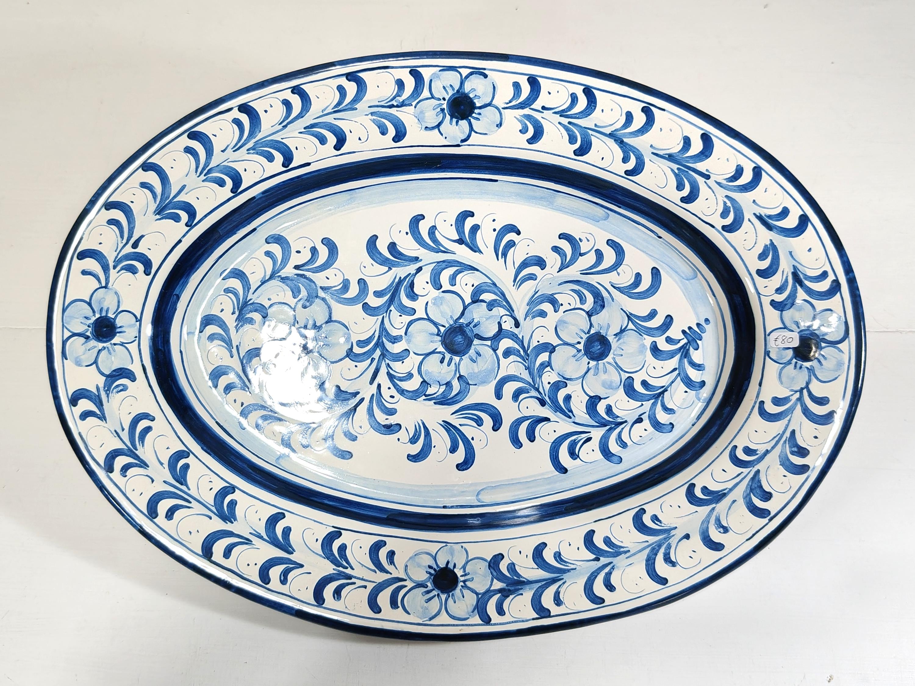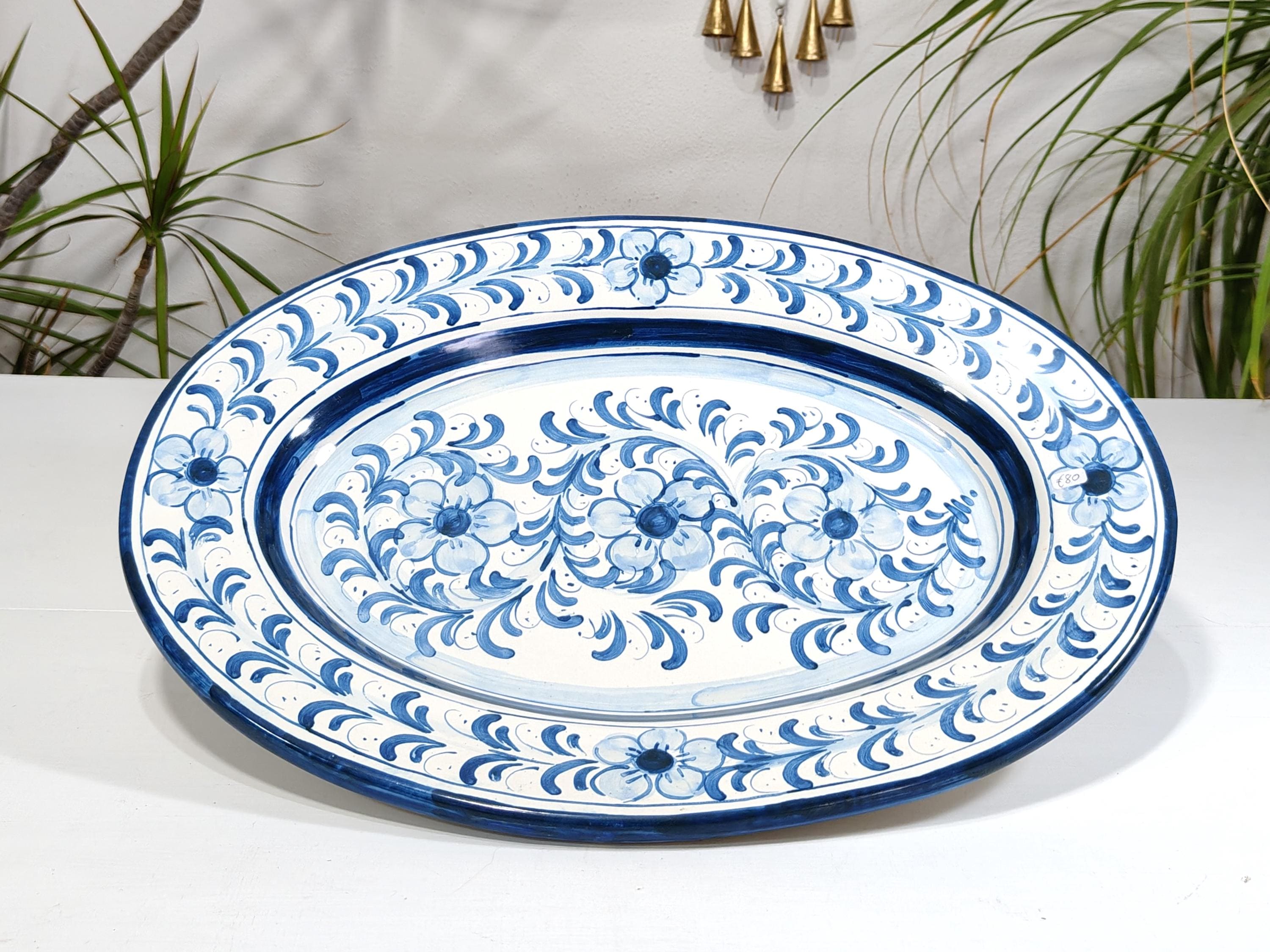 41 cm oval plate from Sicilian Caltagirone with classic Floral Blue decoration, pizza plate, underplate, serving plate.