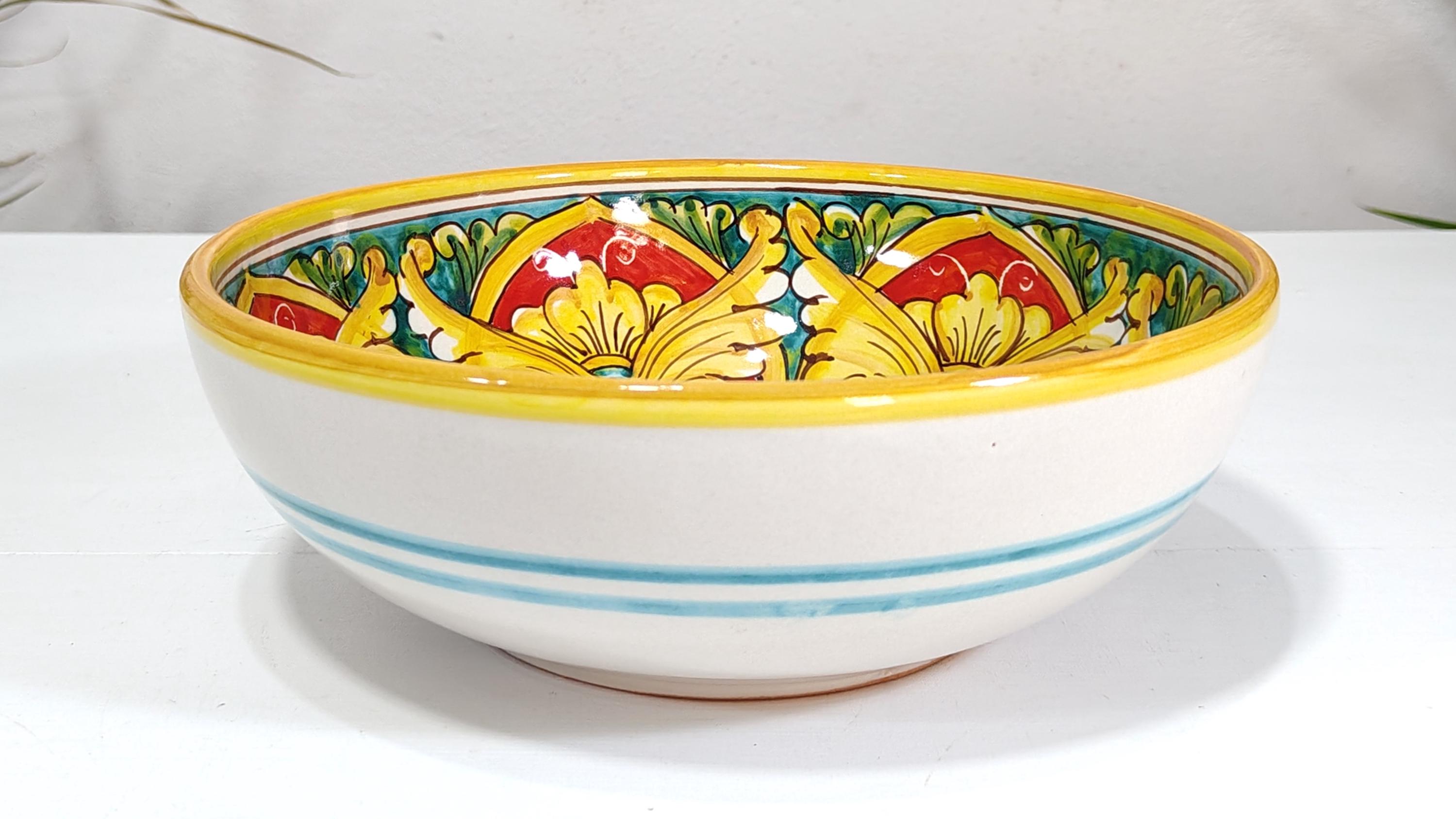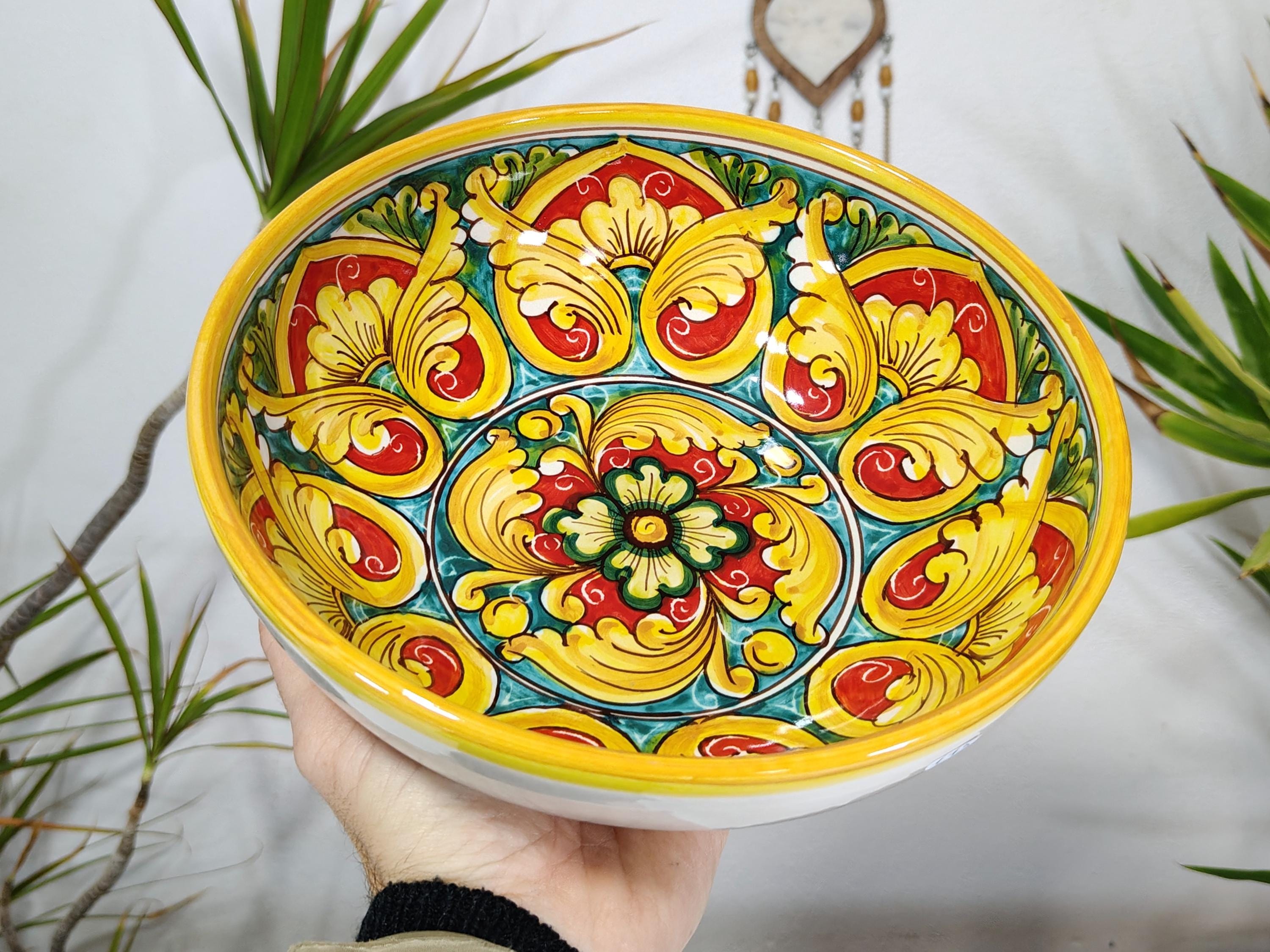 delicious bowls finely decorated with top quality enamels and firings of medium size, ideal as ornaments, to be used also as empty pockets, serving tray, centerpiece, salad bowl, pastiera, fruit bowl and everything to which your imagination can adapt it
