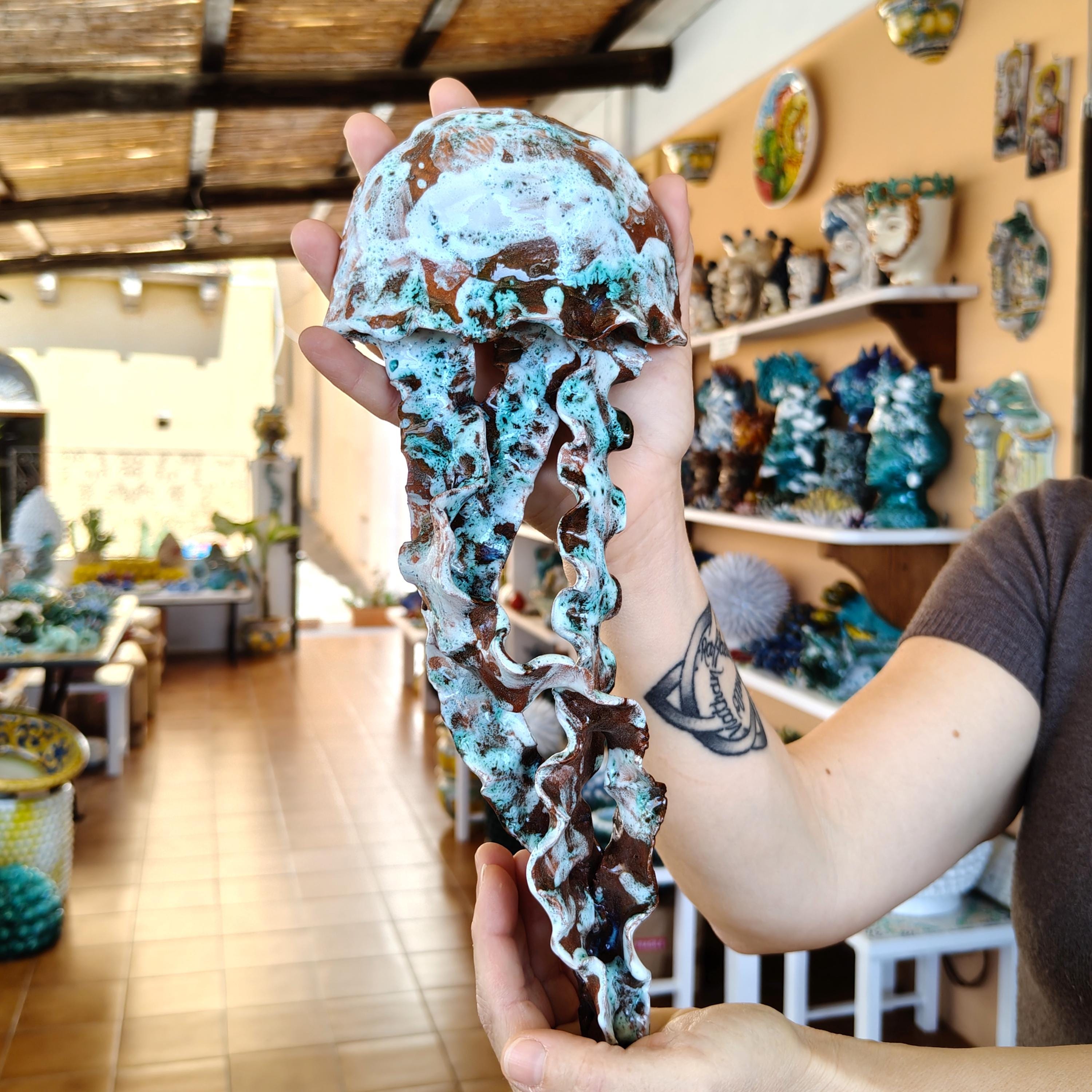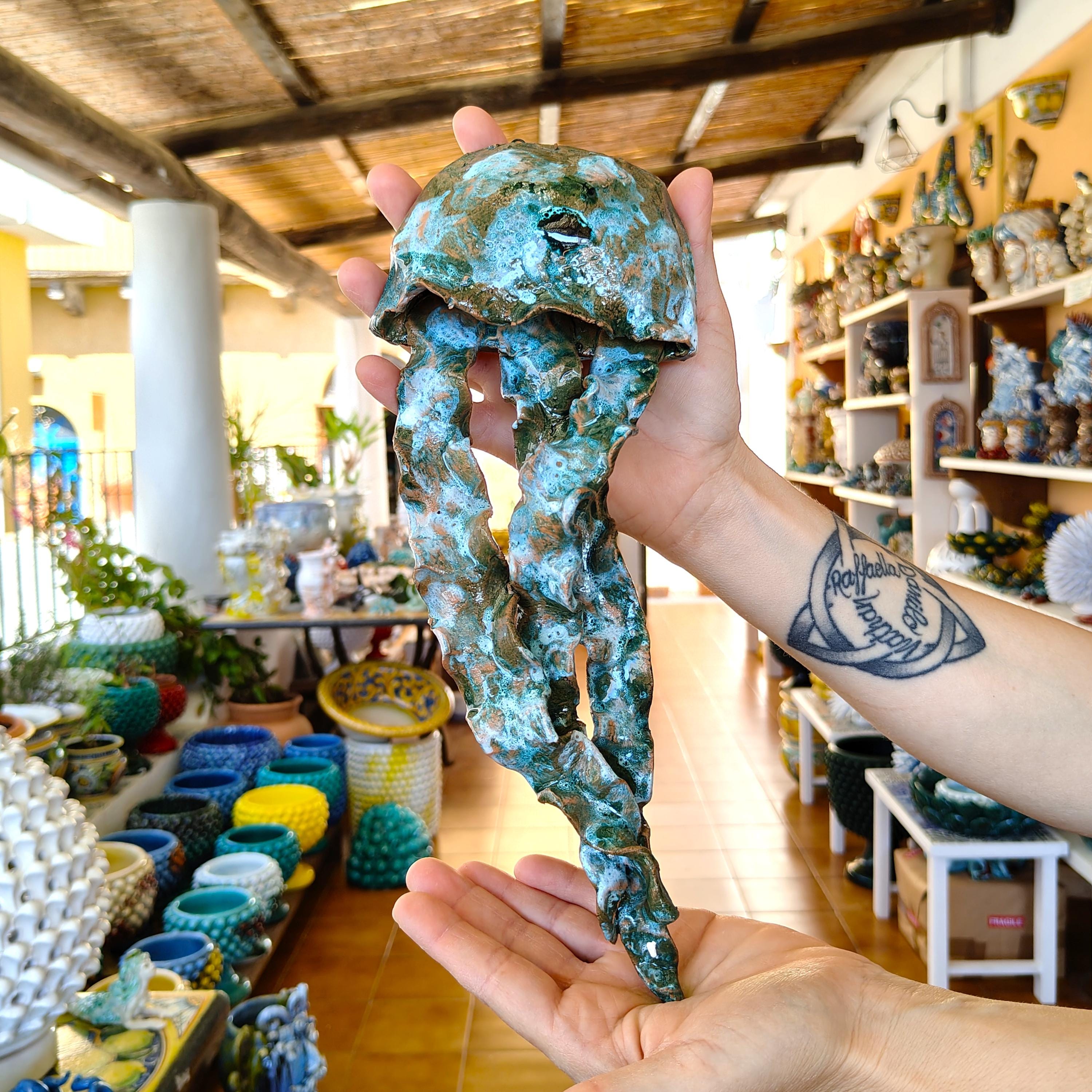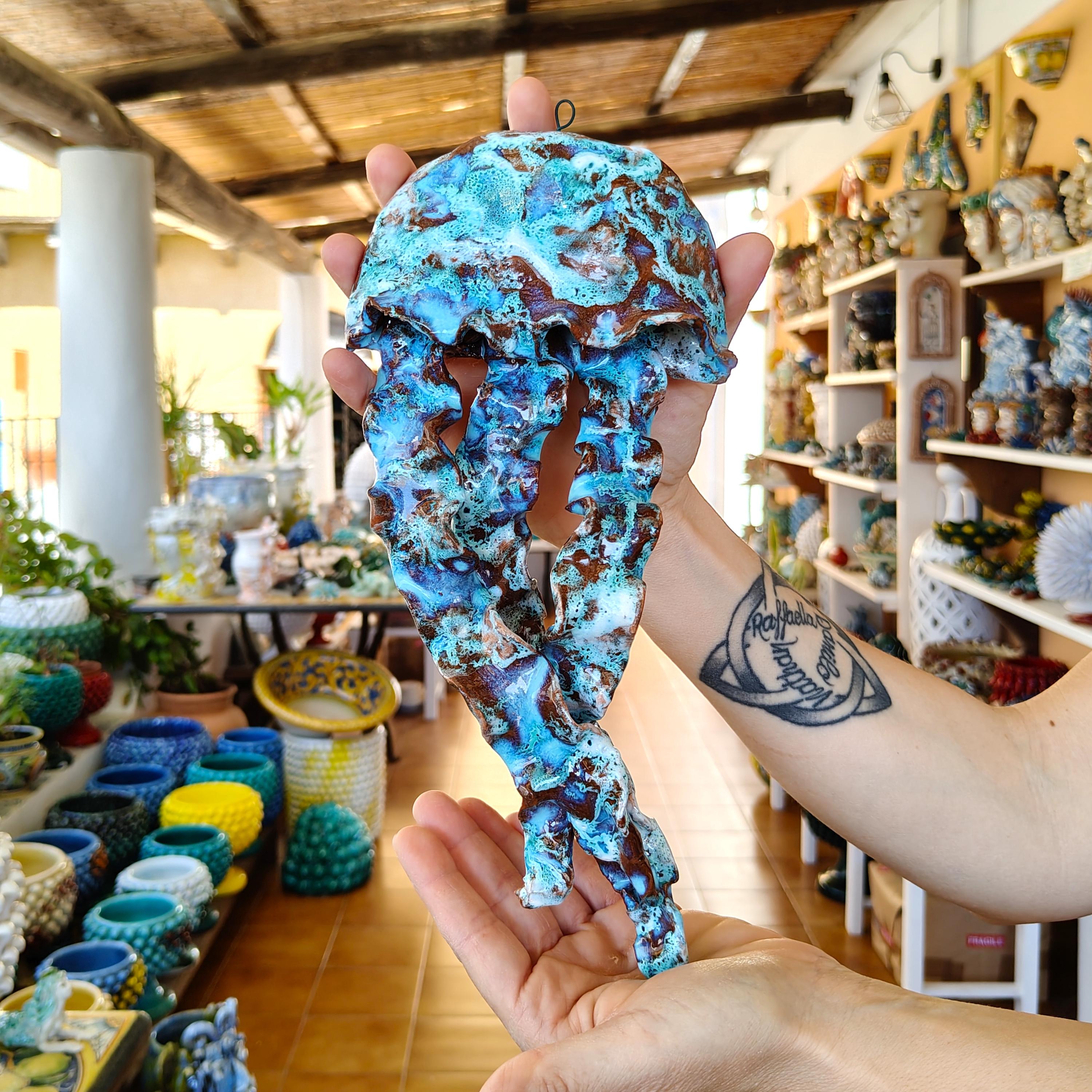 Sicilian ceramic jellyfish handmade in Caltagirone,